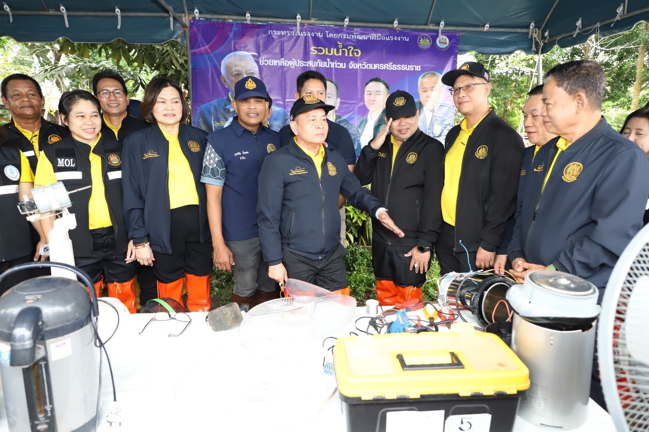 นายอารี กล่าวว่า นายพิพัฒน์ รัชกิจประการ รัฐมนตรีว่าการกระทรวงแรงงาน ได้มอบหมายให้ ผมลงพื้นที่ มอบถุงยังชีพช่วยเหลือแรงงานนอกระบบ ผู้ประกอบอาชีพอิสระ และประชาชนที่ได้รับผลกระทบจากอุทกภัยในพื้นที่จังหวัดนครศรีธรรมราช โดยนายบุญสงค์ ทัพชัยยุทธ์ ปลัดกระทรวงแรงงาน มอบหมายให้ นางสาวบุณยวีร์ ไขว้พันธุ์ ผู้ตรวจราชการกระทรวงแรงงาน ผู้บริหารกระทรวงแรงงาน ร่วมลงพื้นที่ โดยมี หัวหน้าส่วนราชการสังกัดกระทรวงแรงงานจังหวัดนครราชศรีธรรมราช องค์กรปกครองส่วนท้องถิ่น ผู้นำชุมชน และประชาชนในพื้นที่ร่วมให้การต้อนรับ ซึ่ง ผู้บริหารกระทรวงแรงงานจะกระจายลงช่วยเหลือพี่น้องผู้ประสบอุทกภัยในพื้นที่จังหวัดภาคใต้ ตั้งแต่นครศรีธรรมราช ตรัง สงขลา พัทลุง สตูล ปัตตานี ยะลา และนราธิวาส โดยได้ปักหลักอยู่ในพื้นที่ตั้งแต่วันที่ 4 – 7 ธันวาคมนี้ ในส่วนของมาตรการการช่วยเหลือผู้ประสบอุทกภัยในพื้นที่จังหวัดทางภาคใต้ของกระทรวงแรงงานนั้น ประกอบด้วย การลดอัตราเงินสมทบและขยายระยะเวลาการส่งเงินสมทบแก่ลูกจ้างผู้ประกันตนลูกจ้างผู้ประกันตนที่สถานประกอบการถูกน้ำท่วมทำให้ต้องหยุดงานไม่สามารถไปทำงานได้สามารถยื่นขอรับสิทธิประโยชน์กรณีว่างงานจากเหตุสุดวิสัย การขึ้นทะเบียนประกันการว่างงาน ผ่านระบบออนไลน์ได้ที่เว็บไซต์กรมการจัดหางาน กรณีที่อยู่อาศัยของลูกจ้างได้รับผลกระทบเป็นเหตุให้ไปทำงานไม่ได้หรือเข้าทำงานสาย ขอความร่วมมือนายจ้างให้ลูกจ้างหยุดงานโดยไม่ถือเป็นวันลา รวมถึงฟื้นฟูในพื้นที่หลังน้ำลด ซึ่งขณะนี้บางพื้นที่เริ่มคลี่คลายลงแล้ว กระทรวงแรงงานก็จะจัดทีมช่างจากกรมพัฒนาฝีมือแรงงงาน เข้าไปซ่อมแซมอุปกรณ์ไฟฟ้า อุปกรณ์ทำงาน บ้านเรือน รถจักรยานยนต์ เครื่องยนต์เล็กทางการเกษตร รวมถึงขอรับการสนับสนุนงบประมาณเพื่อนำโครงการแก้ไขปัญหาความเดือดร้อนด้านอาชีพมาช่วยเหลือพี่น้องประชาชนโดยการจ้างงานภายหลังน้ำลด เพื่อให้สามารถประกอบอาชีพได้ตามปกติโดยเร็วที่สุด