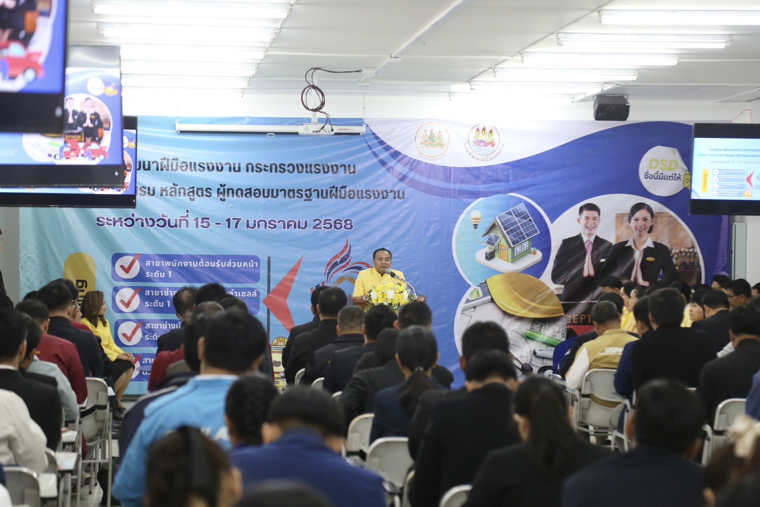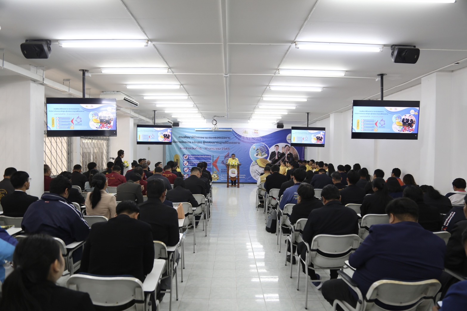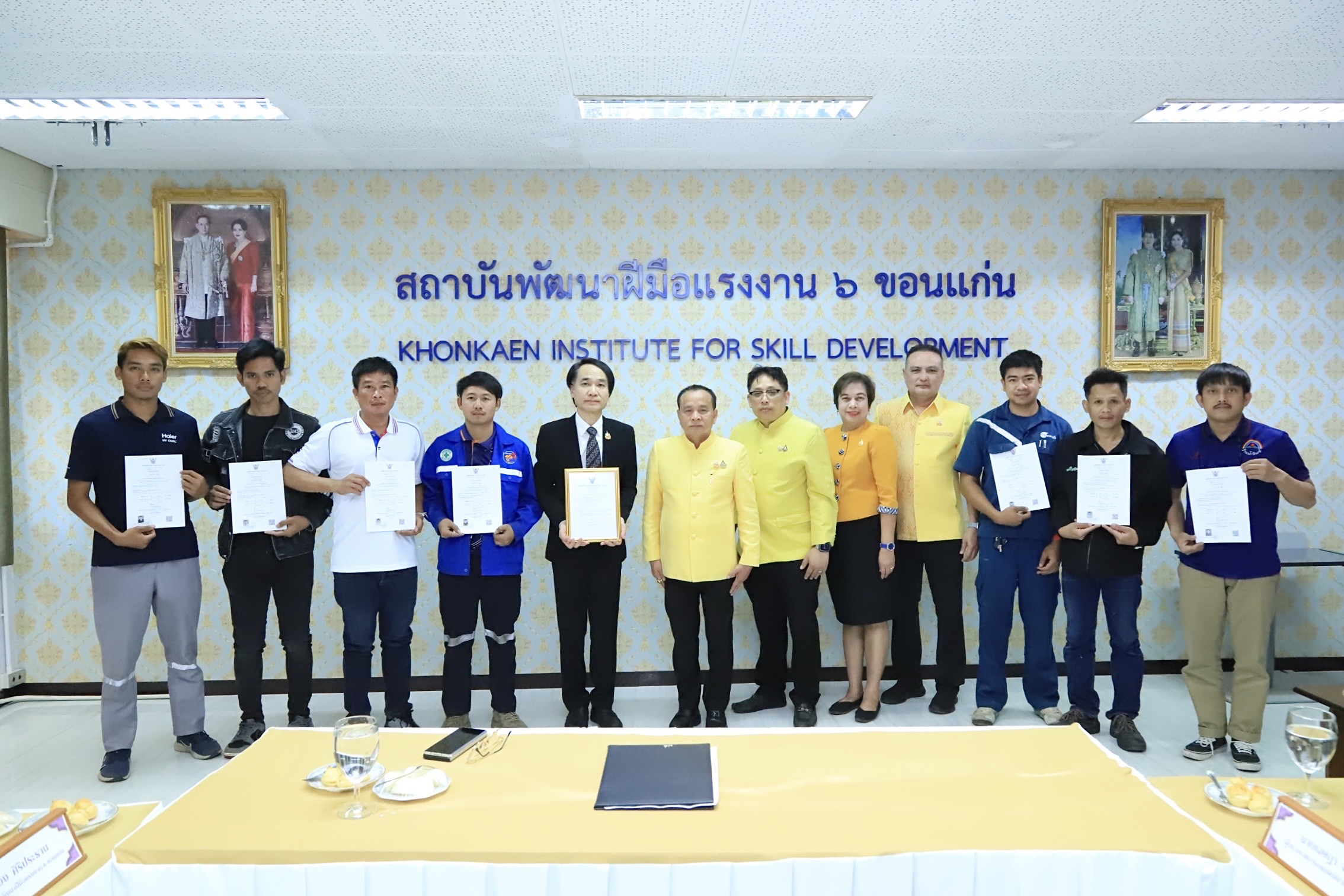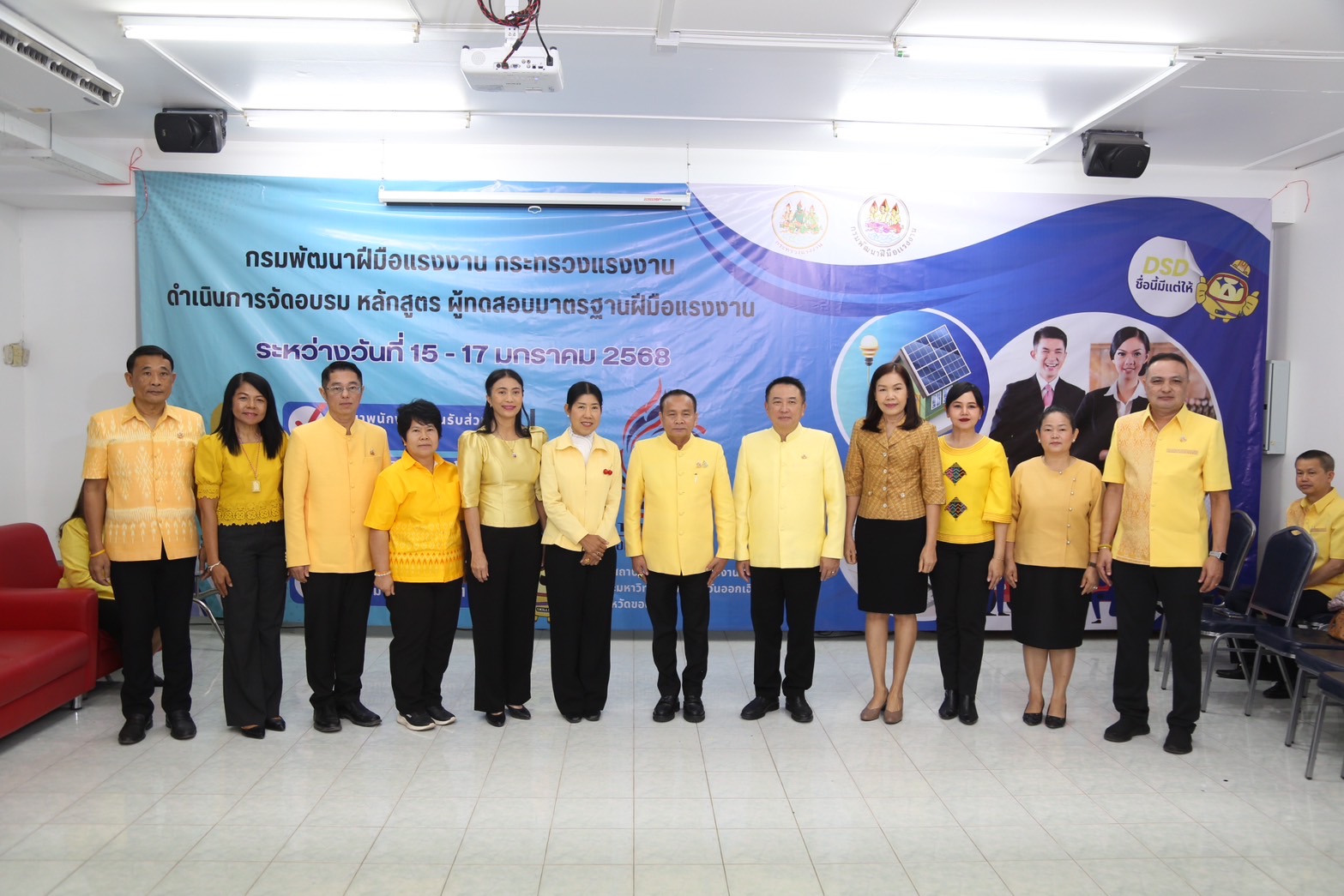 ด้านนายเดชา พฤกษ์พัฒนรักษ์ อธิบดีกรมพัฒนาฝีมือแรงงาน กล่าวเสริมว่า การฝึกอบรมในครั้งนี้เป็นการฝึกอบรมการเป็นผู้ทดสอบมาตรฐานฝีมือแรงงาน ระยะการฝึก 18 ชั่วโมง จำนวน 4 หลักสูตร ประกอบด้วย 1) ช่างบำรุงรักษารถยนต์ ระดับ 1 2) ช่างติดตั้งระบบโซลาร์เซลล์ ระดับ 1 3) ช่างเขียนแบบก่อสร้างด้วยคอมพิวเตอร์ ระดับ 1 และ 4) พนักงานต้อนรับส่วนหน้า ระดับ 1 อบรมระหว่างวันที่ 15 – 17 มกราคม 2568 ซึ่งอบรมที่สถาบันพัฒนาฝีมือแรงงาน 6 ขอนแก่น และมหาวิทยาลัยภาคตะวันออกเฉียงเหนือ มีผู้อบรมทั้งหมดจำนวน 120 คน ผู้เข้ารับการฝึกอบรมมีความรู้ ความเข้าใจ ในหลักเกณฑ์ วิธีการทดสอบ การจัดเตรียมสถานที่ วัสดุอุปกรณ์ รวมทั้งการควบคุม และตรวจผลการทดสอบ ซึ่งทำให้ผู้ผ่านการฝึกอบรม สามารถทำหน้าที่เป็นผู้ทดสอบมาตรฐานฝีมือแรงงานที่มีประสิทธิภาพ และมีความเที่ยงตรง ทั้งนี้ ผู้ผ่านการฝึกอบรมจะได้รับการประกาศรายชื่อเป็นผู้มีคุณสมบัติเหมาะสมที่จะทำหน้าที่เป็นผู้ทดสอบมาตรฐานฝีมือแรงงาน และได้รับวุฒิบัตรหลักสูตรผู้ทดสอบมาตรฐานฝีมือแรงงาน จากกรมพัฒนาฝีมือแรงงานเพื่อเป็นการการันตีให้แก่ผู้ทำหน้าที่ทดสอบสร้างความเชื่อมั่นและเป็นมาตรฐานเดียวกันในการทำงาน