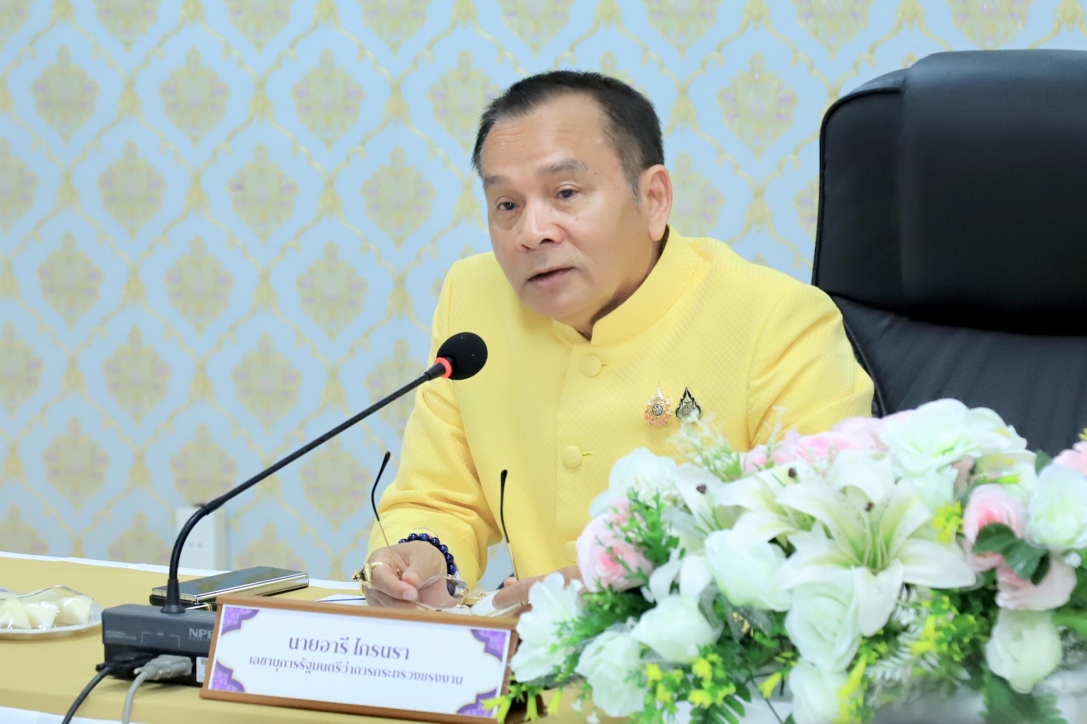 นายอารี ไกรนรา เลขานุการรัฐมนตรีว่าการกระทรวงแรงงาน เปิดเผยว่า กระทรวงแรงงาน มีนโยบายการพัฒนาประเทศด้วยการขับเคลื่อนที่มุ่งเน้นการใช้ความคิดสร้างสรรค์ เทคโนโลยีและนวัตกรรมต่าง ๆ กระทรวงแรงงานโดยกรมพัฒนาฝีมือแรงงานได้จัดทำมาตรฐานฝีมือแรงงานแห่งชาติในสาขาต่าง ๆ เพื่อให้ผู้ที่สนใจประกอบอาชีพนี้ มีมาตรฐานสามารถนำไปใช้ในการรับรองว่ามีฝีมือ ความรู้ ความสามารถ และทัศนคติในการประกอบอาชีพที่ต้องใช้ทักษะ ความรู้ ความชำนาญเฉพาะตัวได้ ซึ่งภารกิจหนึ่งที่สำคัญของกรมพัฒนาฝีมือแรงงาน คือการฝึกอบรมผู้ทดสอบมาตรฐานฝีมือแรงงาน โดยผู้ทดสอบหรือกรรมการที่ประเมินให้คะแนน ถือเป็นบุคคลที่สำคัญในกระบวนการทดสอบมาตรฐานฝีมือแรงงานแห่งชาติ การฝึกอบรมในครั้งนี้จะพัฒนาผู้ทำหน้าที่ผู้ทดสอบ ให้มีความรู้ ความสามารถ และความเชี่ยวชาญในขั้นตอนการจัดเตรียมสถานที่ วัสดุ อุปกรณ์ เครื่องมือ สำหรับการทดสอบมาตรฐานฝีมือแรงงาน กระบวนการควบคุมการทดสอบ และวิธีการตรวจผล เนื่องจากมาตรฐานฝีมือแรงงานแห่งชาติ มีเกณฑ์หรือข้อกำหนดในการประเมินผลตามมาตรฐานที่ต้องพิจารณาหลายขั้นตอน จึงมีความจำเป็นที่จะต้องทำความเข้าใจ ให้เป็นไปในทิศทางเดียวกัน อีกทั้งยังเป็นการสร้างจิตสำนึกให้ผู้ที่ทำหน้าที่เป็นผู้ทดสอบมีจรรยาบรรณในการทำงาน ด้วยความรวดเร็ว โปร่งใส และเป็นธรรม ผมเชื่อมั่นว่าทุกท่านจะเป็นผู้ทดสอบมาตรฐานฝีมือแรงงานที่มีคุณภาพ ปฏิบัติหน้าที่อย่างถูกต้อง โปร่งใส ตามหลักเกณฑ์วิธีการทดสอบมาตรฐานฝีมือแรงงานแห่งชาติ