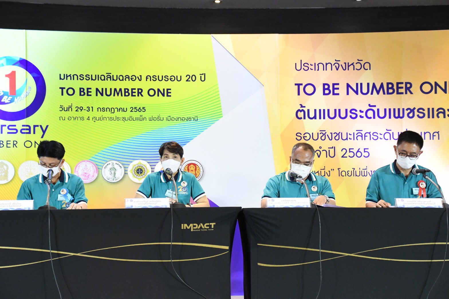 วันเสาร์ที่ 30 กรกฎาคม 2565 เวลา 13.48 น. นายภัครธรณ์ เทียนไชย ผู้ว่าราชการจังหวัดชลบุรี พร้อมด้วย นางสาวกรจิรัฏฐ์ พงจันทร์ศธร แรงงานจังหวัดชลบุรี นายแพทย์อภิรัต กตัญญุตานนท์ นายแพทย์สาธารณสุขจังหวัด และนายไพทูล อยู่เกต รองผู้อำนวยการสำนักงานเขตพื้นที่การศึกษามัธยมศึกษาชลบุรี ระยอง ร่วมนำเสนอผลงานจังหวัด TO BE NUMBER ONE ในการประกวด TO BE NUMBER ONE ประจำปี 2565 ซึ่งจังหวัดชลบุรีเข้าประกวดในระดับเพชรปีที่ 4 ณ อาคารอิมแพ็ค ฟอรั่ม เมืองทองธานี จังหวัดนนทบุรี