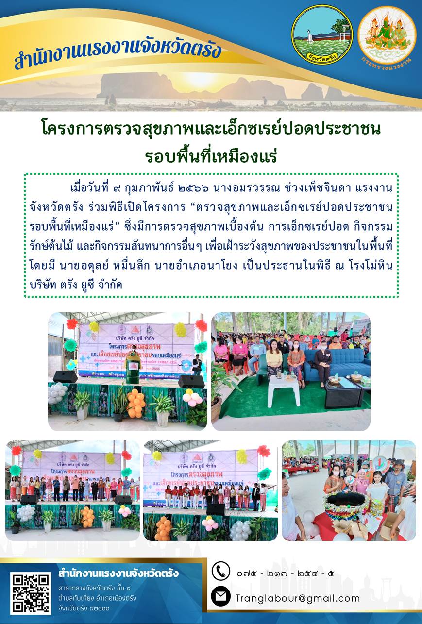สรจ.ตรัง จัดกิจกรรมกระทรวงแรงงานเคลื่อนที่ ร่วมกับโครงการหน่วยบำบัดทุกข์บำรุงสุข สร้างรอยยิ้มให้ประชาชนจังหวัดตรัง