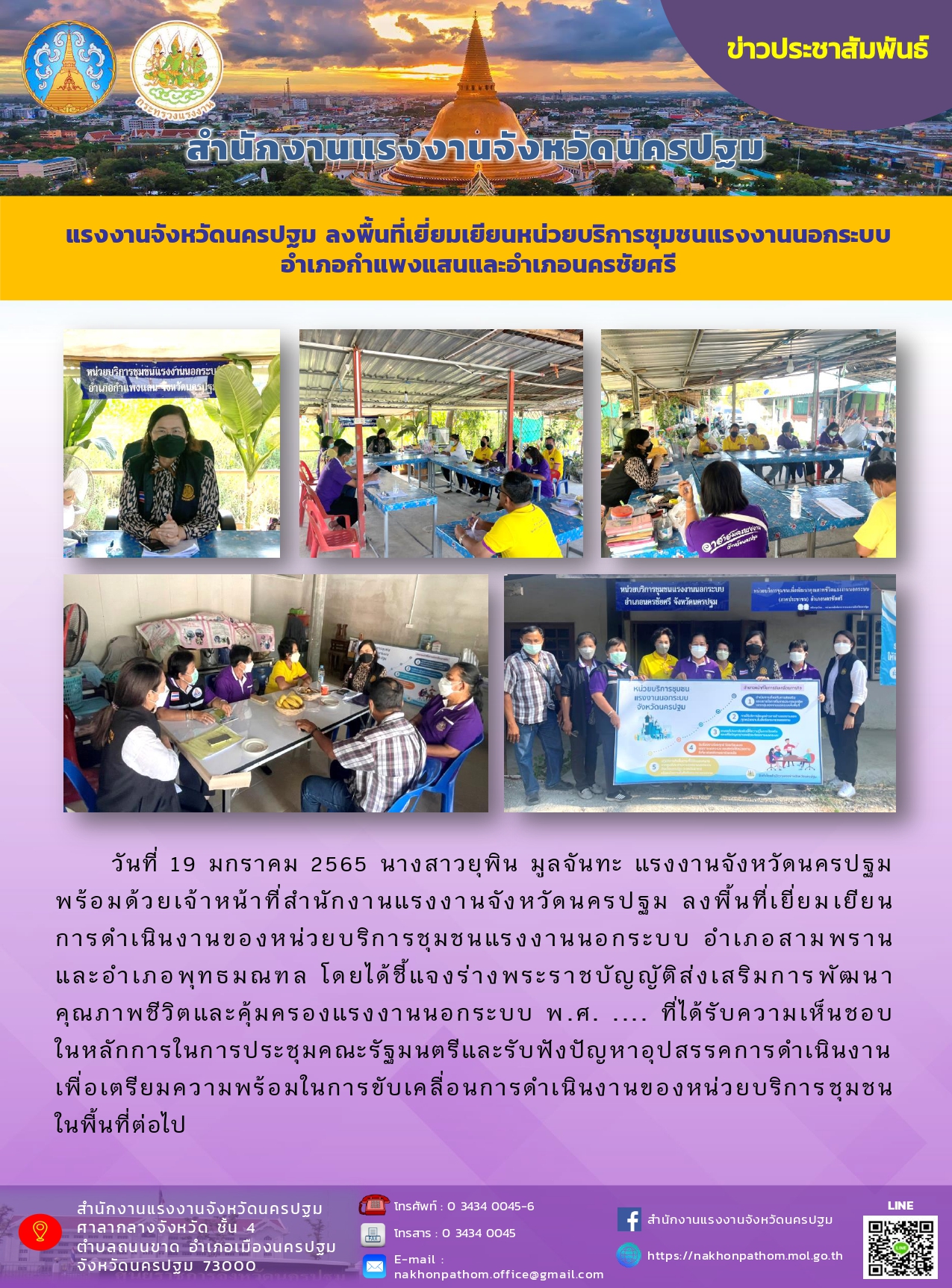 แรงงานจังหวัดนครปฐม ลงพื้นที่เยี่ยมเยียนหน่วยบริการชุมชนแรงงานนอกระบบ อำเภอกำแพงแสนและอำเภอนครชัยศรี