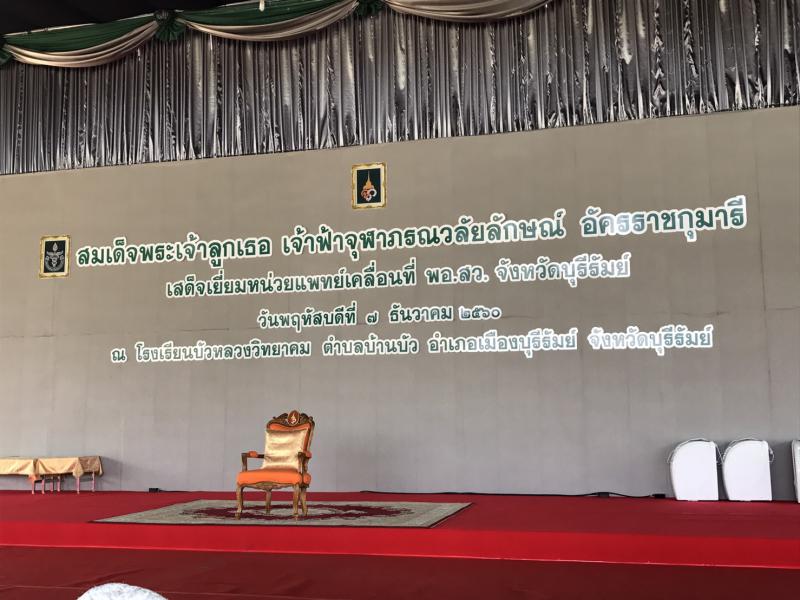 เมื่อวันที่ 7 ธันวาคม 2560 เวลา 17.40 น. นางสาวอรวรรณ ผลิตาพร แรงงานจังหวัดบุรีรัมย์ ร่วมเฝ้ารับเสด็จสมเด็จพระเจ้าลูกเธอเจ้าฟ้าจุฬาภรณวลัยลักษณ์อัครราชกุมารี เสด็จมาทรงปฏิบัติพระกรณียกิจในกิจกรรมของมูลนิธิแพทย์อาสาสมเด็จพระศรีนครินทราบรมราชชนนี (พอ.สว.) ณ โรงเรียนบัวหลวงวิทยาคม ตำบลบ้านบัว อำเภอเมืองบุรีรัมย์ จังหวัดบุรีรัมย์