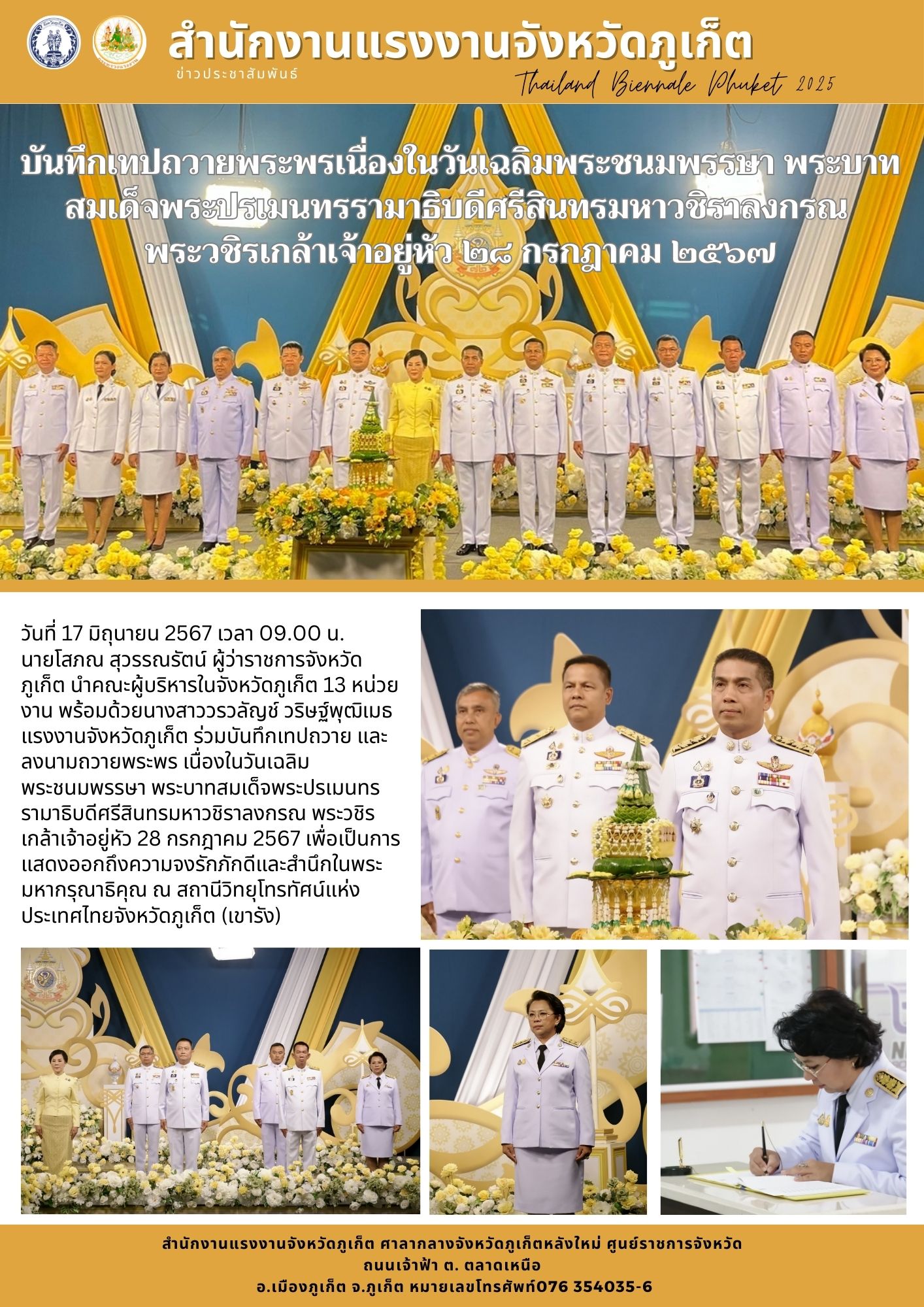 แรงงานจังหวัดภูเก็ตร่วมบันทึกเทปถวายพระพรเนื่องในวันเฉลิมพระชนมพรรษา พระบาสสมเด็จพระปรเมนทรรามาธิบดีศรีสินทรมหาวชิราลงกรณพระวชิรเกล้าเจ้าอยู่หัว 28 กรกฎาคม 2567