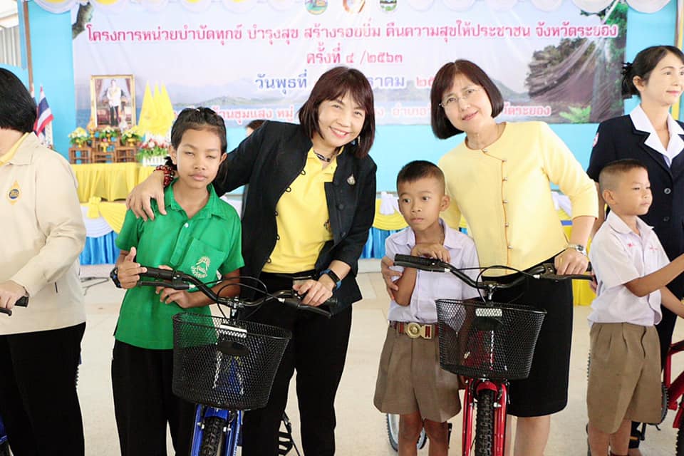 วันพุธที่ 15 มกราคม 2563 เวลา 8.30 น. นายสุรศักดิ์ เจริญศิริโชติ ผู้ว่าราชการจังหวัดระยอง เป็นประธานโครงการ “หน่วยบำบัดทุกข์ บำรุงสุข สร้างรอยยิ้ม คืนความสุขให้ประชาชน” (โครงการจังหวัดเคลื่อนที่) ครั้งที่ 4 ประจำปีงบประมาณ 2563 โดยได้มอบถุงยังชีพ 150 ชุด มอบทุนการศึกษาและรถจักรยานให้แก่นักเรียน ออกตรวจเยี่ยมให้ความช่วยเหลือผู้ยากไร้ในพื้นที่ ตามโครงการ “รักระยอง ช่วยระยอง คืนความสุขให้คนระยอง” และเยี่ยมชมกิจกรรมของส่วนราชการ/หน่วยงานที่เข้าร่วมโครงการ โดย นางสาวกรจิรัฏฐ์ พงจันทร์ศธร แรงงานจังหวัดระยอง พร้อมหัวหน้าส่วนราชการสังกัดกระทรวงแรงงานจังหวัดระยอง ข้าราชการ เจ้าหน้าที่ และอาสาสมัครแรงงานในพื้นที่ ได้นำภารกิจไปเผยแพร่ประชาสัมพันธ์และให้บริการประชาชน ณ โรงเรียนบ้านชุมแสง ต.ชุมแสง อ.วังจันทร์ จ.ระยอง