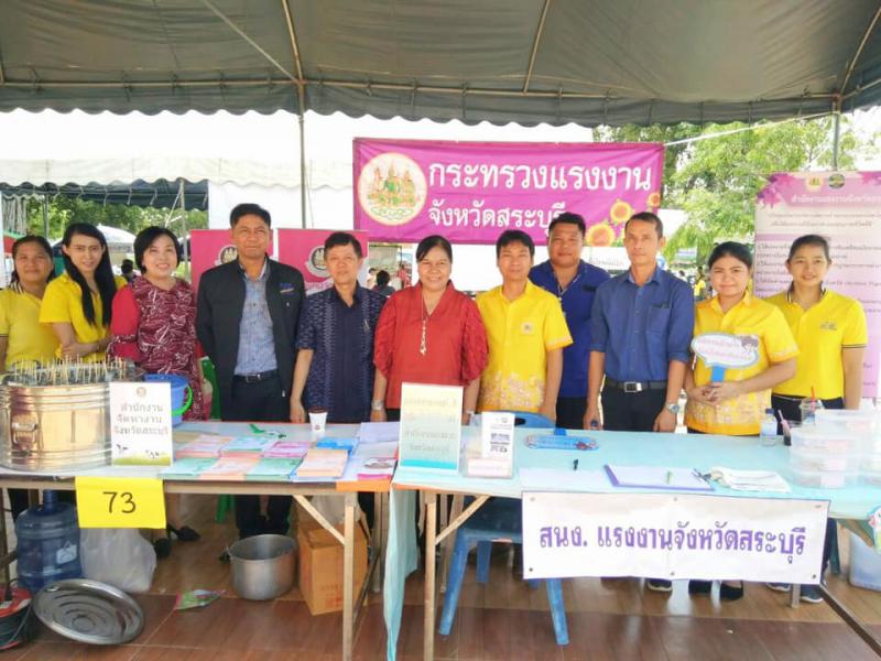 วันที่ 17 กันยายน 2562 เวลา 08.30 น. นางสาวรัตนา ทองกลับ แรงงานจังหวัดสระบุรี และหัวหน้าส่วนราชการสังกัด พร้อมด้วยเจ้าหน้าที่หน่วยงานสังกัดกระทรวงแรงงานจังหวัดสระบุรี บูรณาการร่วมจัดกิจกรรมหน่วยบำบัดทุกข์ บำรุงสุข สร้างรอยยิ้มประชาชน ภายในงานมีนิทรรศการให้ความรู้กฎหมายแรงงาน ตำแหน่งงานว่าง และบริการสมัครประกันสังคม มาตรา 40 ซึ่งมีประชาชนเข้าร่วมกิจกรรมเป็นจำนวนมาก ณ บริเวณวัดบ้านบกน้อย หมู่ที่ 8 ตำบลบัวลอย อำเภอหนองแค จังหวัดสระบุรี โดยมีนายแมนรัตน์ รัตนสุคนธ์ ผู้ว่าราชการจังหวัดสระบุรี เป็นประธาน