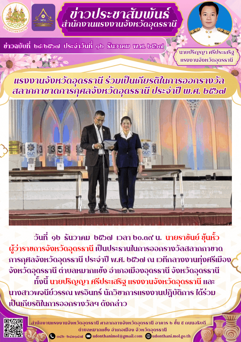 สรจ.อุดรธานี ร่วมเป็นเกียรติในการออกรางวัลสลากกาชาดการกุศลจังหวัดอุดรธานี ประจำปี พ.ศ. ๒๕๖๗