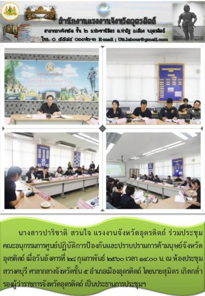 แรงงานจังหวัดอุตรดิตถ์ ร่วมประชุมคณะอนุกรรมการศูนย์ปฏิบัติการป้องกันและปราบปรามการค้ามนุษย์จังหวัดอุตรดิตถ์