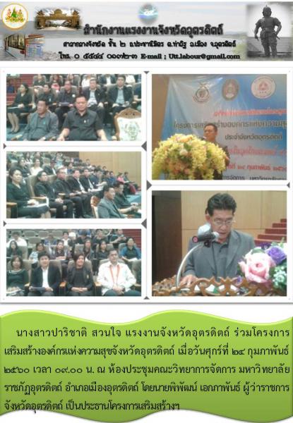 แรงงานจังหวัดอุตรดิตถ์ ร่วมโครงการเสริมสร้างองค์กรแห่งความสุขจังหวัดอุตรดิตถ์