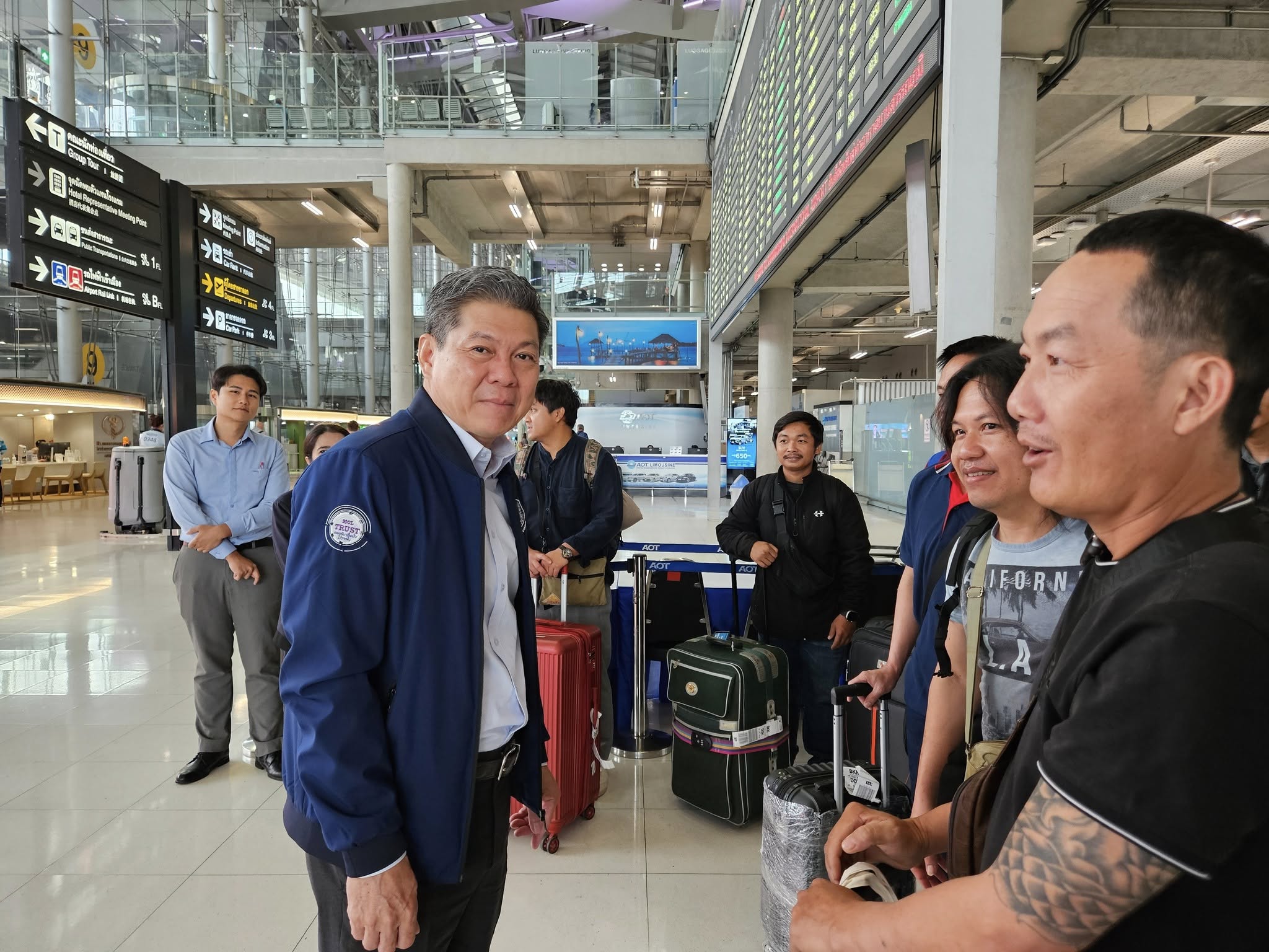 โดยผู้ช่วยปลัดกระทรวงแรงงาน กล่าวว่า ในวันนี้ท่านบุญสงค์ ทัพชัยยุทธ์ ปลัดกระทรวงแรงงานได้มอบหมายให้ผมเป็นตัวแทนมารับแรงงานที่กลับจากอิสราเอลเนื่องจากทำงานครบสัญญาจ้างอีก 9 ราย ซึ่งจากการได้พูดคุยให้กำลังใจ แรงงานทุกคน ในการเดินทางกลับบ้านครั้งนี้ ทุกคนมีกำลังใจที่ดี ซึ่งแรงงานที่เดินทางกลับเนื่องจากครบกำหนดทำงาน เจ็บป่วยและเหตุผลส่วนตัว โดยแรงงานกลุ่มดังกล่าวออกเดินทางจากกรุงอัมมาน เมื่อวันที่ 26 มิถุนายน 2568 เวลา 14.00 น. เที่ยวบิน QR403 จากนั้นต่อเครื่องบินที่สนามบินโดฮา สายการบินการ์ต้า เที่ยวบินที่ QR1830 และเดินทางถึงประเทศไทยในวันนี้ (27 มิ.ย.68) เวลา 07.15 น.