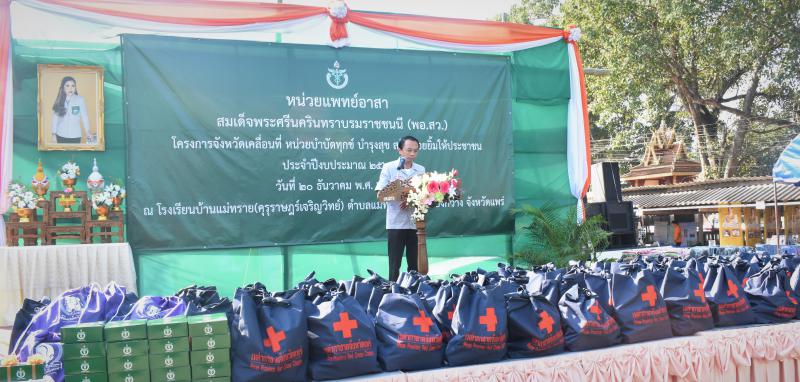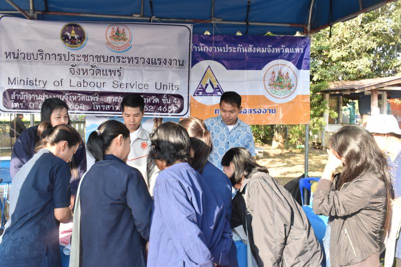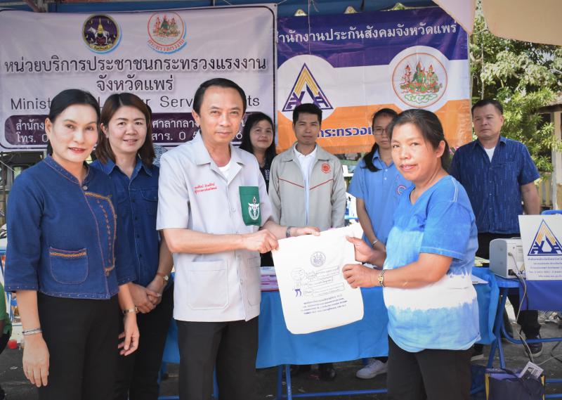 ในการนี้แรงงานจังหวัดแพร่ ได้ร่วมมอบถุงยังชีพเพื่อแจกจ่ายแก่ครอบครัวที่ยากไร้ และแนะนำภารกิจของกระทรวงแรงงานแก่ประชาชนในพื้นที่