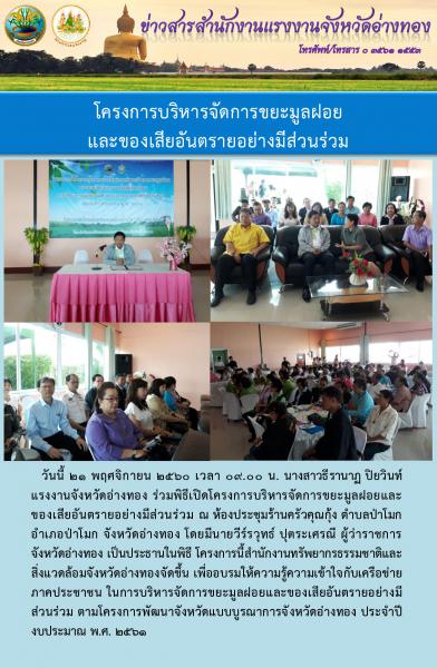 โครงการบริหารจัดการขยะมูลฝอย และของเสียอันตรายอย่างมีส่วนร่วม ของจังหวัดอ่างทอง