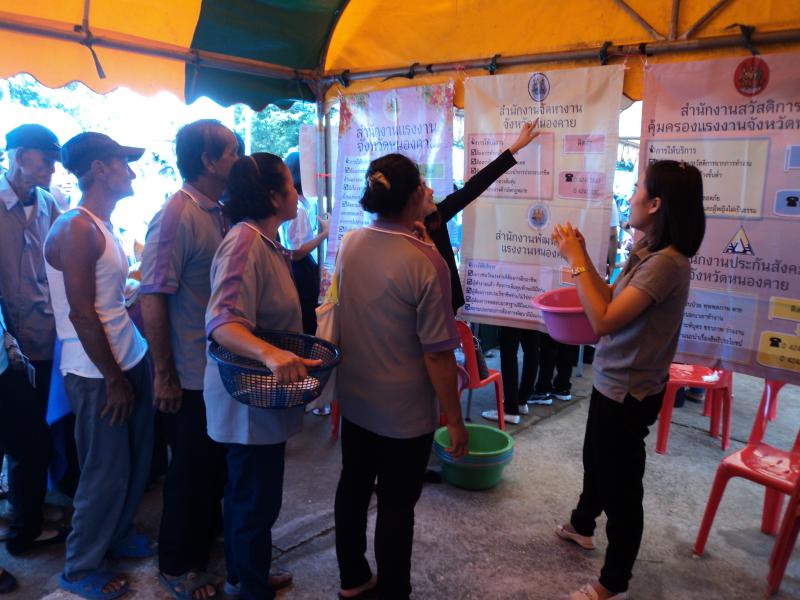 สำนักงานแรงงานจังหวัดหนองคาย ได้จัดโครงการสาน สร้าง เสริมสุขแรงงานไทย จังหวัดหนองคาย ประจำปีงบประมาณ พ.ศ. 2560 ครั้งที่ 9 บูรณาการร่วมกับการเข้าร่วมโครงการปกป้องและเชิดชูสถาบันพระมหากษัตริย์ และหน่วยบำบัดทุกข์ บำรุงสุข จังหวัดหนองคาย ประจำปีงบประมาณ 2560 เมื่อวันศุกร์ ที่ 22 กันยายน 2560 ณ โรงเรียนกุดบงพิทยาคารหมู่ที่ 9 บ้านโนนสวรรค์ ตำบลกุดยง อำเภอโพนพิสัย จังหวัดหนองคาย โดยมีวัตถุประสงค์ให้ประชาชนมีความปรองดองสมานฉันท์ เกิดความรักสามัคคีเป็นอันหนึ่่งอันเดียวกัน รวมถึงให้ประชาชนได้รับความสะดวกโดยการนำบริการภาครัฐไปให้บริการประชาชนในพื้นที่ เพื่อสร้างความสัมพันธ์อันดีระหว่างประชาชนกับส่วนราชการ