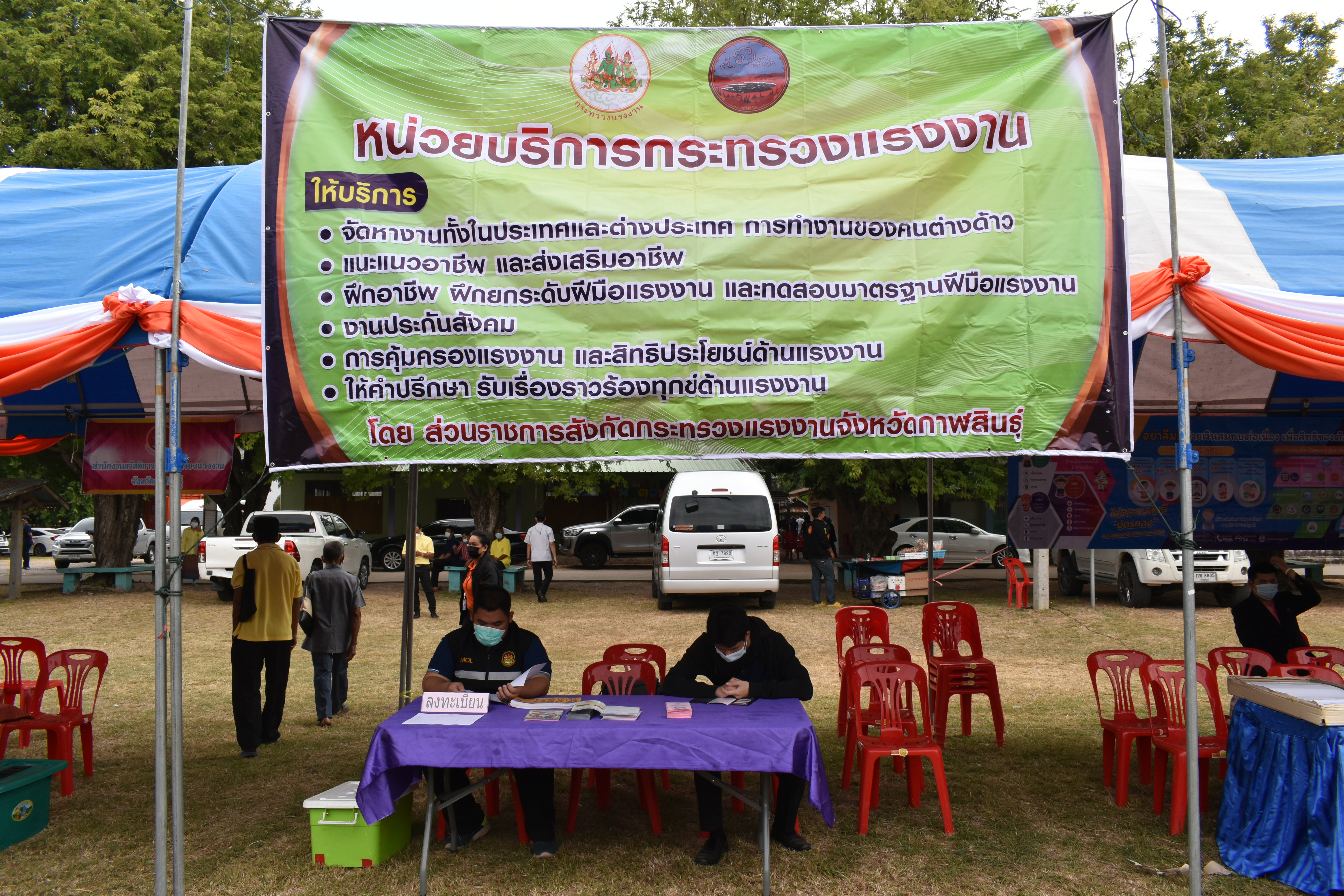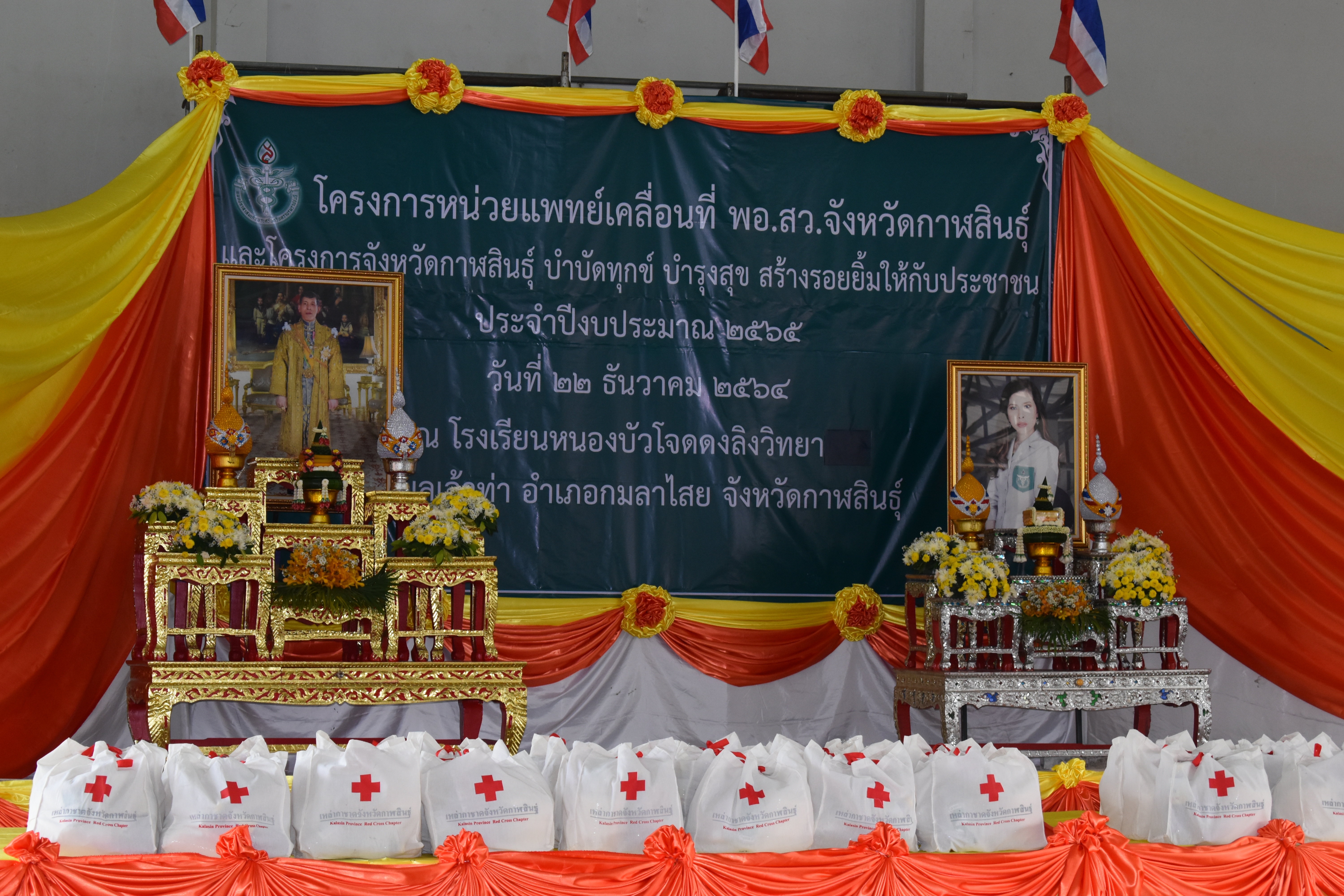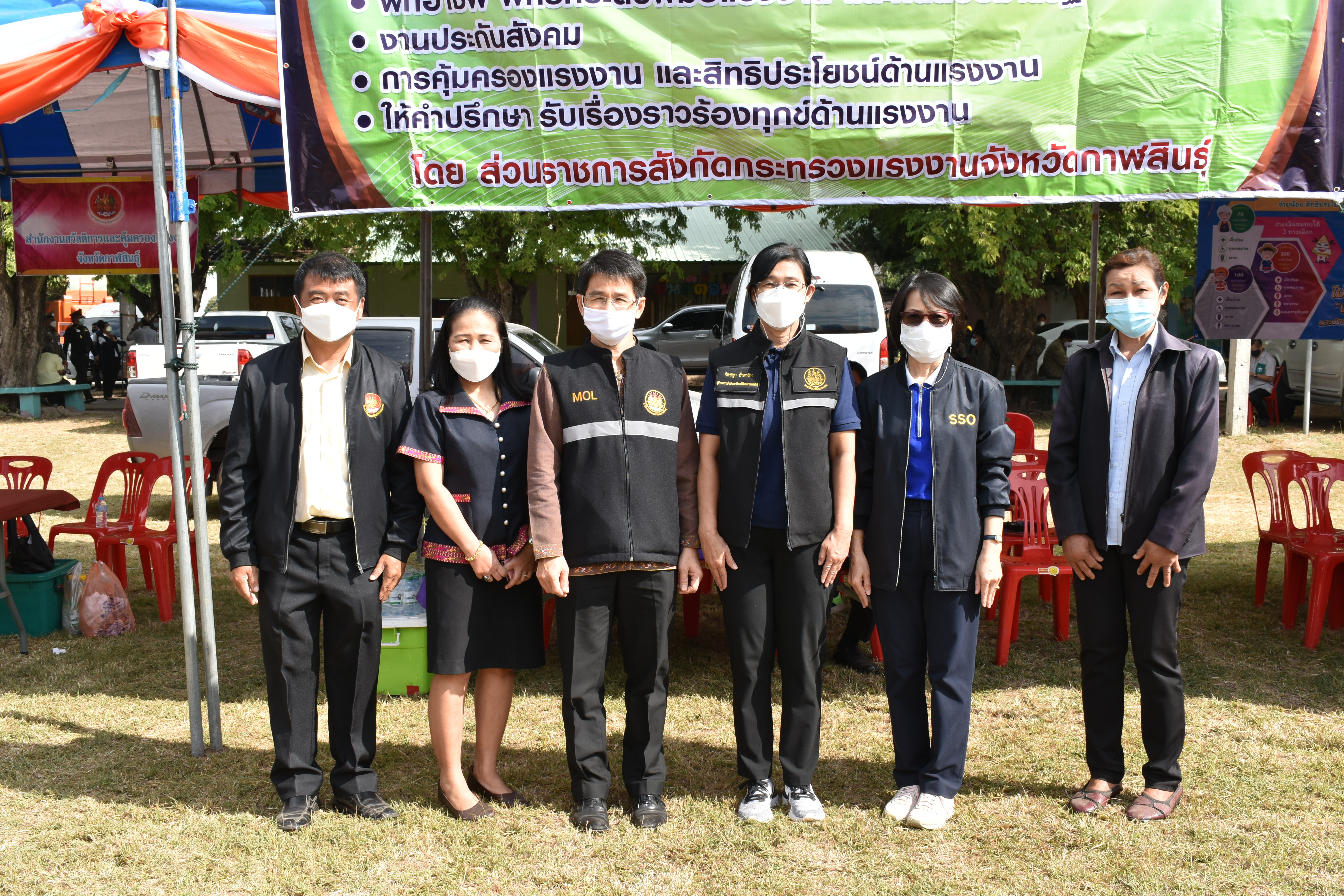 วันพุธที่ 22 ธันวาคม 2564 สำนักงานแรงงานจังหวัดกาฬสินธุ์ โดยนางพนิดา เสถียรจิตร แรงงานจังหวัดกาฬสินธุ์ มอบหมายนายเสมือน ศรีพอ นักวิชาการแรงงานชำนาญการ และเจ้าหน้าที่สำนักงานแรงงานจังหวัดกาฬสินธุ์ ร่วมโครงการหน่วยแพทย์เคลื่อนที่ พอ.สว. และโครงการจังหวัดกาฬสินธุ์ บำบัดทุกข์ บำรุงสุข สร้างรอยยิ้มให้ประชาชน ประจำปีงบประมาณ พ.ศ. 2565 ณ โรงเรียนหนองบัวโจดดงลิงวิทยา บ้านหนองบัว หมู่ที่ 14 ตำบลเจ้าท่า อำเภอกมลาไสย จังหวัดกาฬสินธุ์ โดยมีนายศุภศิษย์ กอเจริญยศ รองผู้ว่าราชการจังหวัดกาฬสินธุ์ เป็นประธาน