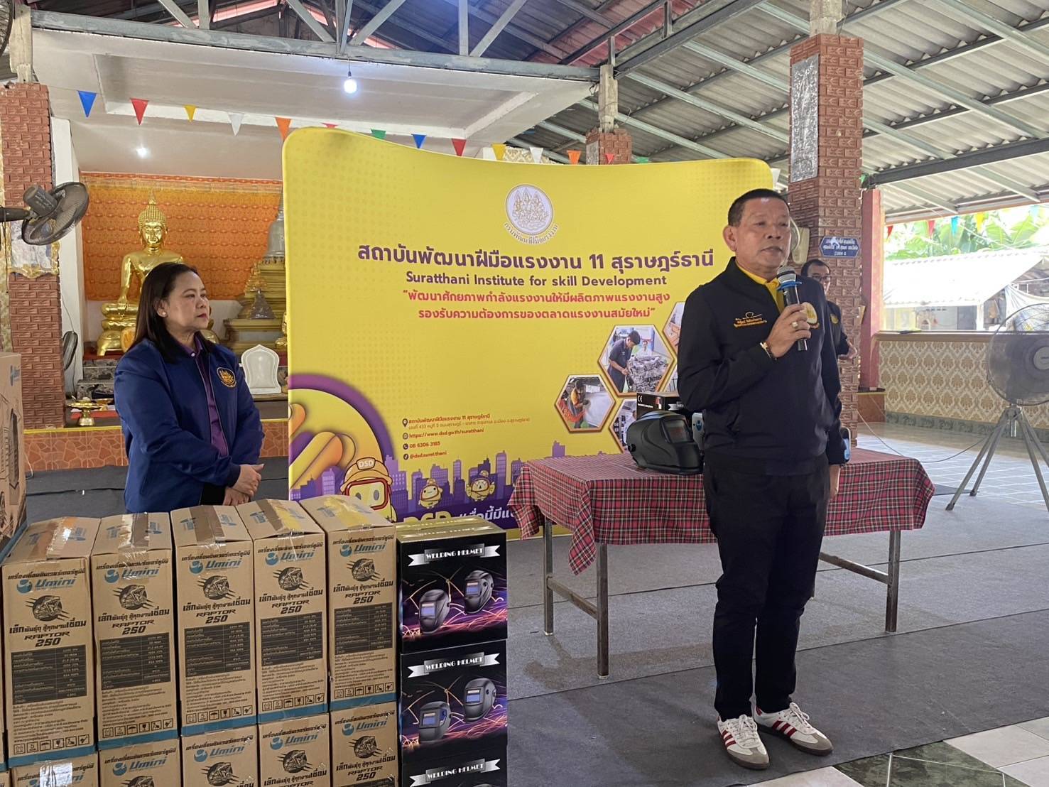 วันที่ 10 มิถุนายน 2568 นายพิพัฒน์ รัชกิจประการ รัฐมนตรีว่าการกระทรวงแรงงาน มอบหมายให้ นายภูมิพัฒน์ เหมือนจันทร์ โฆษกกระทรวงแรงงาน เป็นประธานมอบเครื่องมือพื้นฐานชุดการฝึก (ชุดเครื่องมือทำมาหากิน) ให้กับผู้สำเร็จการฝึกอบรมหลักสูตรการเชื่อมประกอบผลิตภัณฑ์จำนวน 20 คน เพื่อให้แรงงานได้มีเครื่องมือต่อยอดในการประกอบอาชีพ สามารถเลี้ยงดูตนเอง และครอบครัวได้อย่างยั่งยืน โดยมีนางสมพร ดวงแก้ว ผู้อำนวยการสถาบันพัฒนาฝีมือแรงงาน 11 สุราษฎร์ธานี เจ้าหน้าที่ และ หน่วยงานสังกัดกระทรวงแรงงานจังหวัดสุราษฎร์ธานี ร่วมเป็นเกียรติ ณ วัดบางกำยาน ตำบลสินเจริญ อำเภอพระแสง จังหวัดสุราษฎร์ธานี