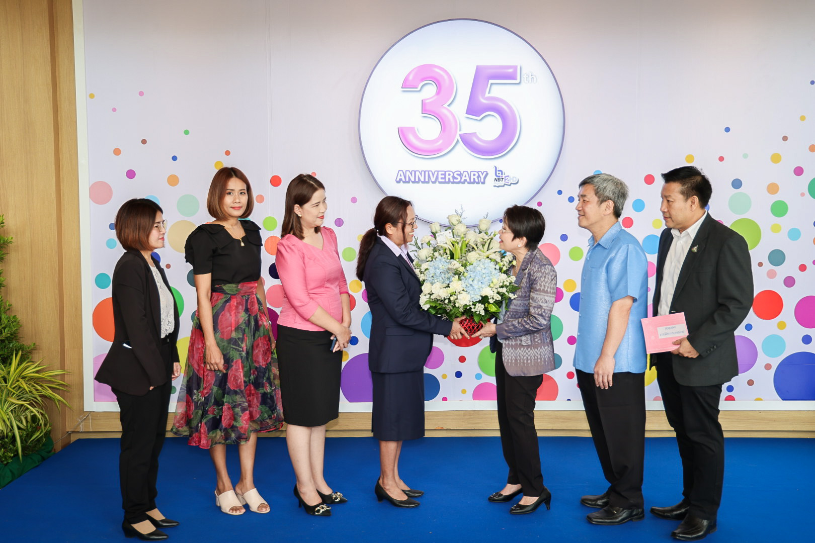 วันที่ 11 กรกฎาคม 2566 เวลา 10.00 น. นายสุชาติ ชมกลิ่น รัฐมนตรีว่าการกระทรวงแรงงาน มอบหมายให้ นางเธียรรัตน์ นะวะมะวัฒน์ โฆษกกระทรวงแรงงาน (ฝ่ายการเมือง) นำคณะผู้บริหารกระทรวงแรงงานและหน่วยงานในสังกัดร่วมแสดงความยินดีเนื่องในโอกาสครบรอบ35 ปี สถานีวิทยุโทรทัศน์แห่งประเทศไทย (NBT) โดยมี คุณสนิฎา ปานคงคา ผู้อำนวยการส่วนสื่อข่าวและผลิตรายการข่าว เป็นผู้รับกระเช้าดอกไม้ ณ สถานีวิทยุโทรทัศน์แห่งประเทศไทย ถนนวิภาวดีรังสิต เขตดินแดง กรุงเทพมหานคร