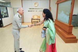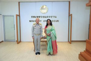 วันที่ 10 มีนาคม 2568 นายพิพัฒน์ รัชกิจประการ รัฐมนตรีว่าการกระทรวงแรงงาน ให้การต้อนรับ นางเอทิริสิงเห อารัจจิลาเค ศรียานี วิชยันติ เอทิริสิงเห (H.E. Mrs. Edirisinghe Arachchilage Sriyani Wijayanthi Edirisinghe) เอกอัครราชทูตวิสามัญผู้มีอำนาจเต็ม แห่งสาธารณรัฐสังคมนิยมประชาธิปไตยศรีลังกาประจำประเทศไทย ณ กระทรวงแรงงาน เพื่อหารือแนวทางขยายความร่วมมือด้านแรงงานระหว่างสองประเทศ พร้อมเน้นย้ำการคุ้มครองสิทธิแรงงานต่างชาติในไทย และสร้างโอกาสการจ้างงานที่โปร่งใส โดยมี นายสิรภพ ดวงสอดศรี ผู้ช่วยรัฐมนตรีประจำกระทรวงแรงงาน นายอารี ไกรนรา เลขานุการรัฐมนตรีว่าการกระทรวงแรงงาน นายภุชงค์ วรศรี ประจำสำนักเลขาธิการนายกรัฐมนตรี ปฏิบัติหน้าที่ประจำกระทรวงแรงงาน นาวาอากาศเอก ดร. อธิคุณ คงมี คณะที่ปรึกษารัฐมนตรีด้านการบริหารจัดการแรงงานผิดกฎหมาย นายสมชาย มรกตศรีวรรณ อธิบดีกรมการจัดหางาน เรือเอก สาโรจน์ คมคาย อธิบดีกรมสวัสดิการและคุ้มครองแรงงาน นางสาวนันทินี ทรัพย์ศิริ ที่ปรึกษาด้านประสิทธิภาพ สำนักงานประกันสังคม นายศักดินาถ สนธิศักดิ์โยธิน ผู้ช่วยปลัดกระทรวงแรงงาน นายสมชาติ สุภารี รองอธิบดีกรมพัฒนาฝีมือแรงงาน ร่วมให้การต้อนรับด้วย