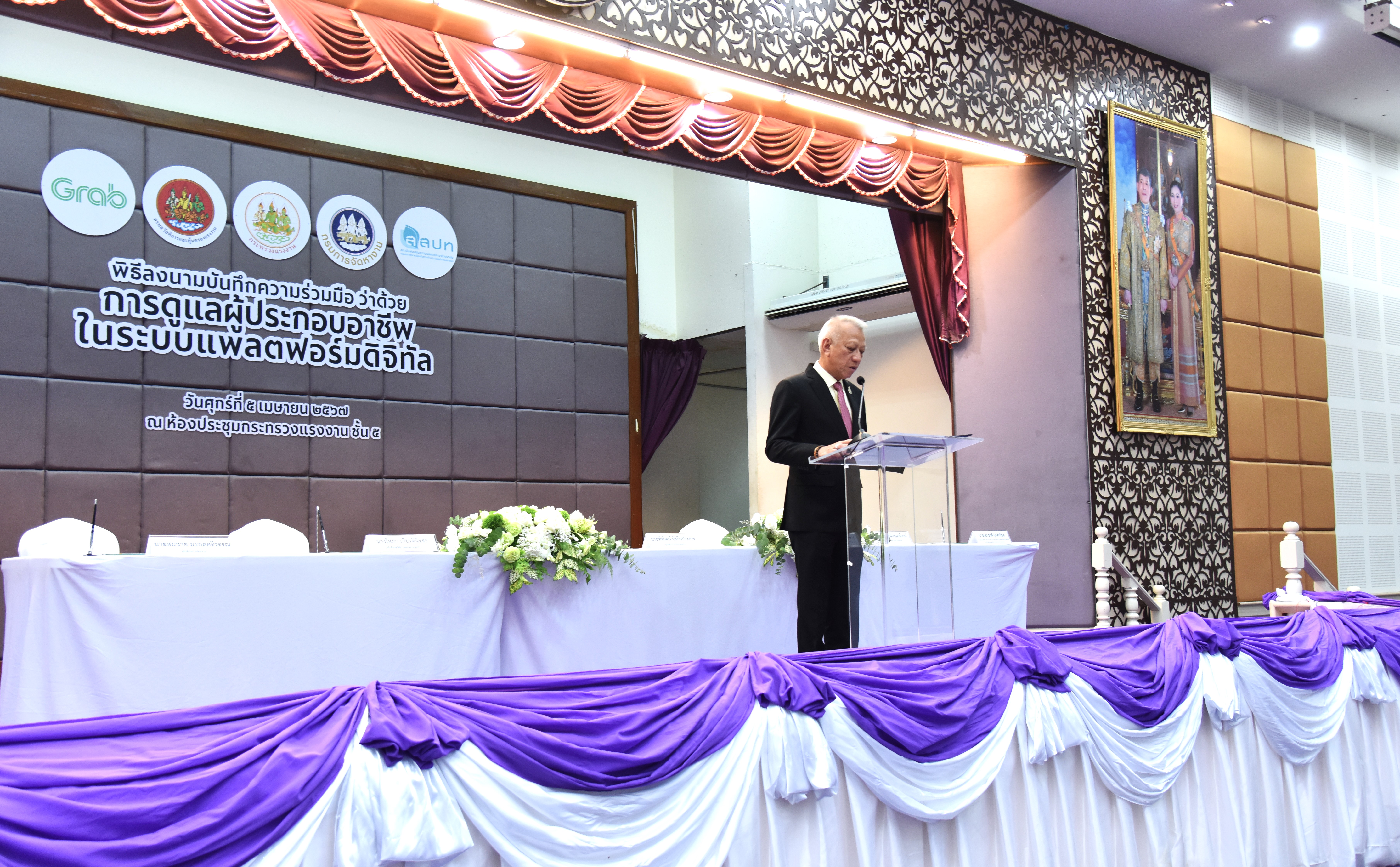นายพิพัฒน์ กล่าวว่า กระทรวงแรงงานได้ให้ความสำคัญต่อการสร้างโอกาสและความเสมอภาคทางสังคมในทุกมิติ โดยเฉพาะการเพิ่มผลิตภาพและการคุ้มครองแรงงานให้ครอบคลุมถึงสภาพการจ้าง สภาพการทำงาน และสร้างความปลอดภัยในการทำงาน เพื่อมุ่งไปสู่การสร้างรากฐานทางเศรษฐกิจ ซึ่งปัจจุบันธุรกิจที่ช่วยสร้างมูลค่าทางเศรษฐกิจของไทย คือ ผู้ประกอบอาชีพในระบบแพลตฟอร์มดิจิทัลที่สามารถสร้างเม็ดเงินเข้ามาหมุนเวียนในระบบเศรษฐกิจของประเทศได้กว่า 21.41 ล้านล้านบาท และมีแรงงานที่ทำงานในระบบดังกล่าวกว่า 1,192,000 ราย ดังนั้น เพื่อเป็นยกระดับการดูแลสวัสดิการและความปลอดภัยในการทำงานของแรงงานกลุ่มนี้ กระทรวงแรงงาน โดยกรมสวัสดิการและคุ้มครองแรงงาน ร่วมกับบริษัท แกร็บแท็กซี่ (ประเทศไทย) จำกัด ได้จัดให้มีพิธีลงนามบันทึกความร่วมมือฯ ขึ้น เพื่อเป็นการแสดงเจตนารมณ์ร่วมกันในการดูแลผู้ประกอบอาชีพธุรกิจแพลตฟอร์มดิจิทัล ซึ่งจะส่งผลเชิงบวกให้กับแรงงานในธุรกิจ สร้างแรงจูงใจและความเชื่อมั่นให้ธุรกิจแพลตฟอร์มขยายตัวเพิ่มมากขึ้น นำไปสู่โอกาสในการทำงาน เสริมสร้างอาชีพให้แก่ผู้ว่างงาน ผู้ที่ต้องการรายได้เสริม และผู้สูงอายุที่ประสงค์จะทำงาน โดยในปัจจุบันบริษัท แกร็บแท็กซี่ มีพาร์ทเนอร์คนขับเป็นกลุ่มผู้สูงอายุมากกว่า 13,000 คน การลงนามในครั้งนี้ นับว่าเป็นจุดเริ่มต้นของความร่วมมือระหว่างภาครัฐและภาคเอกชนที่จะร่วมกันขับเคลื่อนการดูแลคนทำงานในธุรกิจแพลตฟอร์มดิจิทัล ยกระดับทักษะและสมรรถนะแรงงานให้สอดคล้องกับความต้องการของตลาด รวมถึงร่วมกันเป็นพลังในการขับเคลื่อนเศรษฐกิจของประเทศต่อไป