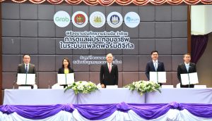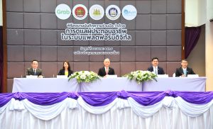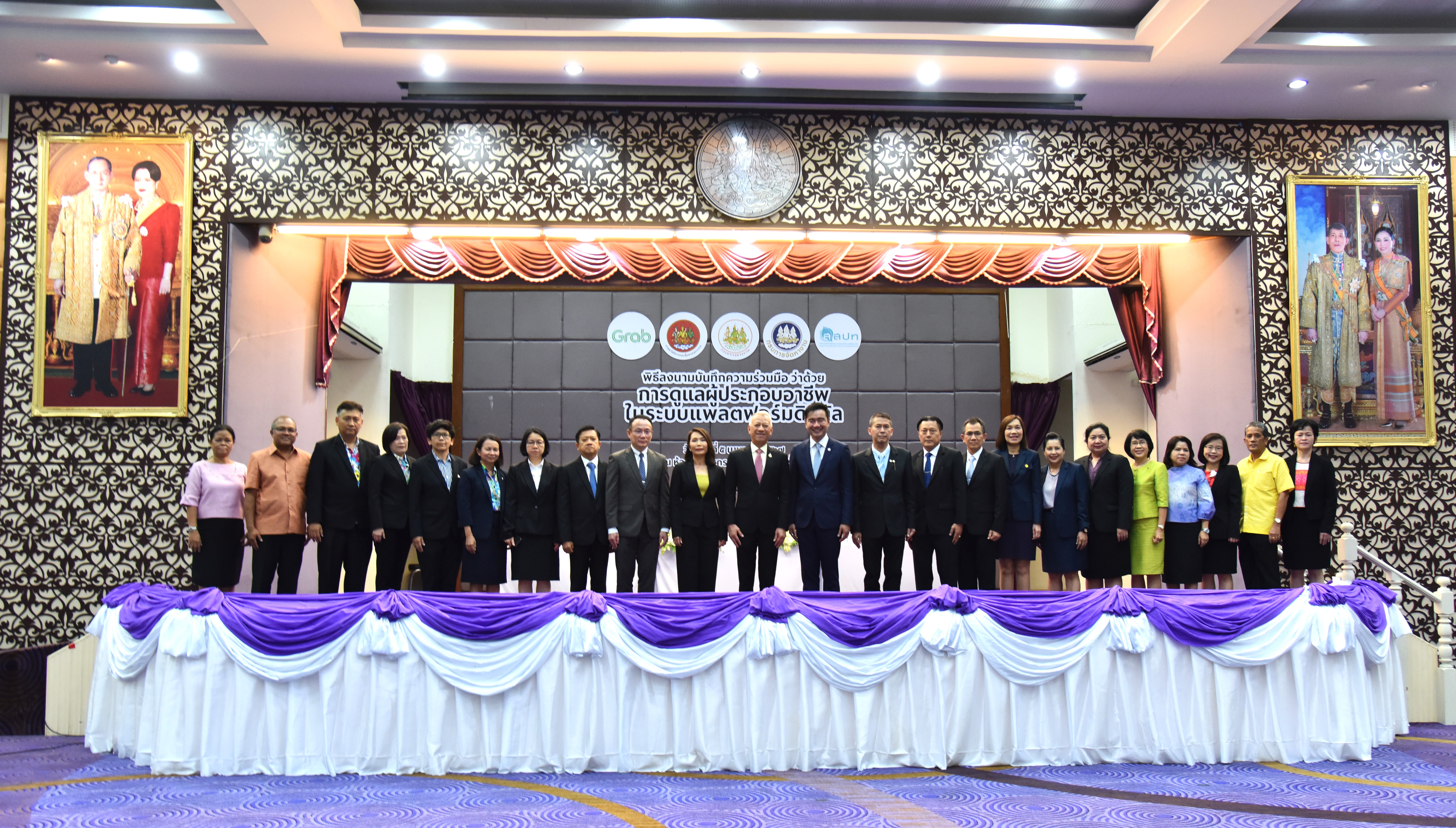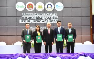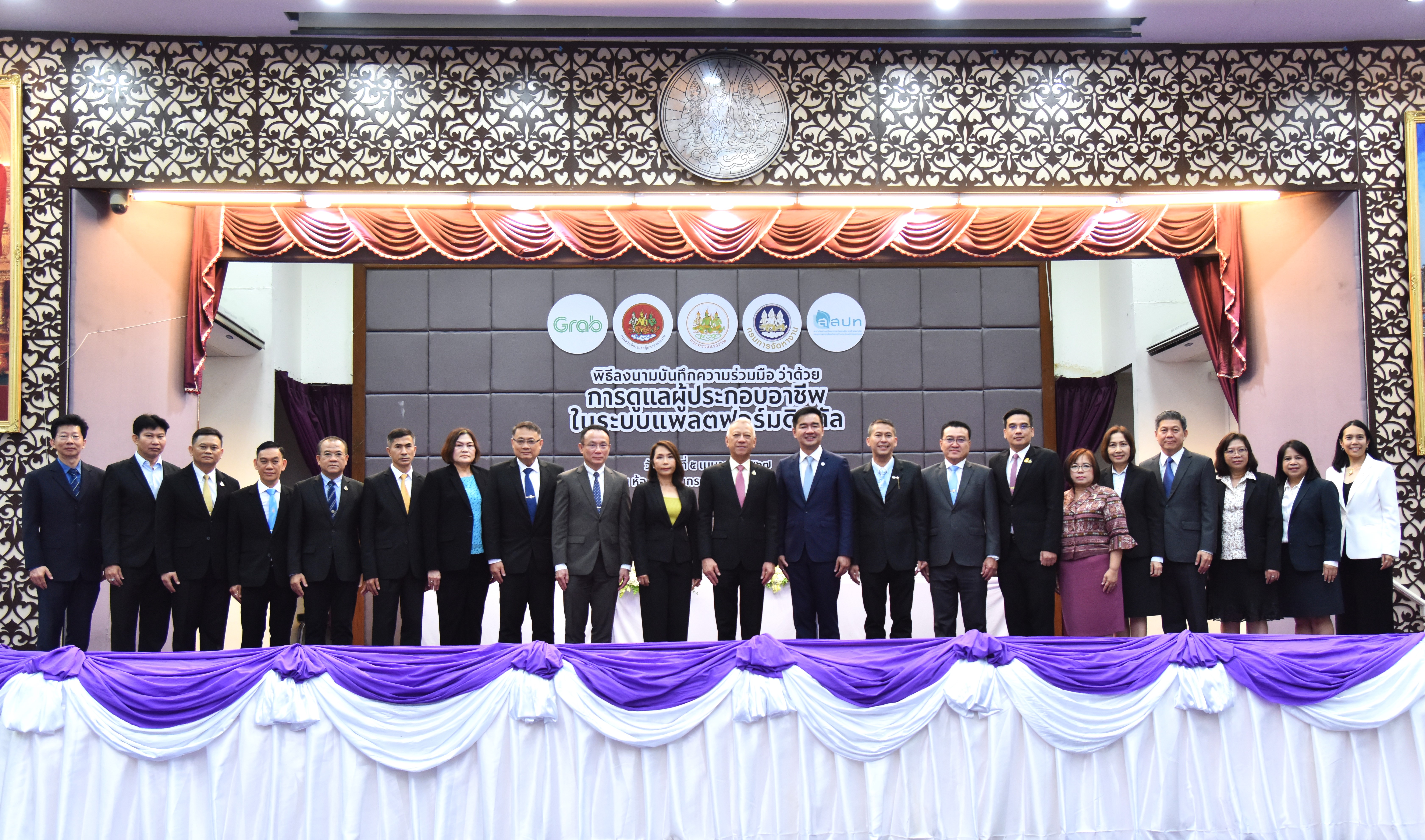 The Labour Minister, Mr. Phiphat, led affiliated agencies to join hands with the giant platform company “Grab” to sign an MOU on caring for professionals in the digital platform system, hoping to raise the level of welfare and safety to serve as a starting point or a model for developing over 1,192,000 quality workers in the delivery business sector, creating economic value of 21.41 trillion Baht.