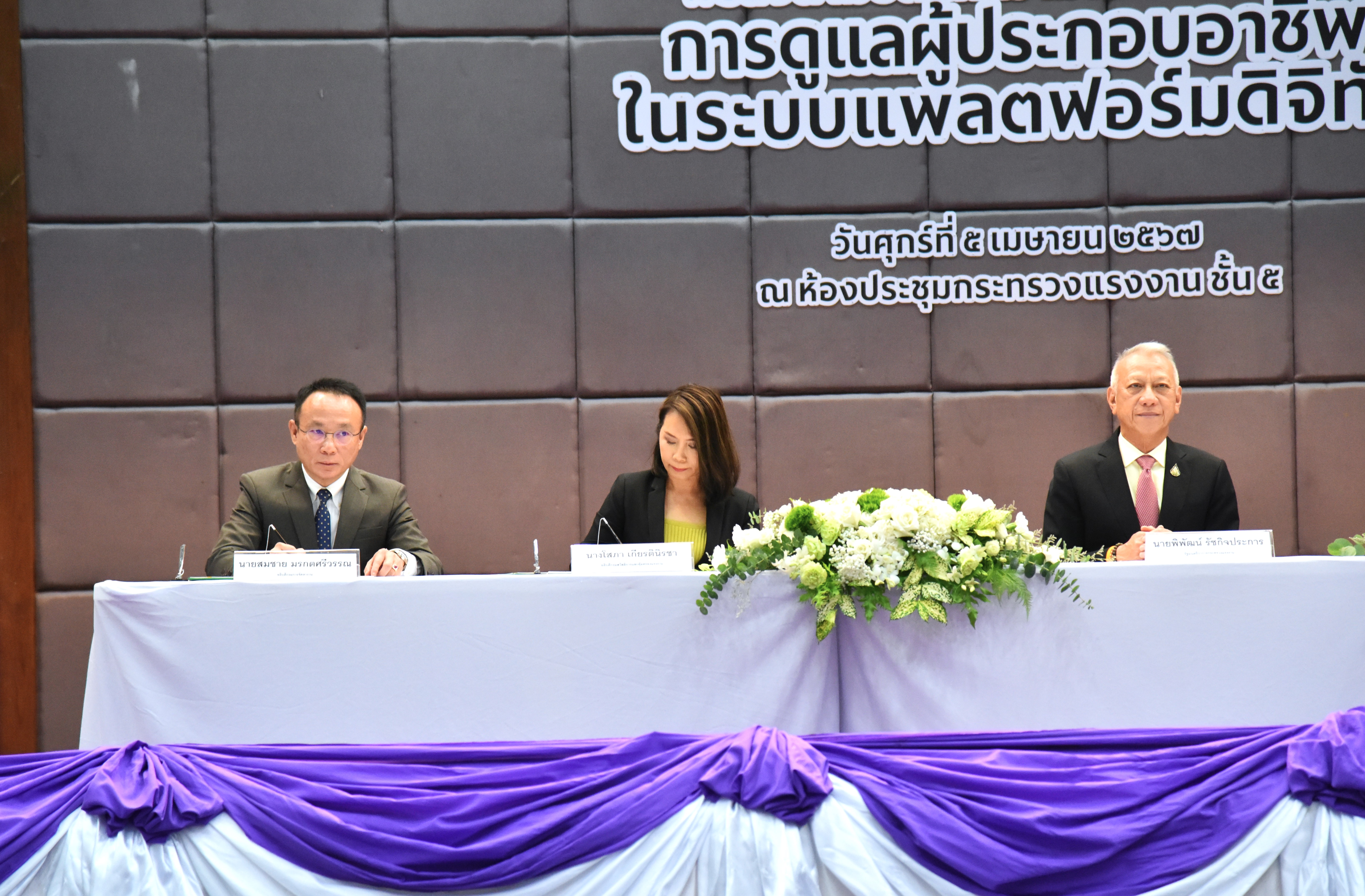 วันที่ 5 เมษายน 2567 เวลา 14.00 น. นายพิพัฒน์ รัชกิจประการ รัฐมนตรีว่าการกระทรวงแรงงาน เป็นประธานในพิธีลงนามบันทึกความร่วมมือว่าด้วยการดูแลผู้ประกอบอาชีพในระบบแพลตฟอร์มดิจิทัล โดยมี นายธนัสถ์ ทวีเกื้อกูลกิจ ที่ปรึกษารัฐมนตรีว่าการกระทรวงแรงงาน นายอารี ไกรนรา เลขานุการรัฐมนตรีว่าการกระทรวงแรงงาน นายภุชงค์ วรศรี ประจำสำนักเลขาธิการนายกรัฐมนตรี ปฏิบัติหน้าที่ประจำกระทรวงแรงงาน นายไพโรจน์ โชติกเสถียร ปลัดกระทรวงแรงงาน พร้อมด้วยผู้บริหารระดับสูงกระทรวงแรงงาน ร่วมเป็นเกียรติ นางโสภา เกียรตินิรชา อธิบดีกรมสวัสดิการและคุ้มครองแรงงาน นายสมชาย มรกตศรีวรรณ อธิบดีกรมการจัดหางาน ร่วมลงนาม ณ ห้องประชุมกระทรวงแรงงาน ชั้น 5 อาคารกระทรวงแรงงาน