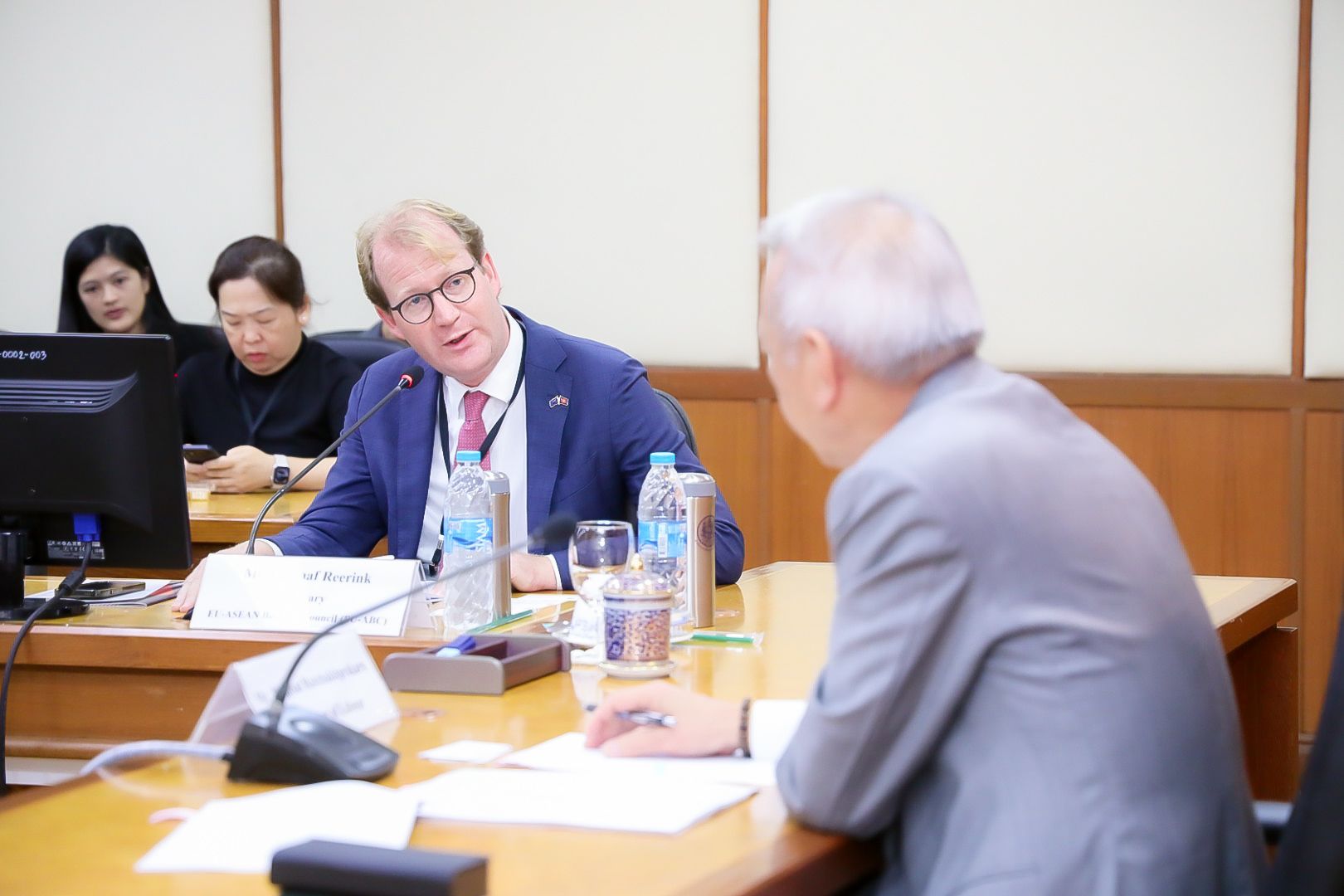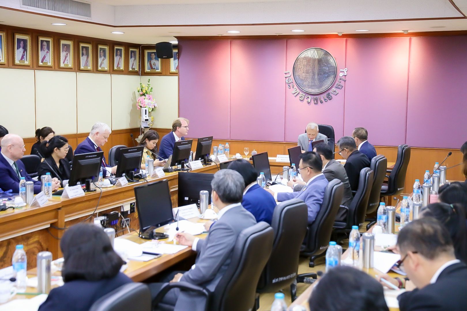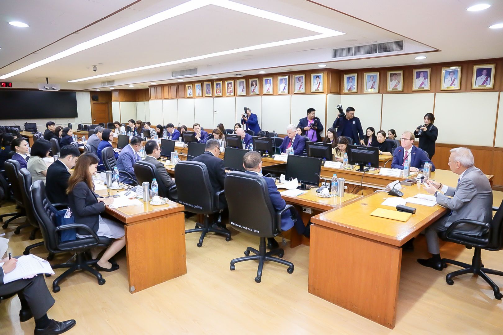 เมื่อวันที่ 19 กุมภาพันธ์ 2568 นายพิพัฒน์ รัชกิจประการ รัฐมนตรีว่าการกระทรวงแรงงาน ให้การต้อนรับ คณะผู้แทนจากสภาธุรกิจสหภาพยุโรป-อาเซียน (EU-ABC) และสมาคมธุรกิจและพาณิชย์ยุโรป (EABC) ณ กระทรวงแรงงาน เพื่อหารือแนวทางความร่วมมือด้านแรงงานและการลงทุน โดยมี นายอารี ไกรนรา เลขานุการรัฐมนตรีว่าการกระทรวงแรงงาน นายภุชงค์ วรศรี ประจำสำนักเลขาธิการนายกรัฐมนตรี ปฏิบัติหน้าที่ประจำกระทรวงแรงงาน นายสมชาย มรกตศรีวรรณ อธิบดีกรมการจัดหางาน นายเดชา พฤกษ์พัฒนรักษ์ อธิบดีกรมพัฒนาฝีมือแรงงาน นางสาวนันทินี ทรัพย์ศิริ ที่ปรึกษาด้านประสิทธิภาพ สำนักงานประกันสังคม นายศักดินาถ สนธิศักดิ์โยธิน ผู้ช่วยปลัดกระทรวงแรงงาน และผู้บริหารกระทรวงแรงงาน ร่วมให้การต้อนรับ Mr. Gustaaf Reerink ABNR Law – Foreign Counsel EU-ABC – Secretary และคณะ