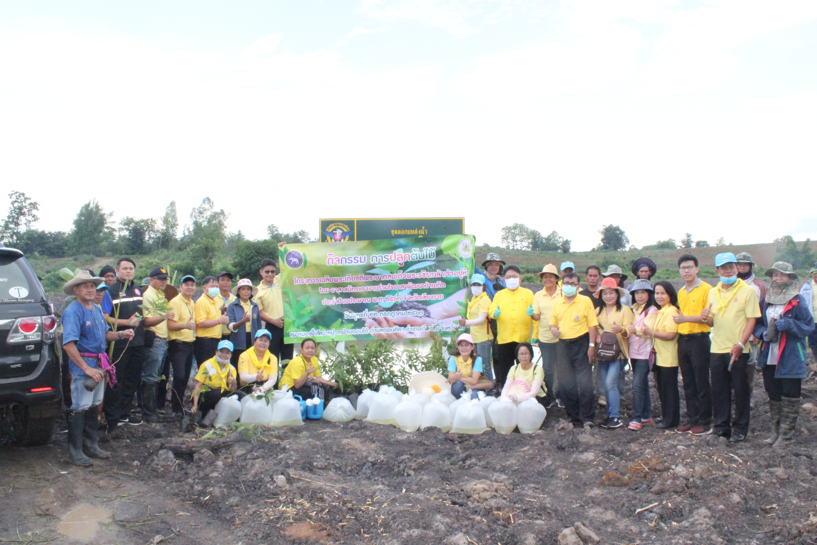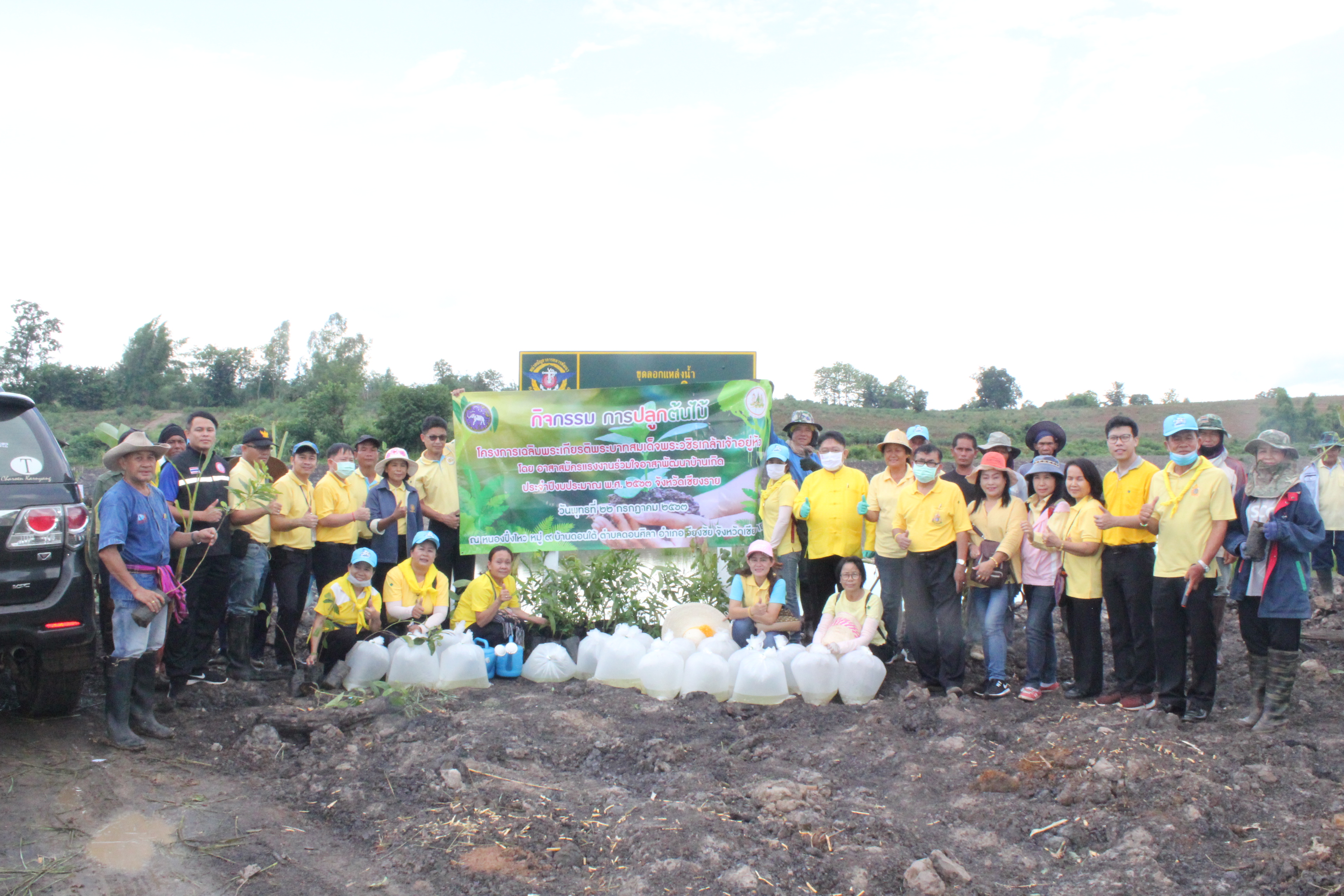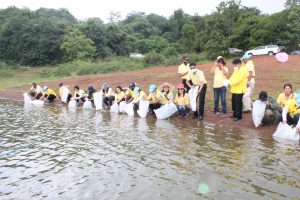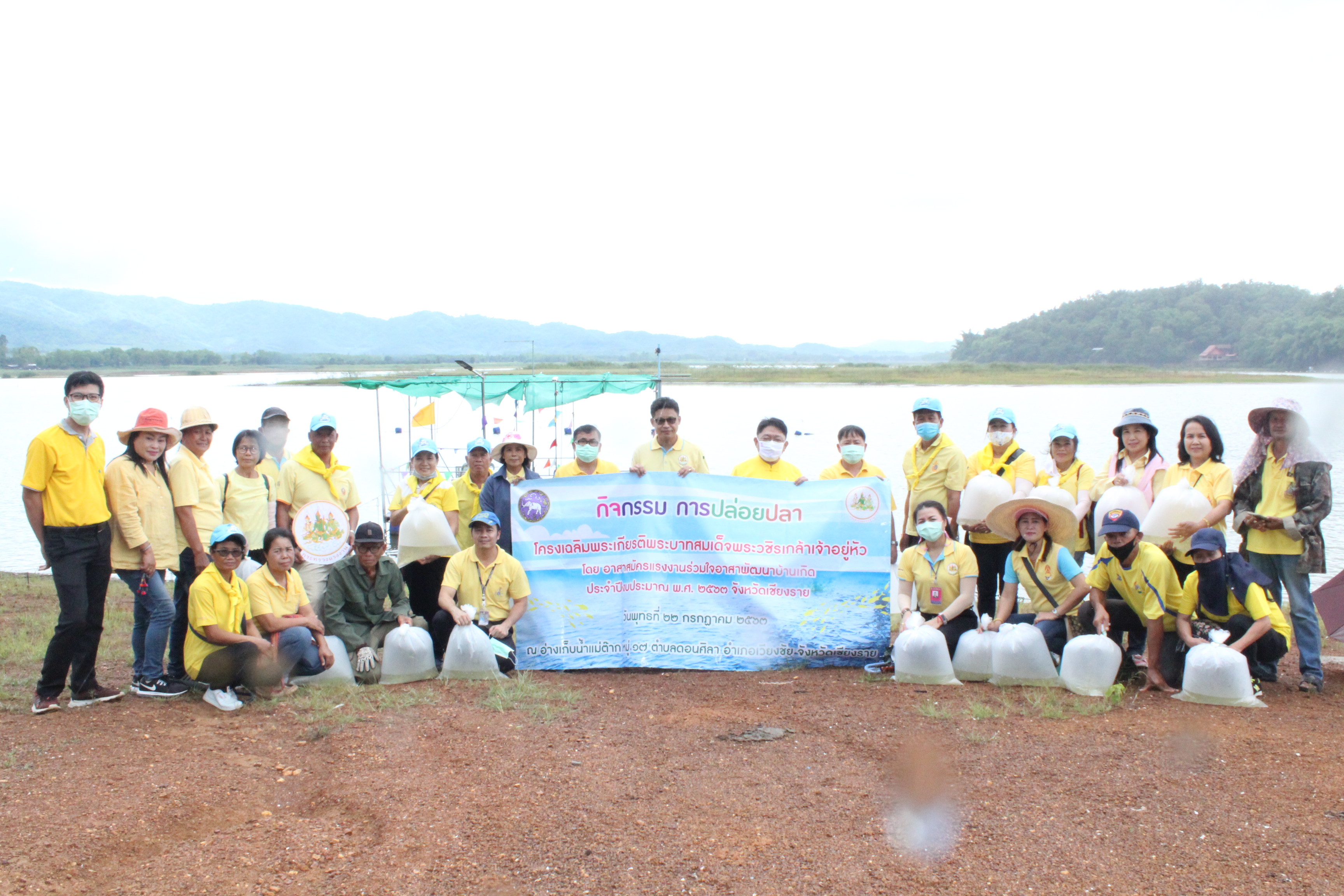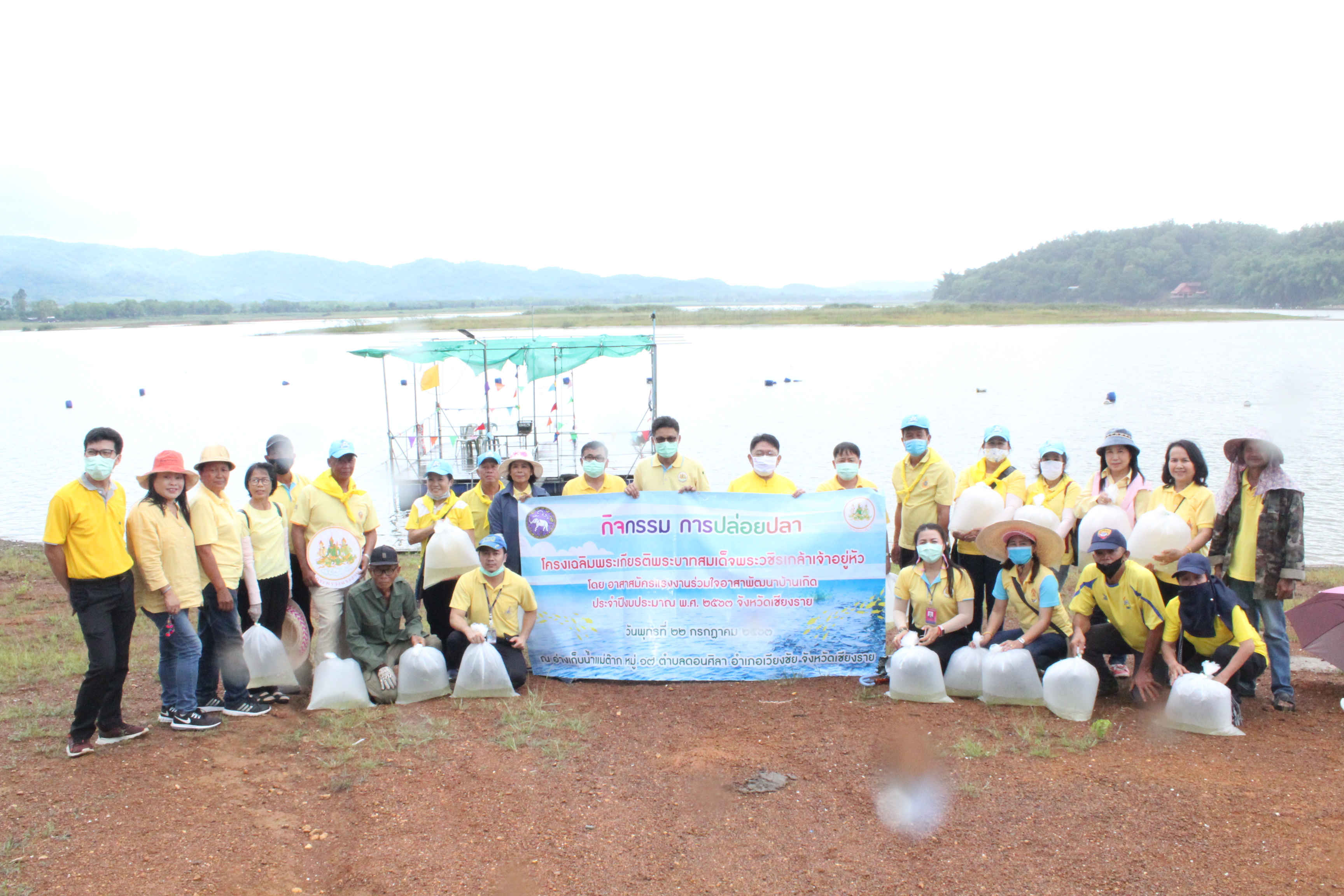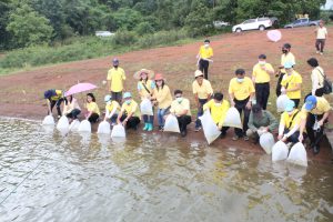 วันที่ 22 กรกฏาคม 2563 หัวหน้าส่วนราชการสังกัดกระทรวงแรงงานจังหวัดเชียงราย นำโดยนายเฉลิมพล เนียมสกุล แรงงานจังหวัดเชียงราย,นายปรีชา อินทรชาธร จัดหางานจังหวัดเชียงราย,นายอรรถชัย สุกใส ผอ.สถาบันพัฒนาฝีมือแรงงาน 20 เชียงราย,น.ส.สุขศรี ไล่กสิกรรมผอ.สถาบันพัฒนาฝีมือแรงงานนานาชาติ, ผู้แทนจากสนง.ประกันสังคมจังหวัดเชียงราย และผู้แทน จาก สนง.สวัสดิการและคุ้มครองแรงงานจังหวัดเชียงราย พร้อมด้วยข้าราชการ เจ้าหน้าที่ และอาสาสมัครแรงงานจังหวัดเชียงราย ร่วมโครงการเฉลิมพระเกียรติพระบาทสมเด็จพระปรเมนทรรามาธิบดีศรีสินทร มหาวชิราลงกรณ พระวชิรเกล้าเจ้าอยู่หัว โดยอาสา สมัครแรงงานพัฒนาบ้านเกิด ประจำปีงบประมาณ พ.ศ.2563 ในกิจกรรมโครงการครั้งนี้มีกิจกรรม ปล่อยพันธุ์ปลาลงสู่แหล่งน้ำ อ่างเก็บน้ำแม่ต๊ากและหนองปึ๋งไหว หมู่ที่ 17 และหมู่ที่ 9 ตำบลดอนศิลา อำเภอเวียงชัย จังหวัดเชียงราย จำนวน 20,000 ตัว และ ร่วมกัน ปลูกต้นไม้เพื่อเฉลิมพระเกียรติฯ ณ บริเวณรอบหนองน้ำหนองปึ๋งไหวจำนวนกว่า 300 ต้นมีทั้งต้นไม้ยืนต้นอาทิเช่น ต้นยางนา ต้นอินทนิล,ตันกาสะลอง,ต้นราชพฤกษ์ และไม้กินผล อาทิเช่น มะม่วง,ลำใย,แอปเปิ้ลสตาร์,กล้วย,ส้มสายน้ำผึ้ง เพื่อเป็นแหล่งอาหาร ให้กับชุมชนฯ โดยได้รับการสนับสนุนกล้าพันธุ์ไม้และพันธุ์ปลา จากสถานีเพาะชำกล้าไม้จังหวัดเชียงราย, ศูนย์วิจัยและพัฒนาการ เพาะเลี้ยงสัตว์น้ำจืด เขต 2 (เชียงราย)และศูนย์วิจัยพืชสวนเชียงราย