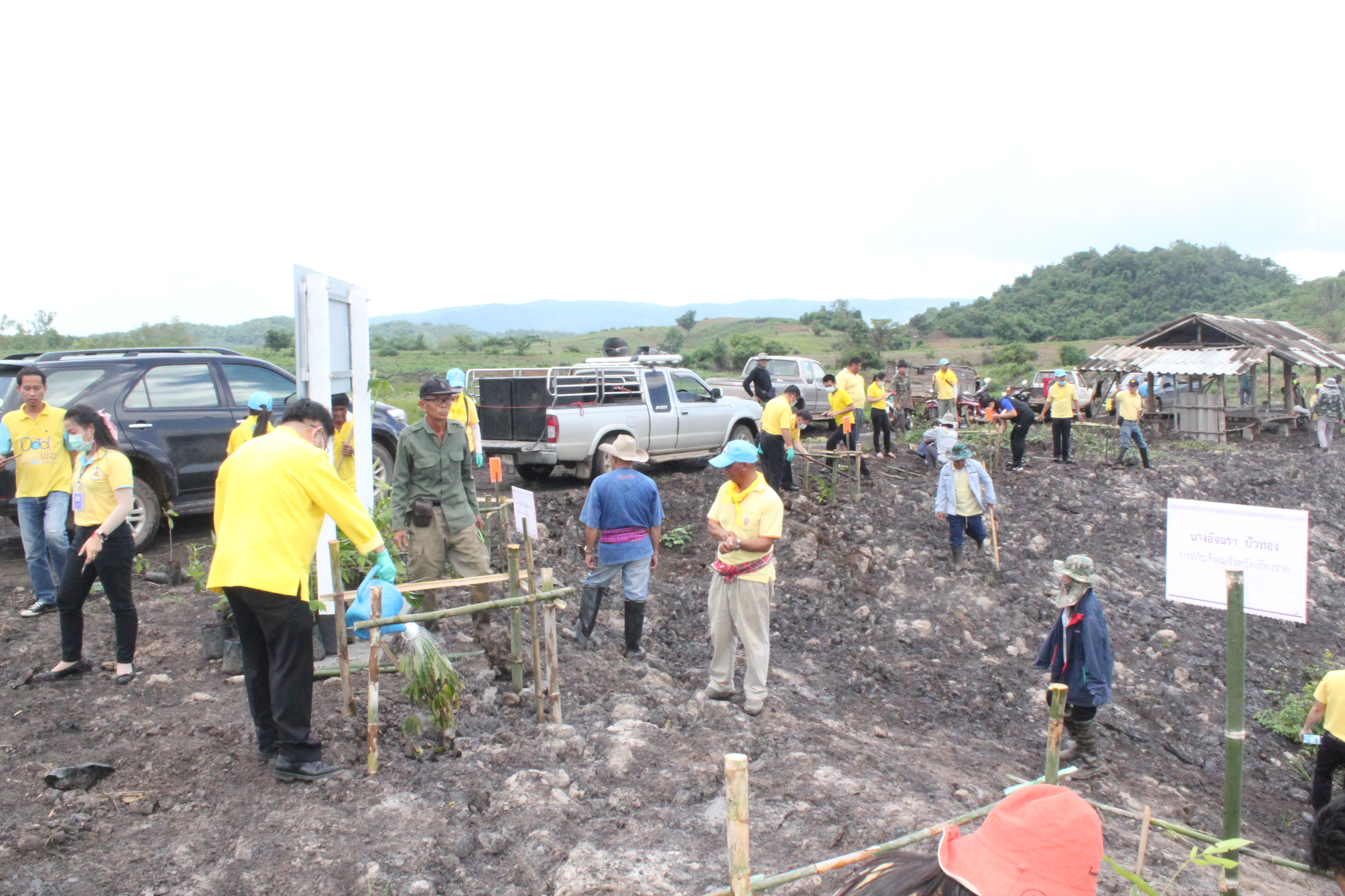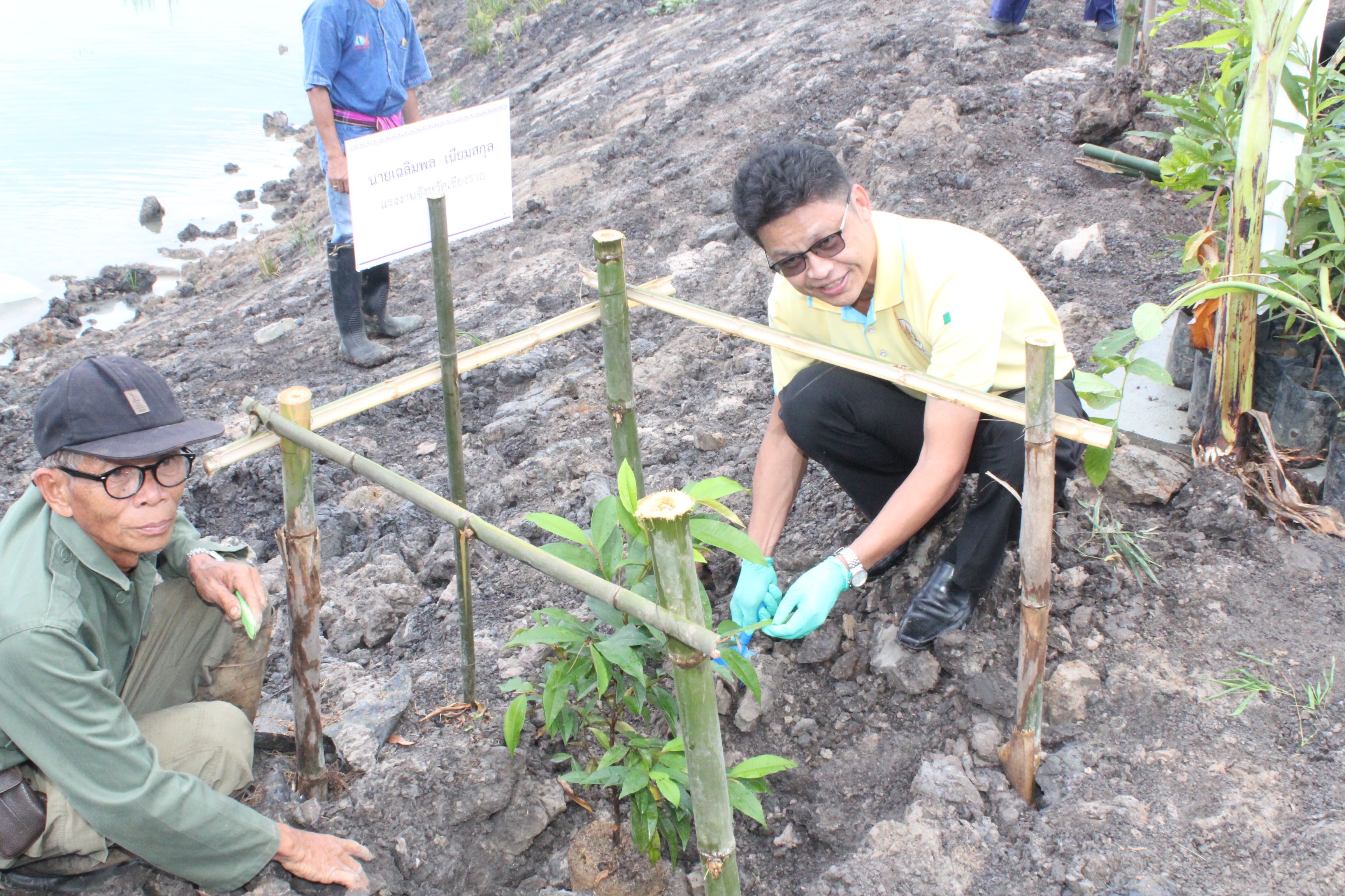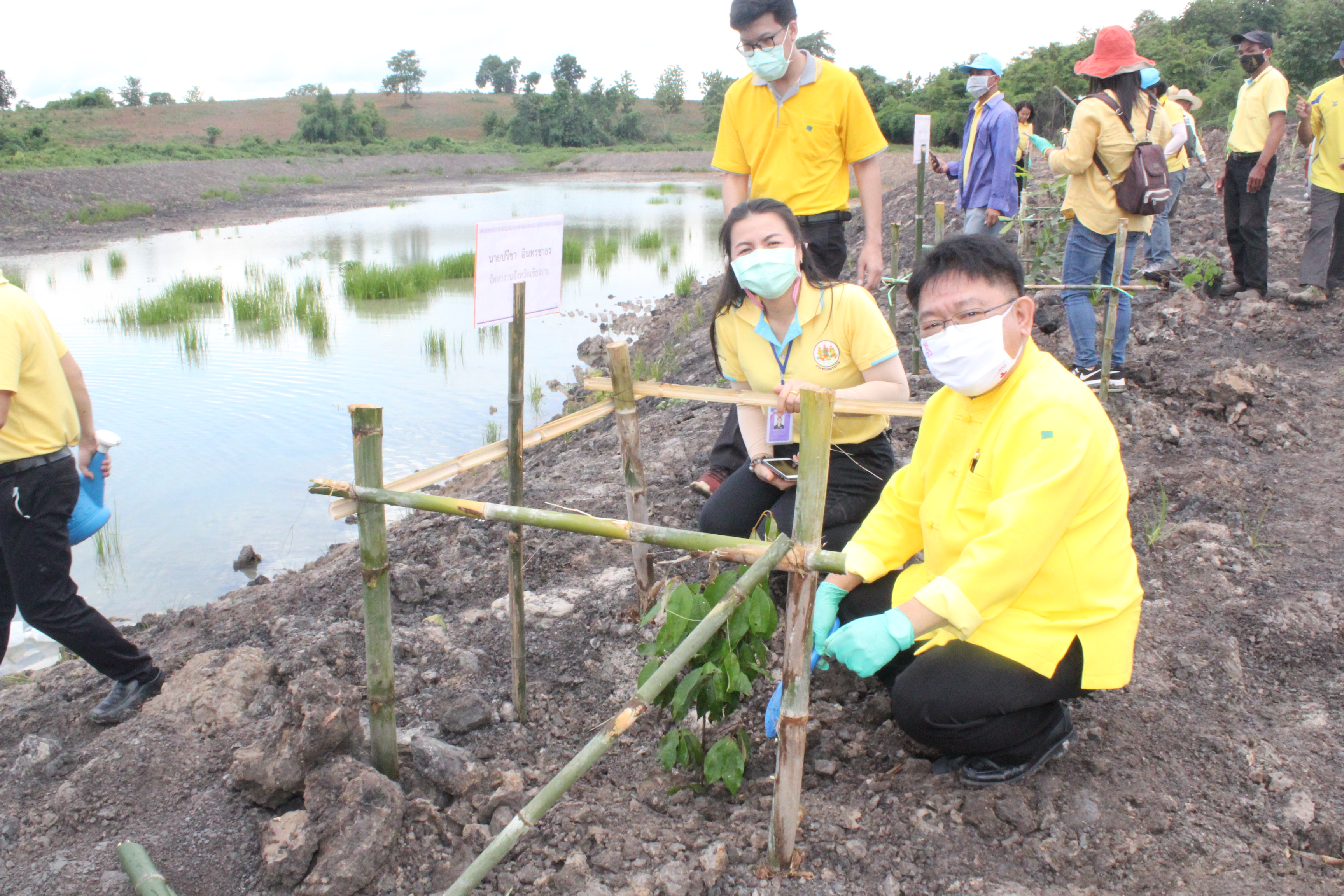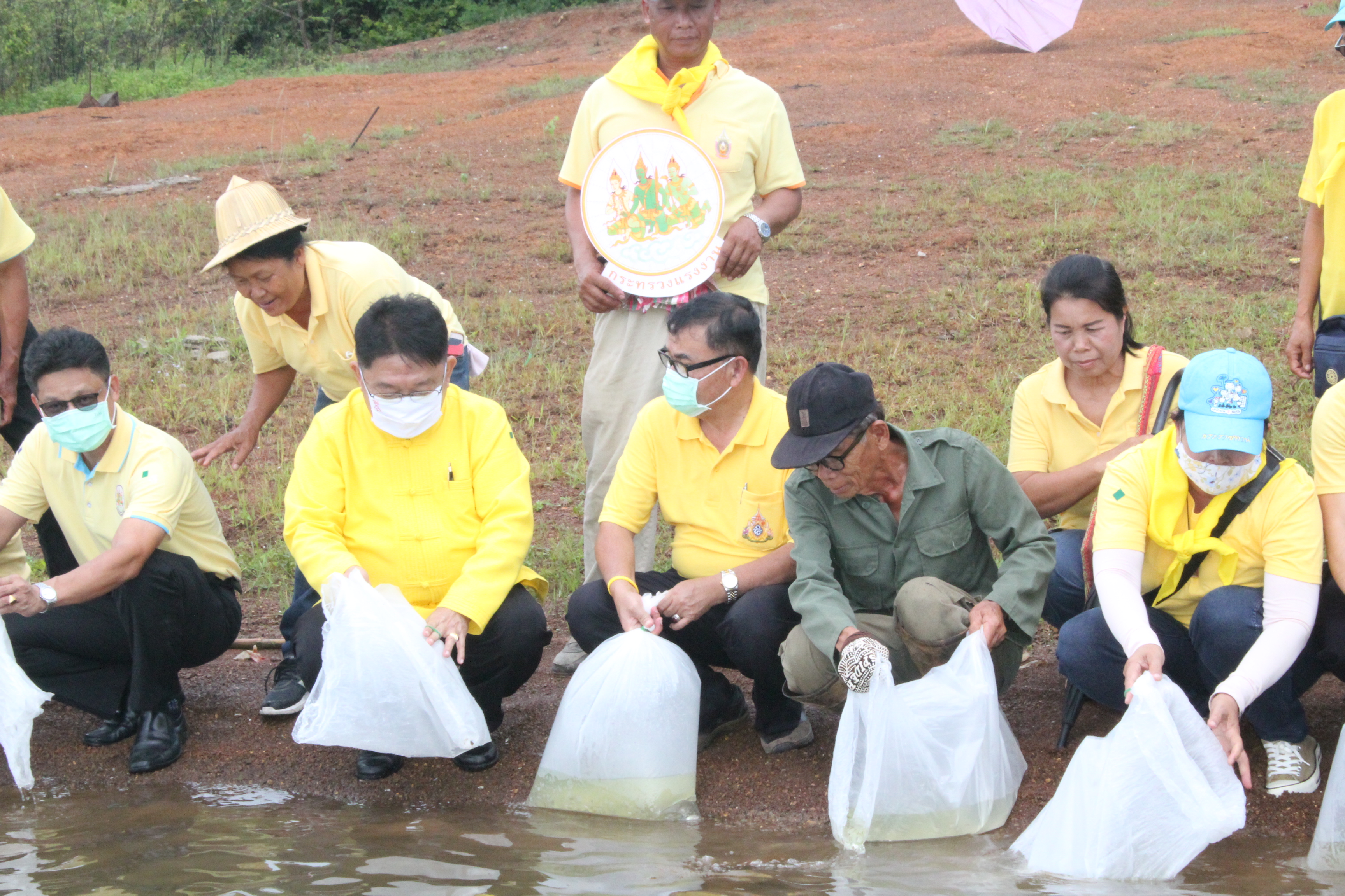 วันที่ 22 กรกฏาคม 2563 หัวหน้าส่วนราชการสังกัดกระทรวงแรงงานจังหวัดเชียงราย นำโดยนายเฉลิมพล เนียมสกุล แรงงานจังหวัดเชียงราย,นายปรีชา อินทรชาธร จัดหางานจังหวัดเชียงราย,นายอรรถชัย สุกใส ผอ.สถาบันพัฒนาฝีมือแรงงาน 20 เชียงราย,น.ส.สุขศรี ไล่กสิกรรมผอ.สถาบันพัฒนาฝีมือแรงงานนานาชาติ, ผู้แทนจากสนง.ประกันสังคมจังหวัดเชียงราย และผู้แทน จาก สนง.สวัสดิการและคุ้มครองแรงงานจังหวัดเชียงราย พร้อมด้วยข้าราชการ เจ้าหน้าที่ และอาสาสมัครแรงงานจังหวัดเชียงราย ร่วมโครงการเฉลิมพระเกียรติพระบาทสมเด็จพระปรเมนทรรามาธิบดีศรีสินทร มหาวชิราลงกรณ พระวชิรเกล้าเจ้าอยู่หัว โดยอาสา สมัครแรงงานพัฒนาบ้านเกิด ประจำปีงบประมาณ พ.ศ.2563 ในกิจกรรมโครงการครั้งนี้มีกิจกรรม ปล่อยพันธุ์ปลาลงสู่แหล่งน้ำ อ่างเก็บน้ำแม่ต๊ากและหนองปึ๋งไหว หมู่ที่ 17 และหมู่ที่ 9 ตำบลดอนศิลา อำเภอเวียงชัย จังหวัดเชียงราย จำนวน 20,000 ตัว และ ร่วมกัน ปลูกต้นไม้เพื่อเฉลิมพระเกียรติฯ ณ บริเวณรอบหนองน้ำหนองปึ๋งไหวจำนวนกว่า 300 ต้นมีทั้งต้นไม้ยืนต้นอาทิเช่น ต้นยางนา ต้นอินทนิล,ตันกาสะลอง,ต้นราชพฤกษ์ และไม้กินผล อาทิเช่น มะม่วง,ลำใย,แอปเปิ้ลสตาร์,กล้วย,ส้มสายน้ำผึ้ง เพื่อเป็นแหล่งอาหาร ให้กับชุมชนฯ โดยได้รับการสนับสนุนกล้าพันธุ์ไม้และพันธุ์ปลา จากสถานีเพาะชำกล้าไม้จังหวัดเชียงราย, ศูนย์วิจัยและพัฒนาการ เพาะเลี้ยงสัตว์น้ำจืด เขต 2 (เชียงราย)และศูนย์วิจัยพืชสวนเชียงราย
