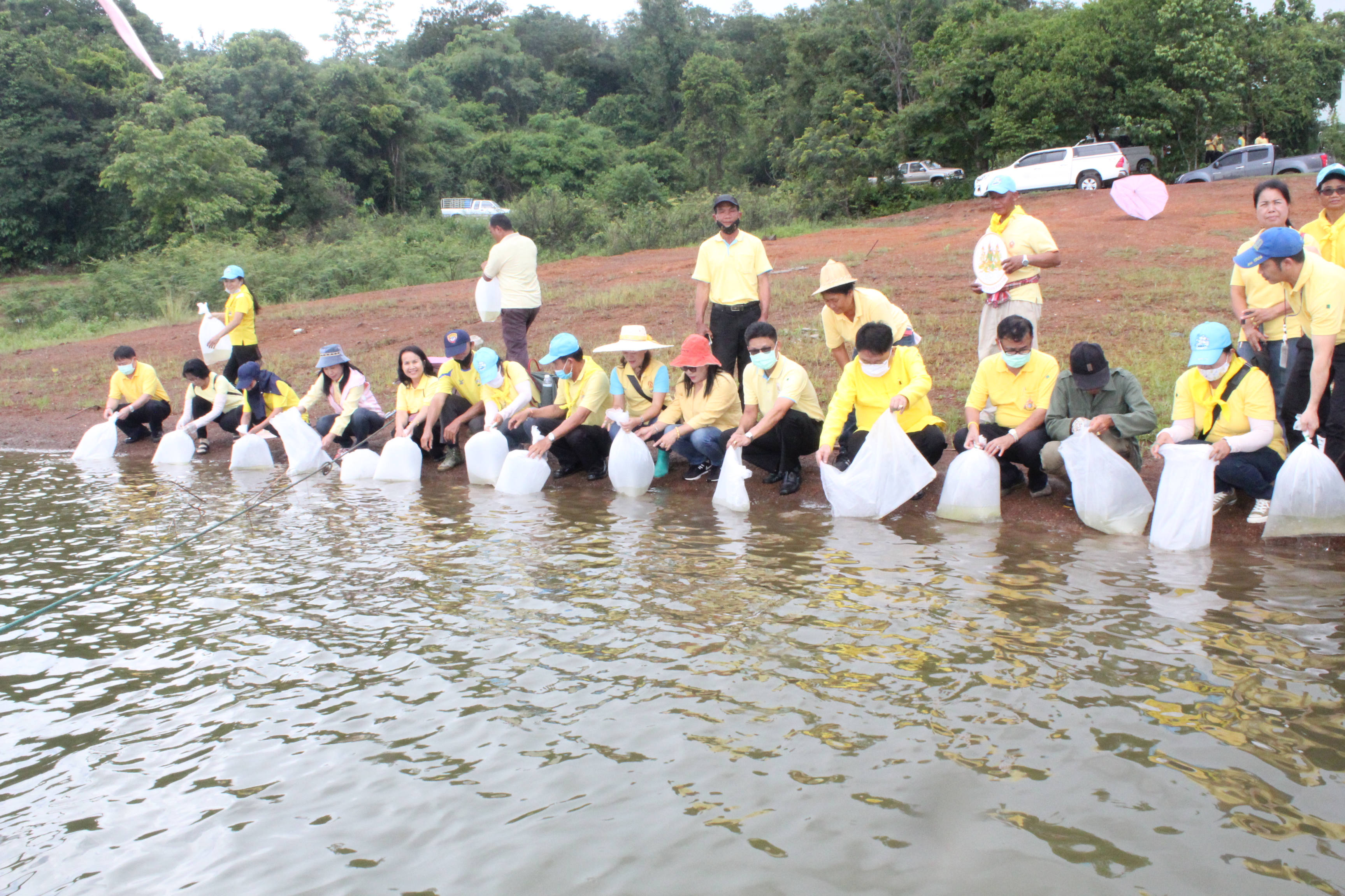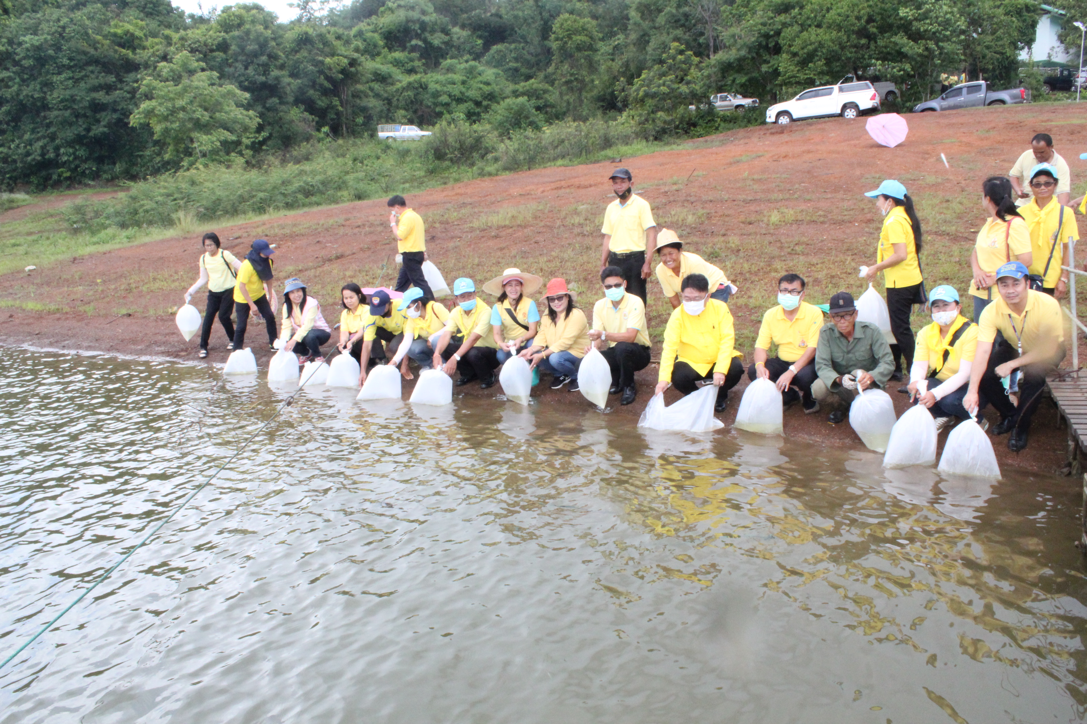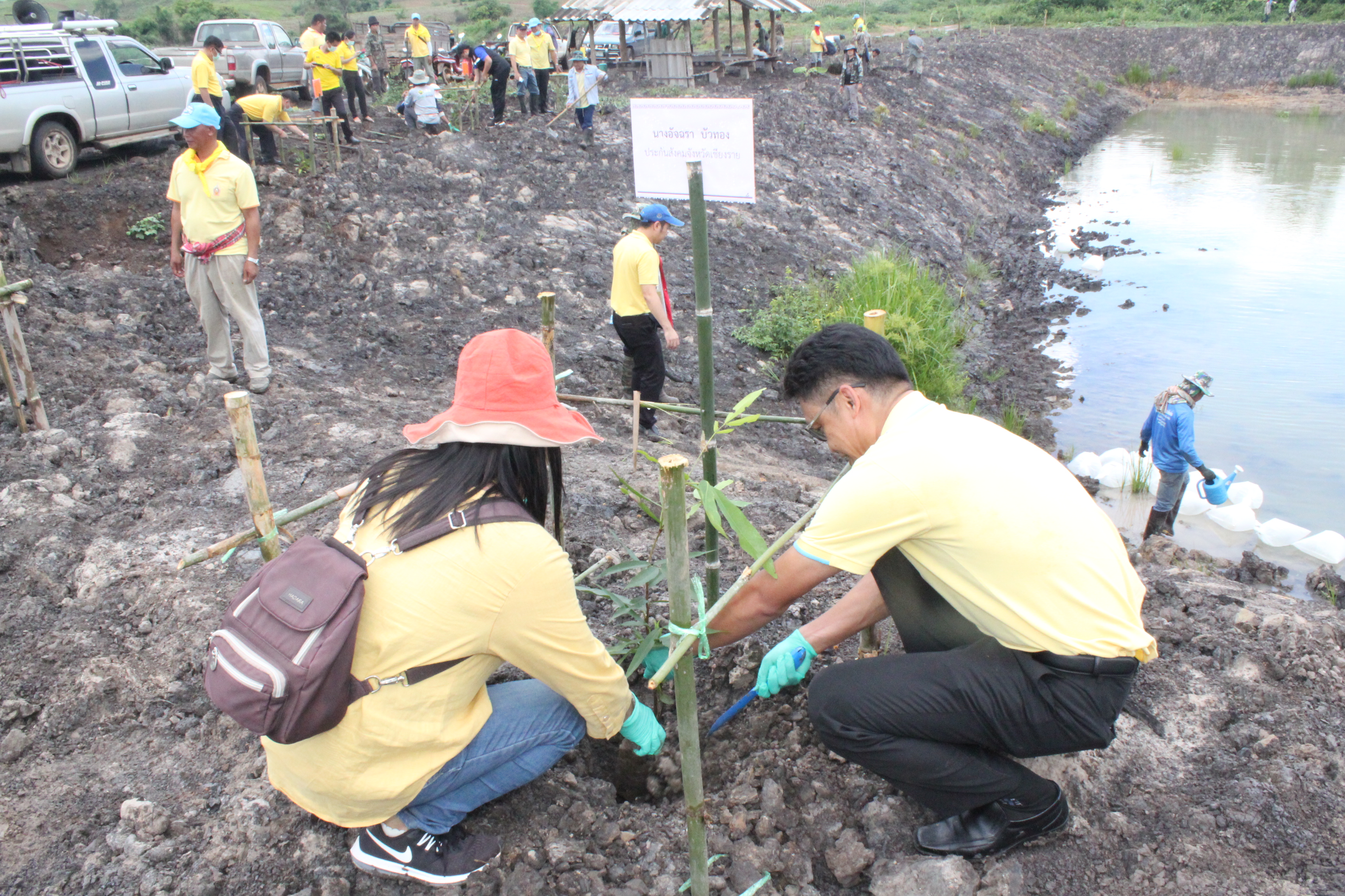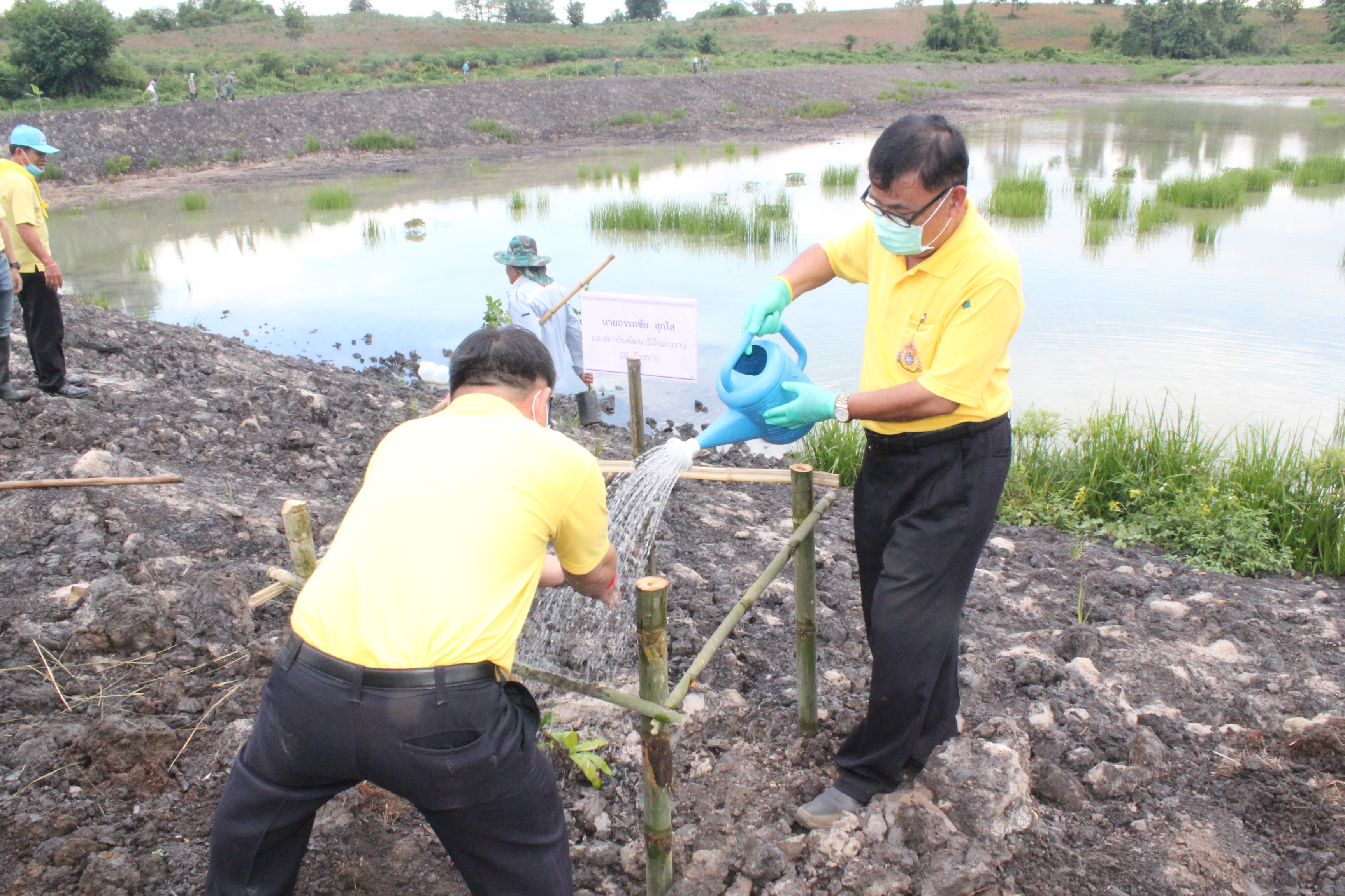 วันที่ 22 กรกฏาคม 2563 หัวหน้าส่วนราชการสังกัดกระทรวงแรงงานจังหวัดเชียงราย นำโดยนายเฉลิมพล เนียมสกุล แรงงานจังหวัดเชียงราย,นายปรีชา อินทรชาธร จัดหางานจังหวัดเชียงราย,นายอรรถชัย สุกใส ผอ.สถาบันพัฒนาฝีมือแรงงาน 20 เชียงราย,น.ส.สุขศรี ไล่กสิกรรมผอ.สถาบันพัฒนาฝีมือแรงงานนานาชาติ, ผู้แทนจากสนง.ประกันสังคมจังหวัดเชียงราย และผู้แทน จาก สนง.สวัสดิการและคุ้มครองแรงงานจังหวัดเชียงราย พร้อมด้วยข้าราชการ เจ้าหน้าที่ และอาสาสมัครแรงงานจังหวัดเชียงราย ร่วมโครงการเฉลิมพระเกียรติพระบาทสมเด็จพระปรเมนทรรามาธิบดีศรีสินทร มหาวชิราลงกรณ พระวชิรเกล้าเจ้าอยู่หัว โดยอาสา สมัครแรงงานพัฒนาบ้านเกิด ประจำปีงบประมาณ พ.ศ.2563 ในกิจกรรมโครงการครั้งนี้มีกิจกรรม ปล่อยพันธุ์ปลาลงสู่แหล่งน้ำ อ่างเก็บน้ำแม่ต๊ากและหนองปึ๋งไหว หมู่ที่ 17 และหมู่ที่ 9 ตำบลดอนศิลา อำเภอเวียงชัย จังหวัดเชียงราย จำนวน 20,000 ตัว และ ร่วมกัน ปลูกต้นไม้เพื่อเฉลิมพระเกียรติฯ ณ บริเวณรอบหนองน้ำหนองปึ๋งไหวจำนวนกว่า 300 ต้นมีทั้งต้นไม้ยืนต้นอาทิเช่น ต้นยางนา ต้นอินทนิล,ตันกาสะลอง,ต้นราชพฤกษ์ และไม้กินผล อาทิเช่น มะม่วง,ลำใย,แอปเปิ้ลสตาร์,กล้วย,ส้มสายน้ำผึ้ง เพื่อเป็นแหล่งอาหาร ให้กับชุมชนฯ โดยได้รับการสนับสนุนกล้าพันธุ์ไม้และพันธุ์ปลา จากสถานีเพาะชำกล้าไม้จังหวัดเชียงราย, ศูนย์วิจัยและพัฒนาการ เพาะเลี้ยงสัตว์น้ำจืด เขต 2 (เชียงราย)และศูนย์วิจัยพืชสวนเชียงราย