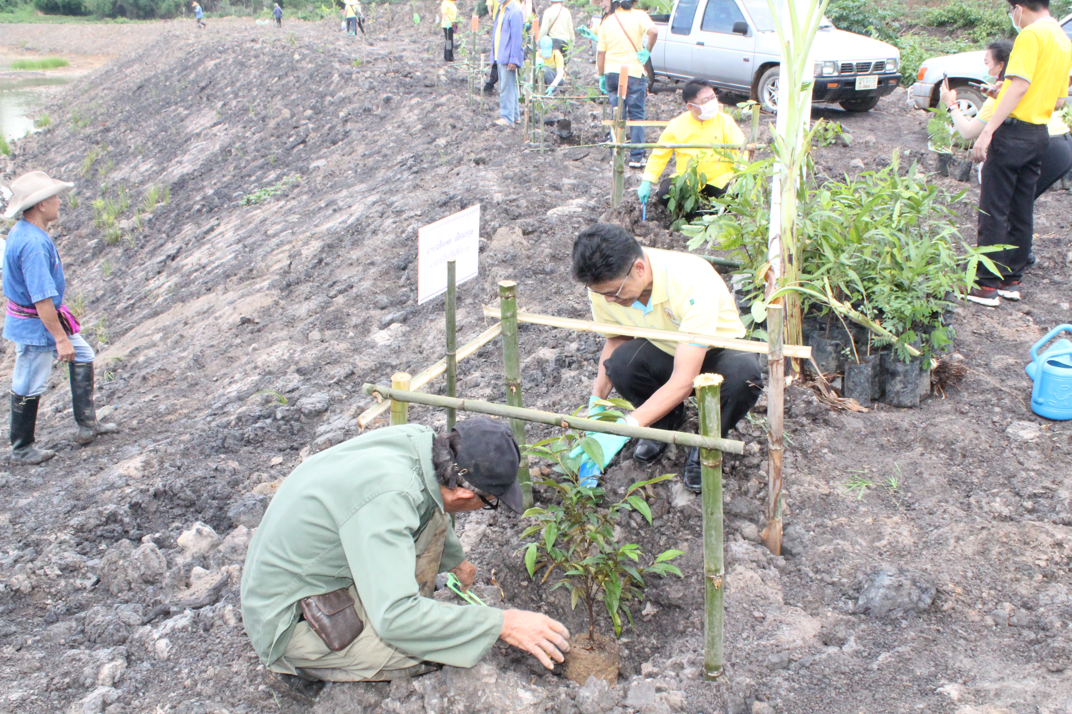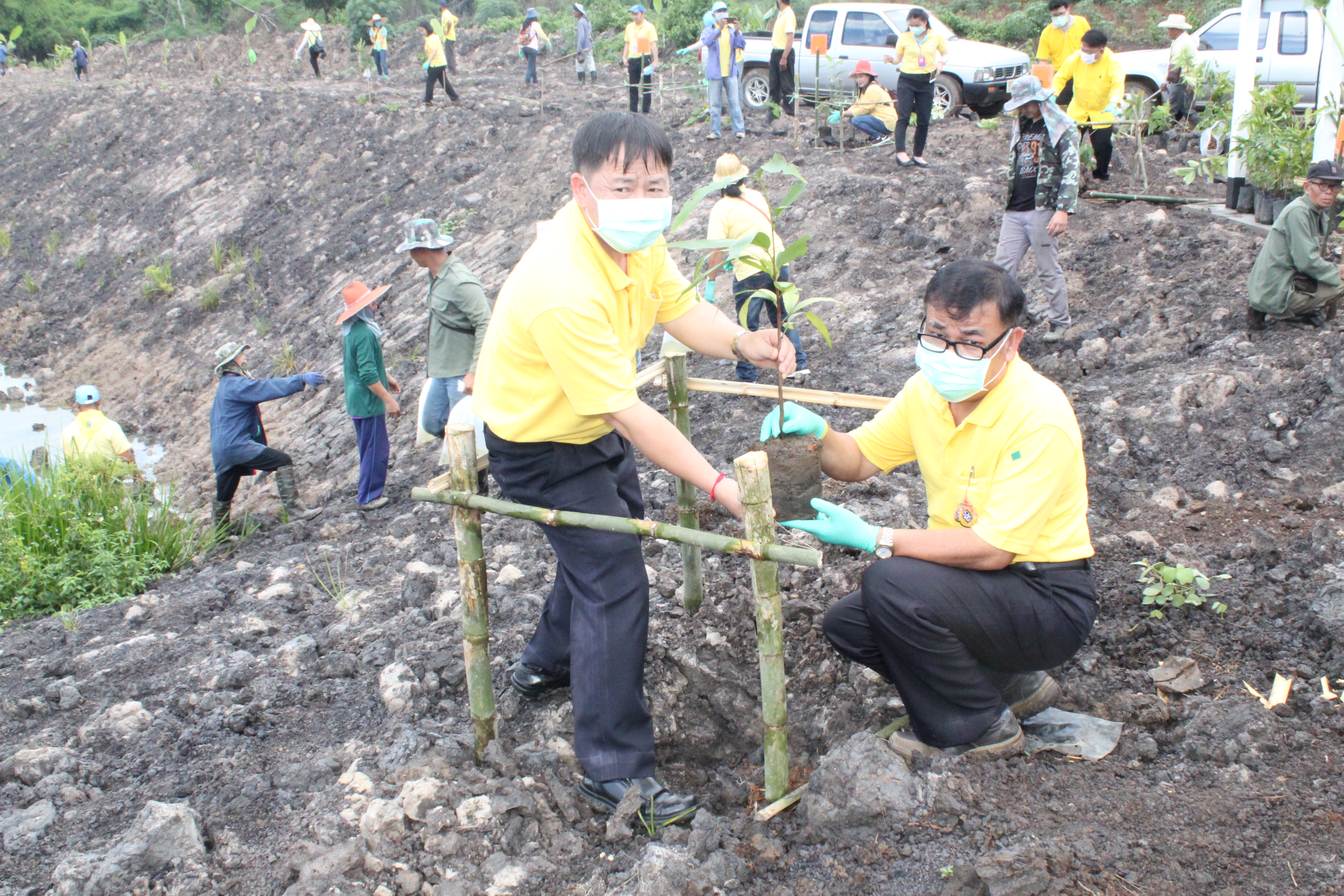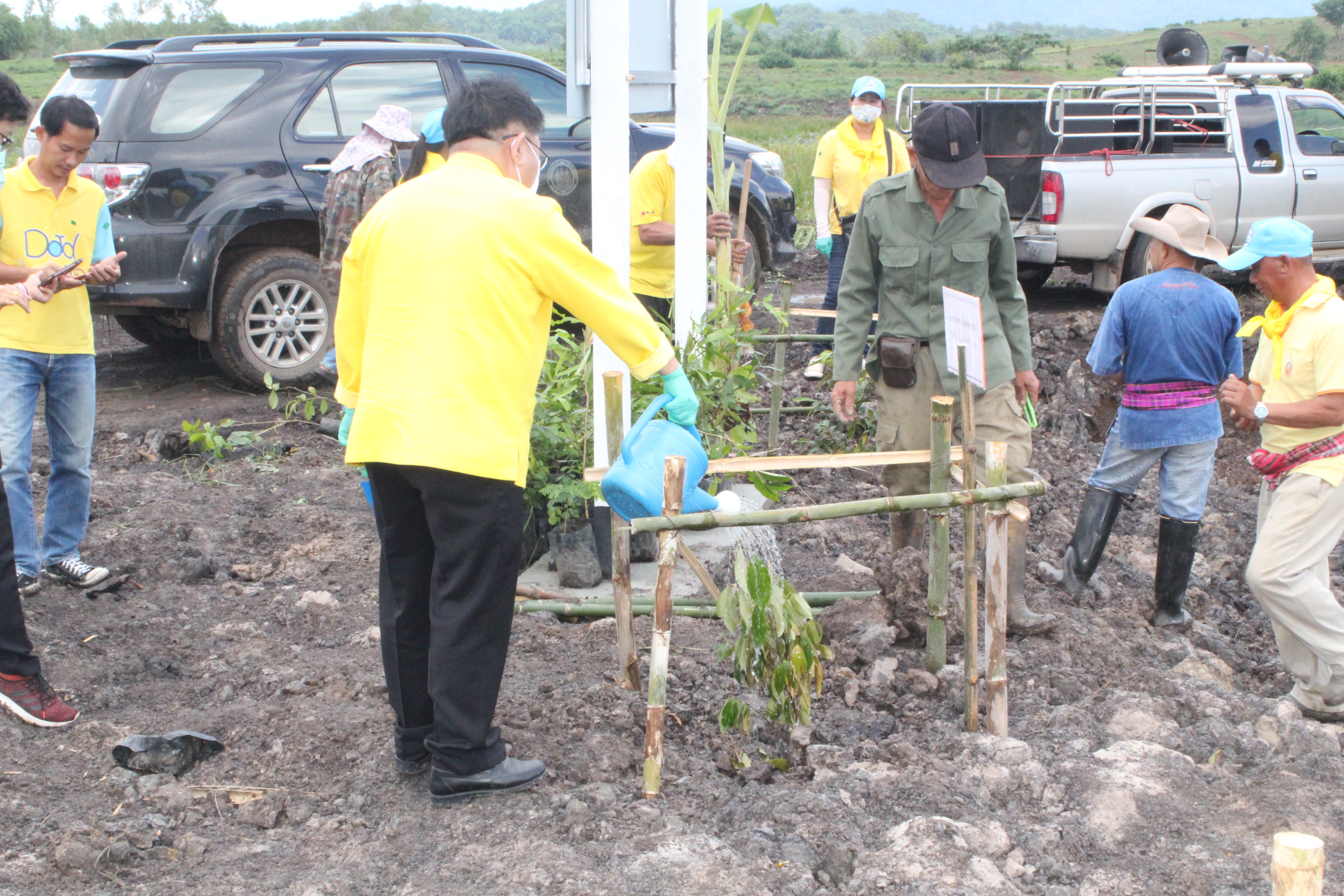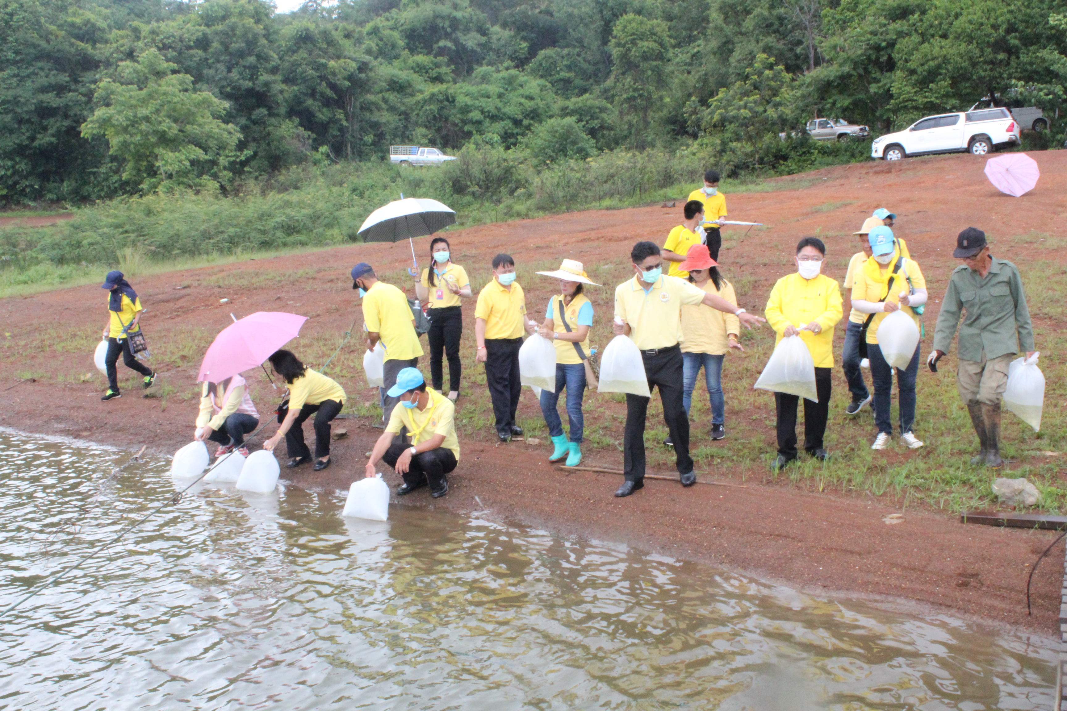 วันที่ 22 กรกฏาคม 2563 หัวหน้าส่วนราชการสังกัดกระทรวงแรงงานจังหวัดเชียงราย นำโดยนายเฉลิมพล เนียมสกุล แรงงานจังหวัดเชียงราย,นายปรีชา อินทรชาธร จัดหางานจังหวัดเชียงราย,นายอรรถชัย สุกใส ผอ.สถาบันพัฒนาฝีมือแรงงาน 20 เชียงราย,น.ส.สุขศรี ไล่กสิกรรมผอ.สถาบันพัฒนาฝีมือแรงงานนานาชาติ, ผู้แทนจากสนง.ประกันสังคมจังหวัดเชียงราย และผู้แทน จาก สนง.สวัสดิการและคุ้มครองแรงงานจังหวัดเชียงราย พร้อมด้วยข้าราชการ เจ้าหน้าที่ และอาสาสมัครแรงงานจังหวัดเชียงราย ร่วมโครงการเฉลิมพระเกียรติพระบาทสมเด็จพระปรเมนทรรามาธิบดีศรีสินทร มหาวชิราลงกรณ พระวชิรเกล้าเจ้าอยู่หัว โดยอาสา สมัครแรงงานพัฒนาบ้านเกิด ประจำปีงบประมาณ พ.ศ.2563 ในกิจกรรมโครงการครั้งนี้มีกิจกรรม ปล่อยพันธุ์ปลาลงสู่แหล่งน้ำ อ่างเก็บน้ำแม่ต๊ากและหนองปึ๋งไหว หมู่ที่ 17 และหมู่ที่ 9 ตำบลดอนศิลา อำเภอเวียงชัย จังหวัดเชียงราย จำนวน 20,000 ตัว และ ร่วมกัน ปลูกต้นไม้เพื่อเฉลิมพระเกียรติฯ ณ บริเวณรอบหนองน้ำหนองปึ๋งไหวจำนวนกว่า 300 ต้นมีทั้งต้นไม้ยืนต้นอาทิเช่น ต้นยางนา ต้นอินทนิล,ตันกาสะลอง,ต้นราชพฤกษ์ และไม้กินผล อาทิเช่น มะม่วง,ลำใย,แอปเปิ้ลสตาร์,กล้วย,ส้มสายน้ำผึ้ง เพื่อเป็นแหล่งอาหาร ให้กับชุมชนฯ โดยได้รับการสนับสนุนกล้าพันธุ์ไม้และพันธุ์ปลา จากสถานีเพาะชำกล้าไม้จังหวัดเชียงราย, ศูนย์วิจัยและพัฒนาการ เพาะเลี้ยงสัตว์น้ำจืด เขต 2 (เชียงราย)และศูนย์วิจัยพืชสวนเชียงราย