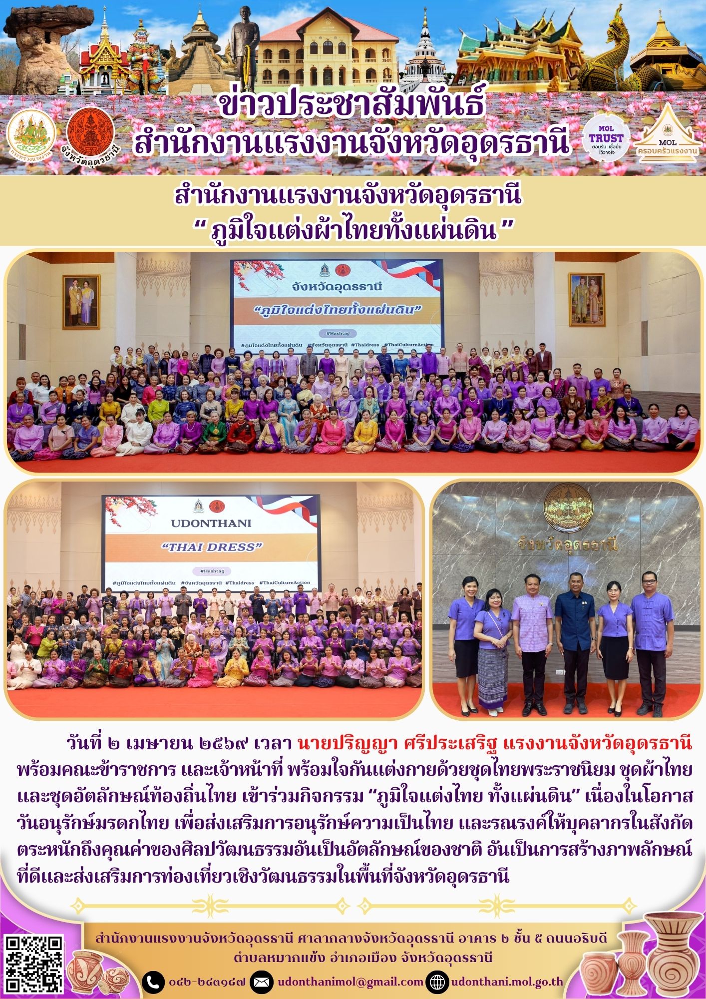 สำนักงานแรงงานจังหวัดอุดรธานี “ ภูมิใจแต่งผ้าไทยทั้งแผ่นดิน ”