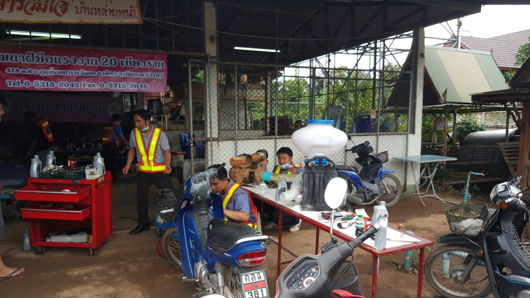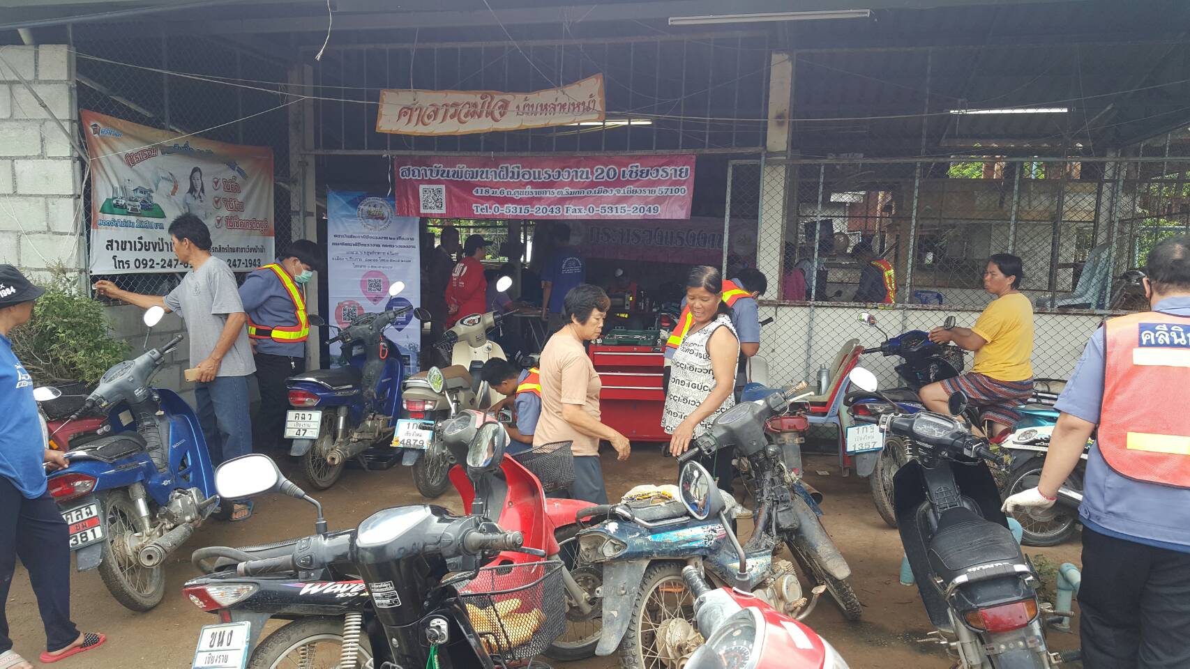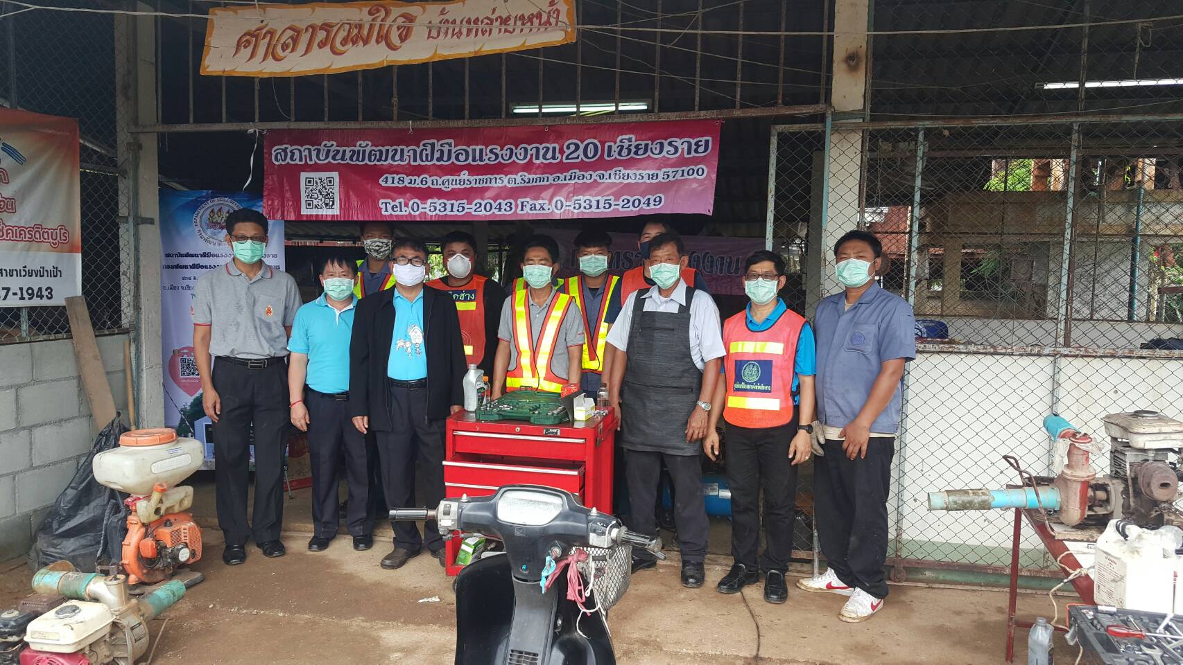 วันที่ 6 สิงหาคม 2563 นายเฉลิมพล เนียมสกุลแรงงานจังหวัดเชียงราย และนายอรรถชัย สุกใส ผู้อำนวนการสถาบัน พัฒนาฝีมือแรงงาน 20 เชียงราย นำคณะเจ้าหน้าที่และผู้เข้ารับการฝึก ฯ ออกหน่วยบริการซ่อมเครื่องใช้ไฟฟ้า และเครื่องยนต์ ทางการเกษตร,รถจักยานยนต์แก่ประชาชนผู้ที่ได้รับผลกระทบจากเหตุการณ์น้ำท่วมในพื้นที่ อำเภอเวียงป่าเป้า จังหวัดเชียงราย ณ บ้านดงหล่ายหน้า ตำบลเวียง อำเภอเวียงป่าเป้า จังหวัดเชียงราย โดยมีประชาชนผู้ที่ได้รับผลกระทบ จากเหตุการณ์ ฯ มาขอ รับบริการ จำนวน 59 คน รวมทั้งหมด 96 รายการ