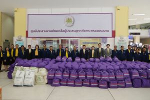 ด้าน นายบุญสงค์ ทัพชัยยุทธ์ ปลัดกระทรวงแรงงาน กล่าวว่า “กระทรวงแรงงานขอขอบคุณภาคีเครือข่ายทุกหน่วยงาน รวมถึงเอกชนที่ร่วมบริจาคสิ่งของเครื่องใช้ โดยสามารถส่งผ่านกระทรวงแรงงานได้ และหากพี่น้องในพื้นที่ที่ประสบภัยต้องการความช่วยเหลือ สามารถแจ้งผ่านอาสาสมัครแรงงาน บัณฑิตแรงงาน หรือสายด่วน 1506 กระทรวงแรงงานจะเร่งประสานเจ้าหน้าที่เข้าดำเนินการทันที”