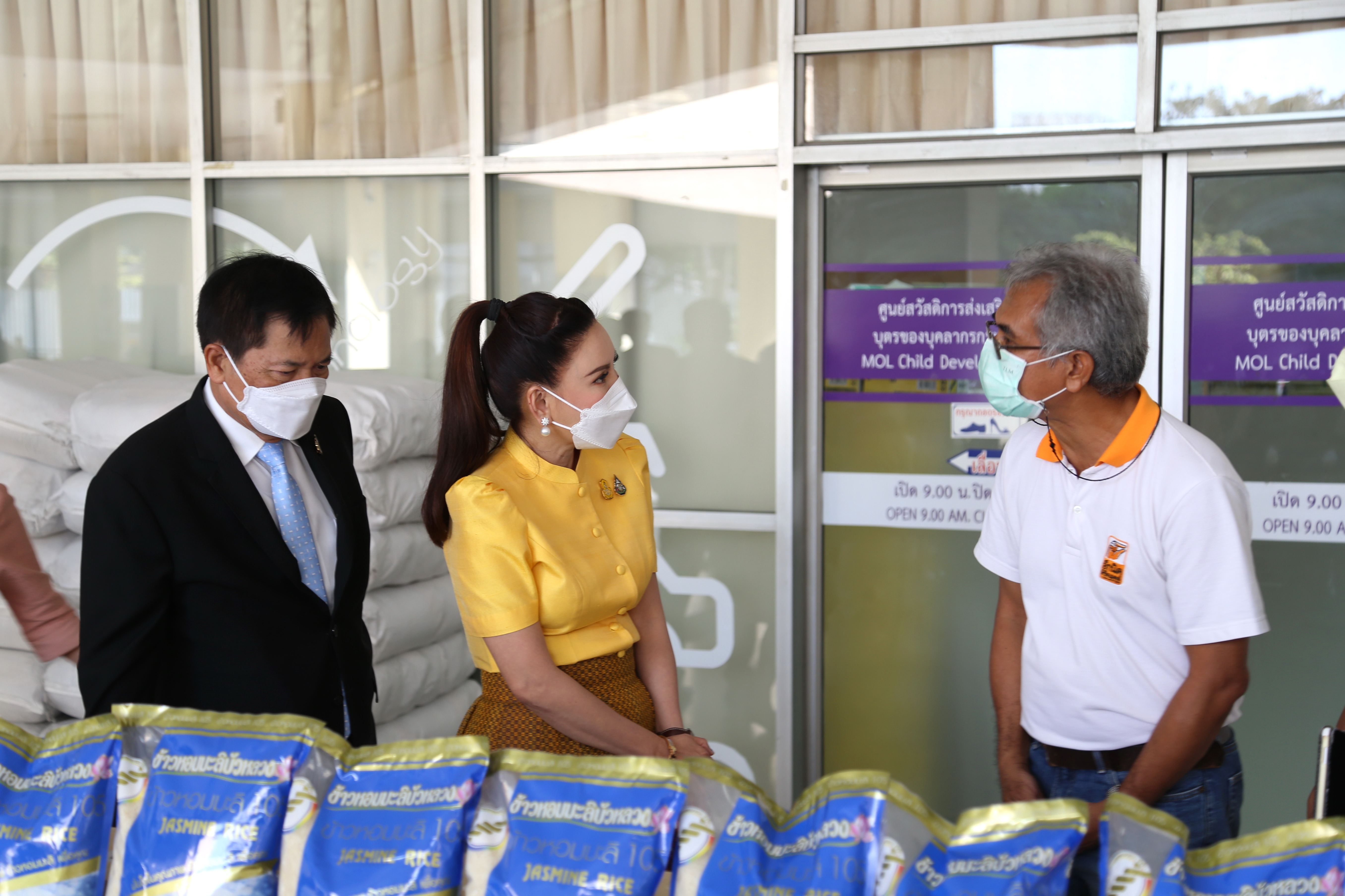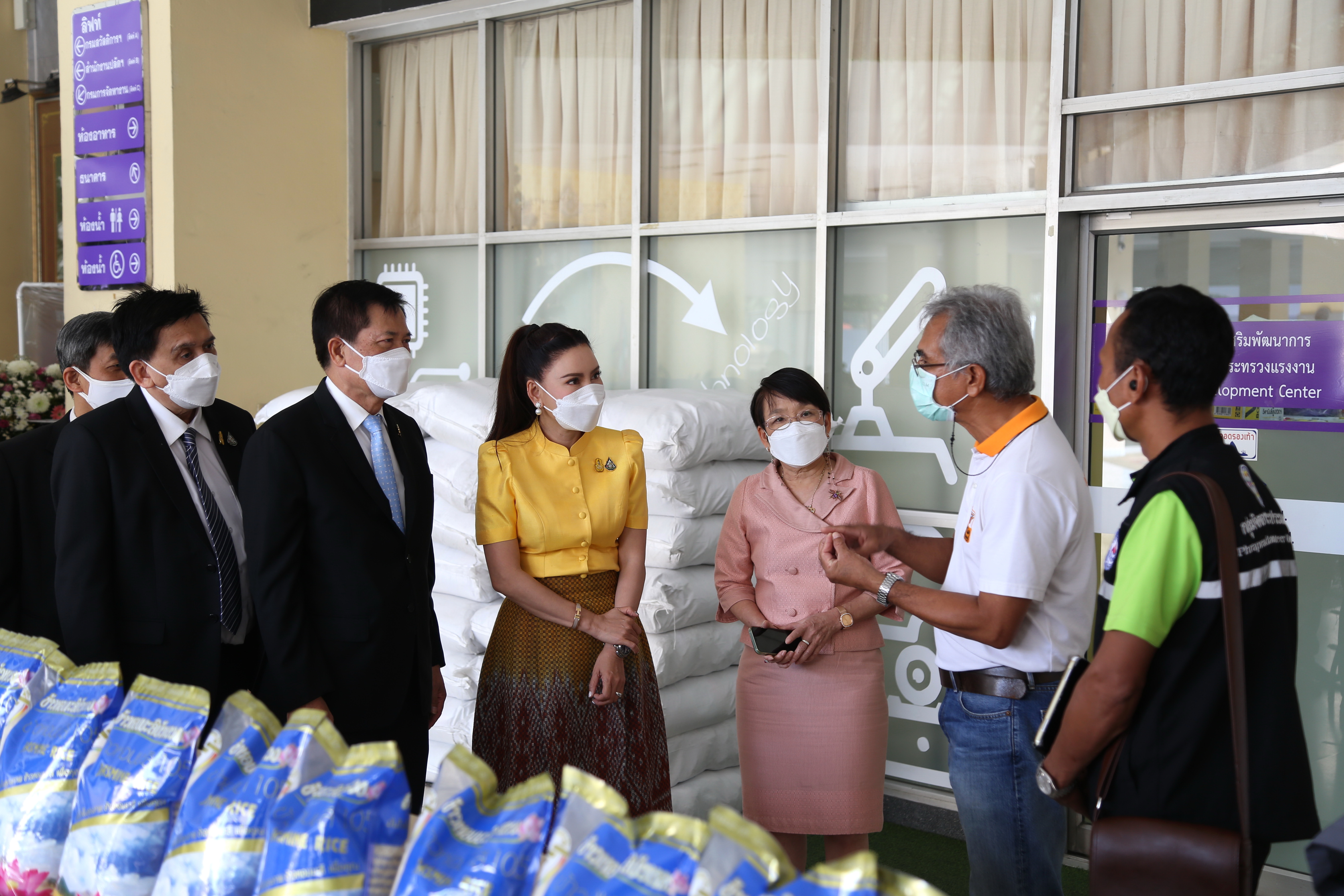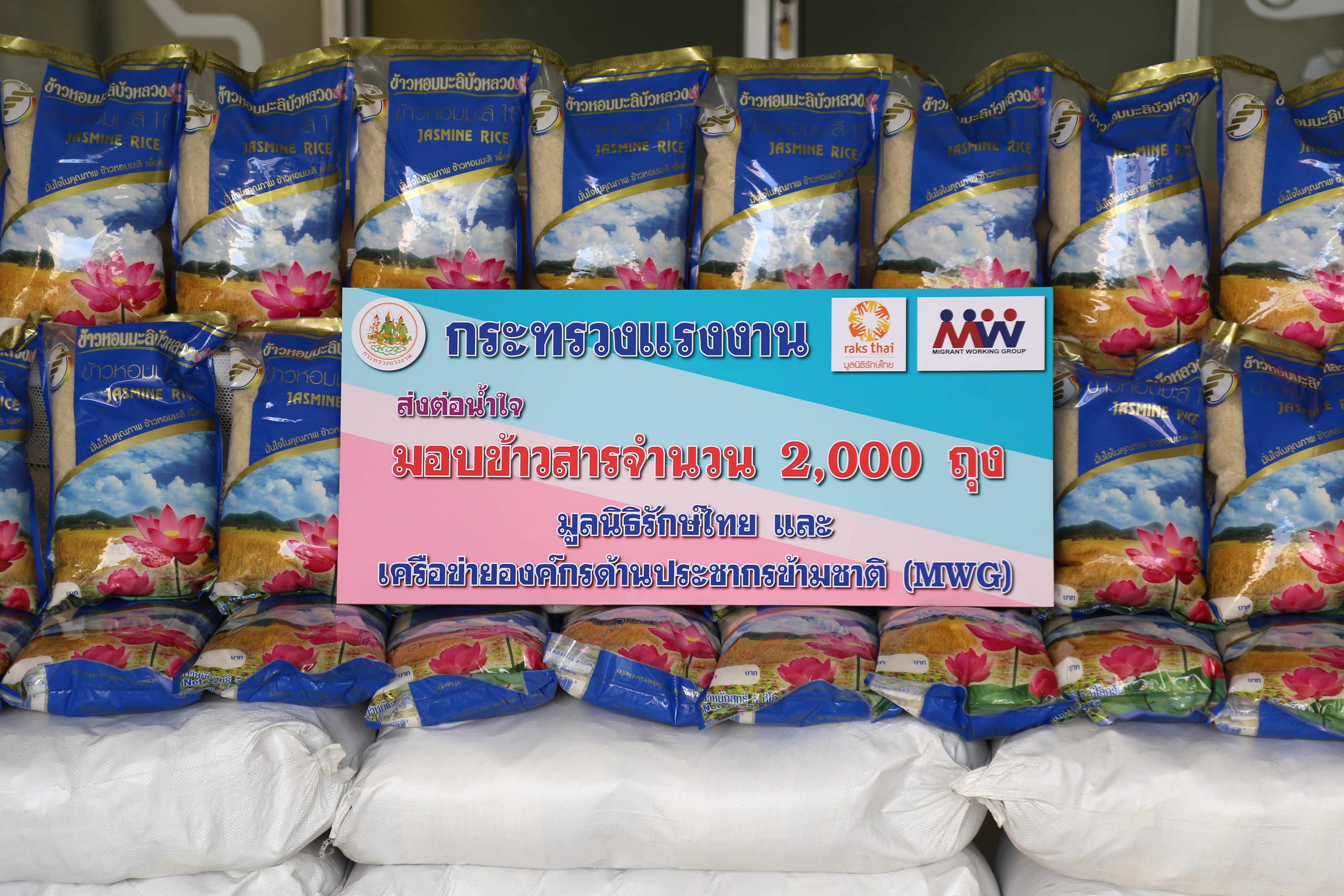 วันที่ 17 ธันวาคม 2564 เวลา 13.00 น. นางธิวัลรัตน์ อังกินันทน์ ที่ปรึกษารัฐมนตรีว่าการกระทรวงแรงงาน นายสุเทพ ชิตยวงษ์ เลขานุการรัฐมนตรีว่าการกระทรวงแรงงาน นางเธียรรัตน์ นะวะมะวัฒน์ โฆษกกระทรวงแรงงาน (ฝ่ายการเมือง) มอบข้าวสาร จำนวน 2,000 ถุง กระทรวงแรงงานส่งต่อน้ำใจ ให้กับมูลนิธิรักษ์ไทย และเครือข่ายองค์กรด้านประชากรข้ามชาติ (MWG) โดยมี นายไพโรจน์ โชติกเสถียร อธิบดีกรมการจัดหางาน นายเฉลิมพงษ์ บุญรอด ผู้ตรวจราชการกรม กรมพัฒนาฝีมือแรงงาน นายสมชาย เอื้อจารุพร ผู้ตรวจราชการกรม กรมสวัสดิการและคุ้มครองแรงงาน ร่วมมอบข้าวสาร ณ บริเวณชั้น 1 อาคารกระทรวงแรงงาน