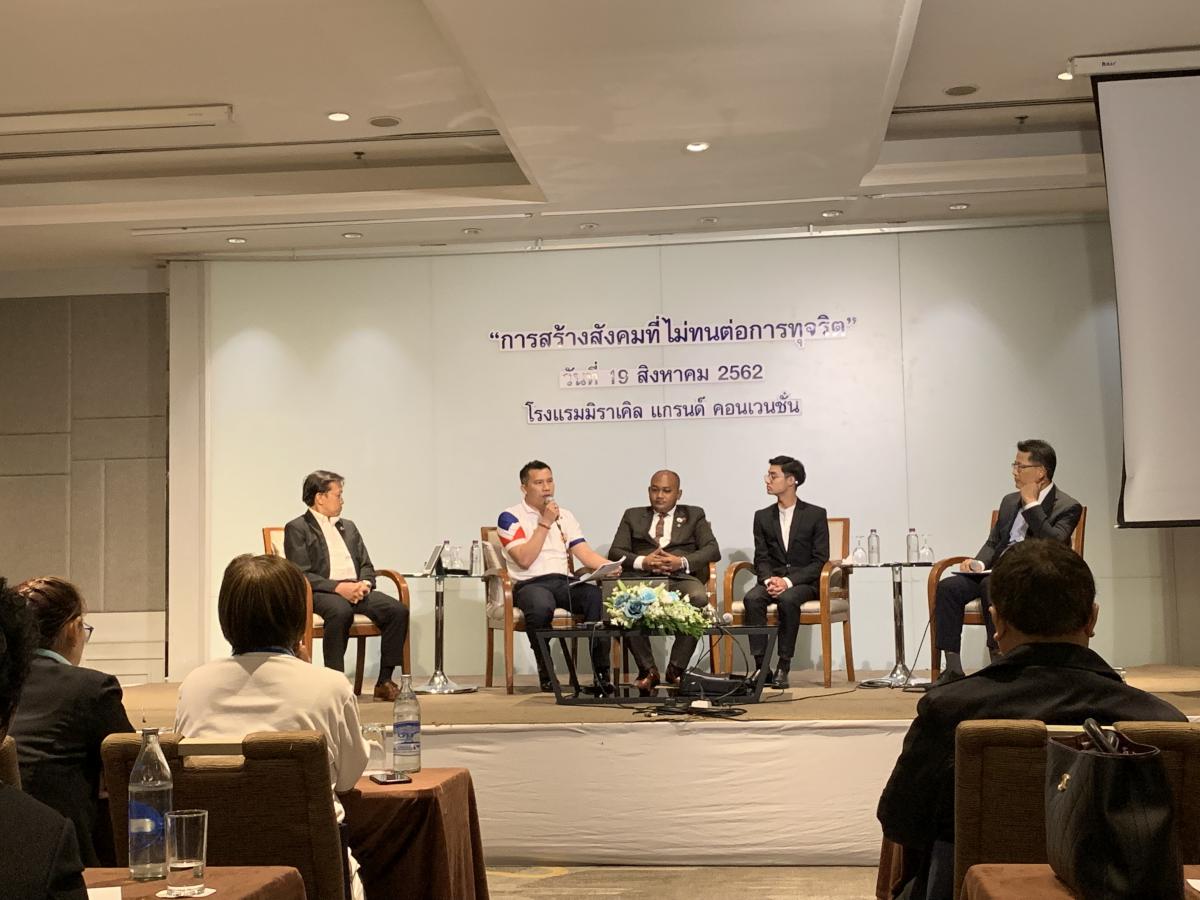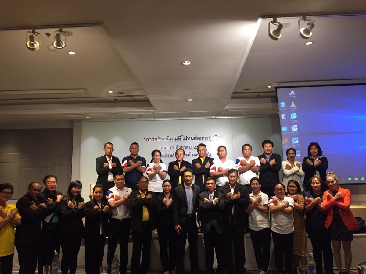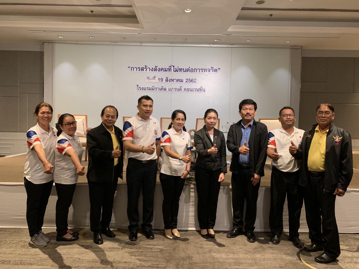 นายประทีป ทรงลำยอง รองอธิบดีกรมพัฒนาฝีมือแรงงาน นายนิยม สองแก้ว ผู้ช่วยปลัดกระทรวงแรงงาน เจ้าหน้าที่ศูนย์ปฏิบัติการต่อต้านการทุจริต และ อาสาสมัครแรงงาน/ เครือข่ายภาคประชาชน เข้าร่วมงานสัมมนาแลกเปลี่ยนเรียนรู้ระดับชาติภายใต้หัวข้อ “การผลักดันยุทธศาสตร์ชาติว่าด้วยการป้องกันและปราบปรามการทุจริต สู่ประเทศไทยใสสะอาด ไทยทั้งชาติต้านทุจริต” ปี 2562 ในวันที่ 19 สิงหาคม 2562 เวลา 08.00 – 16.00 น. ณ โรงแรมมิราเคิล แกรนด์คอนเวนชั่น ถนนกำแพงเพชร 6 เขตหลักสี่ กรุงเทพมหานคร