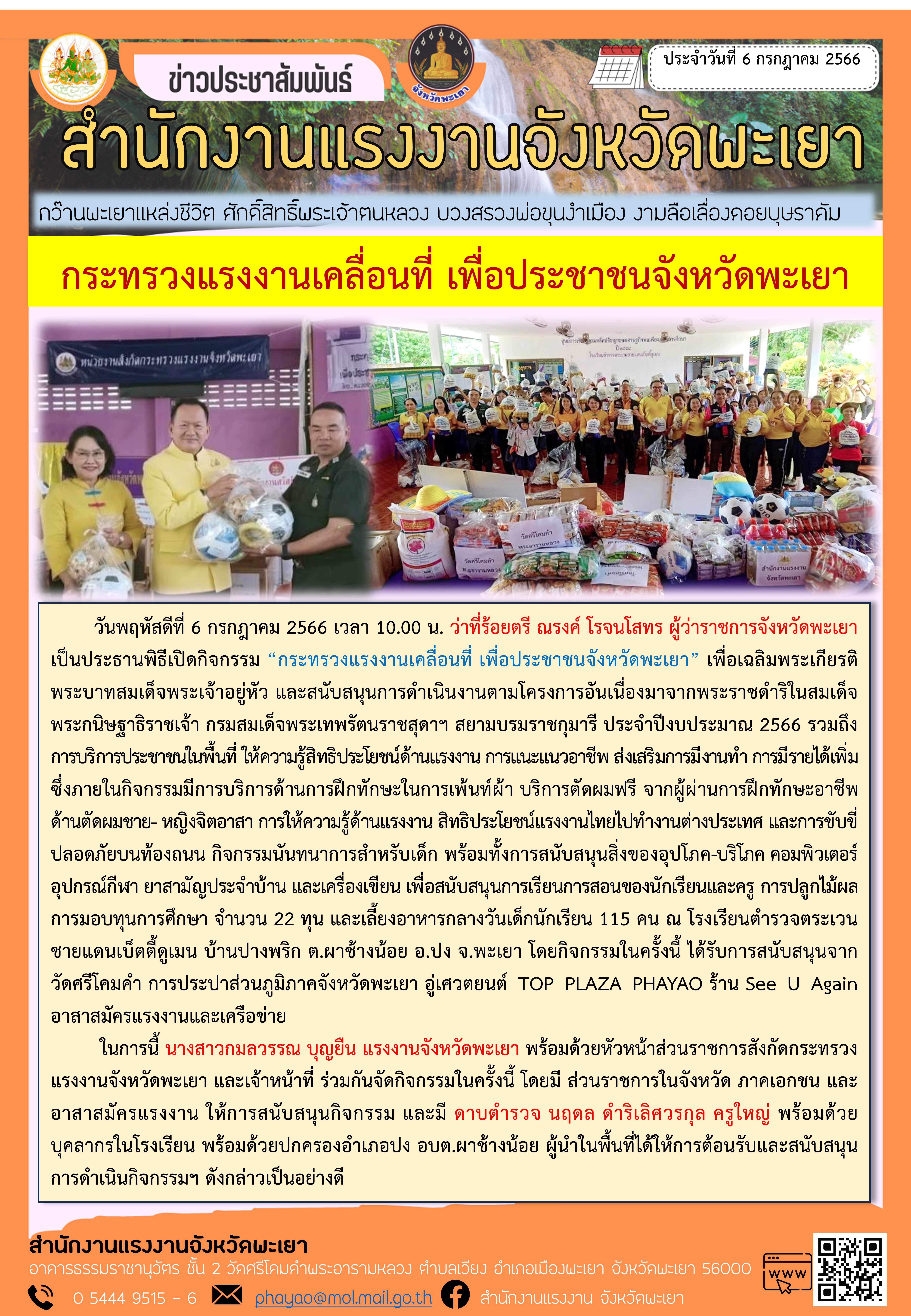 สรจ.พะเยา กระทรวงแรงงานเคลื่อนที่ เพื่อประชาชนจังหวัดพะเยา