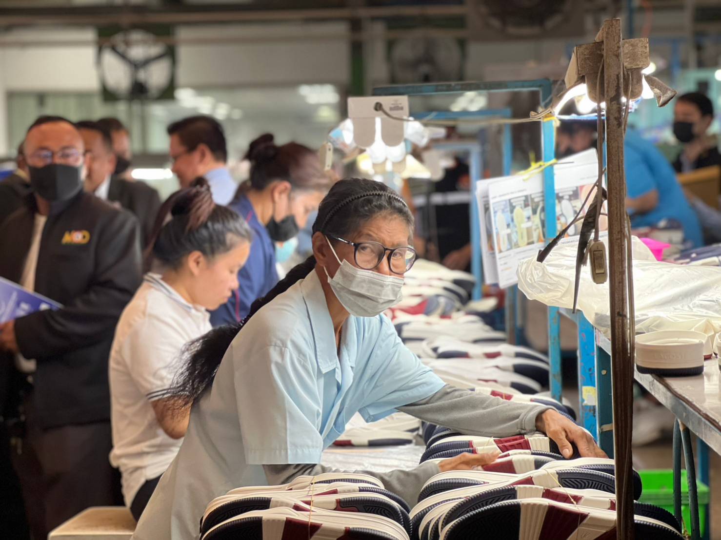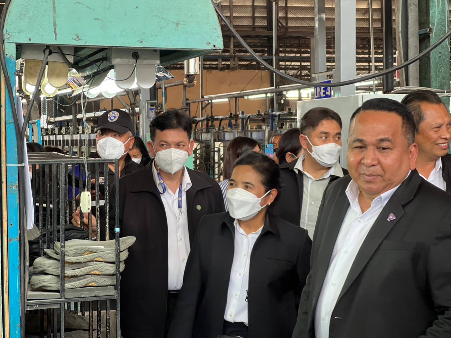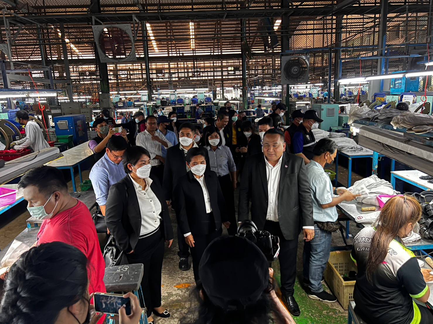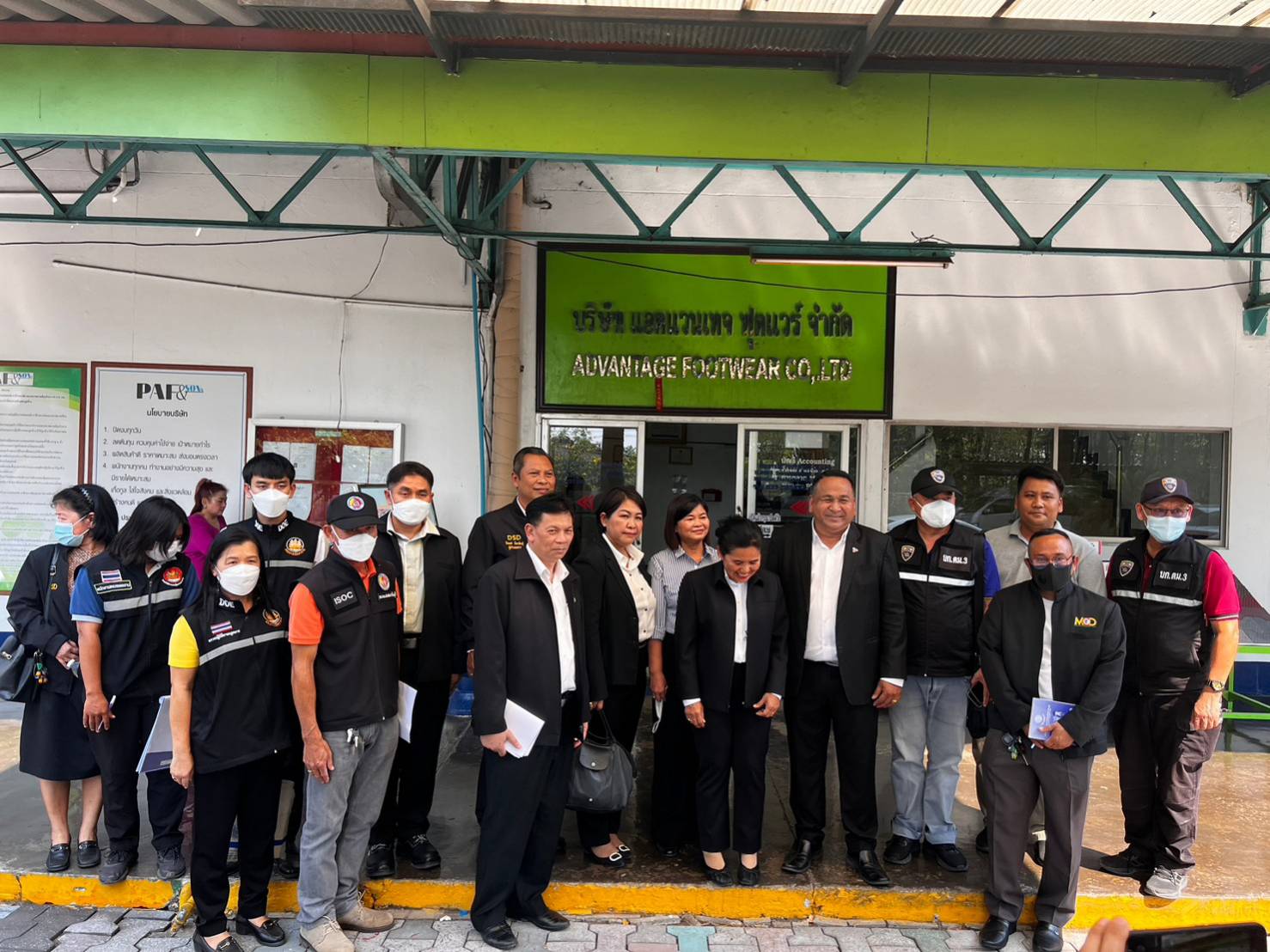 The meeting to monitor the performance of government agencies under the Ministry of Labour in Prachinburi Province took place at the Emerald Pool Meeting Room, 4th floor, Prachin Buri City Hall. It urged collaboration with relevant agencies and business establishments on the protection of the rights of foreign workers to ensure equal treatment under the Thai labour laws, such as the minimum wage rate, medical treatment, and receiving welfare from the establishment fairly. The goal is to prevent the worst forms of human trafficking, which may pull Thailand’s human trafficking ranking lower. The Ministry of Labour’s Inspector-General went to the area together with the heads of government agencies under the Ministry of Labour in Prachin Buri Province to visit places of business hiring foreign workers, along with observing the joined inspection under the plan to prevent and resolve human trafficking in Prachin Buri, by agencies in Prachin Buri Province. The agencies included the Prachin Buri ISOC, the Prachin Buri Social Development, and Human Security, the Provincial Employment Office, the Provincial Labour Office, the Provincial Labour Protection and Welfare Office, the Immigration Office, the Provincial Administrative Office, and the Provincial Public Health Office. The occasion took place at Advantage Footwear Co., Ltd. The company produces footwear parts and employs 617 employees, 375 Thai and 242 Cambodian. The company is located at No. 51 Moo 5, Suwannasorn Road, Nonsi Subdistrict, Kabinburi District, Prachin Buri Province. The Human Resources Manager, Mr. Chetarat Chanakham, gave a welcome and briefing. He emphasized the protection and welfare of migrant workers to be treated equally with Thai workers. Prachin Buri Province has 28,704 foreign workers of the three nationalities permitted under The Royal Decree on the Management of Foreigners’ Work. There are 19,093 Cambodians, 3,222 Laotians, and 6,389 Myanmar nationals.