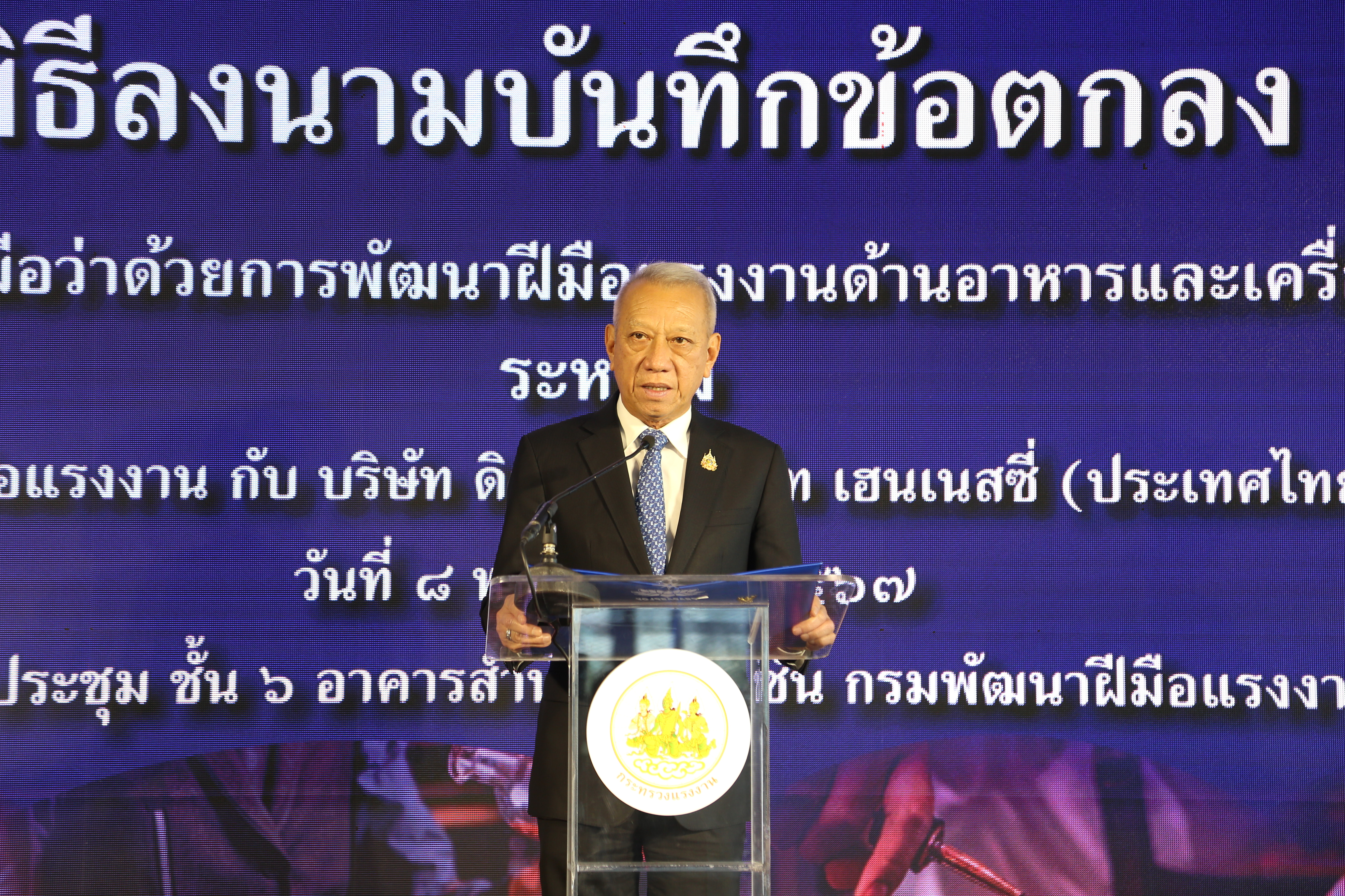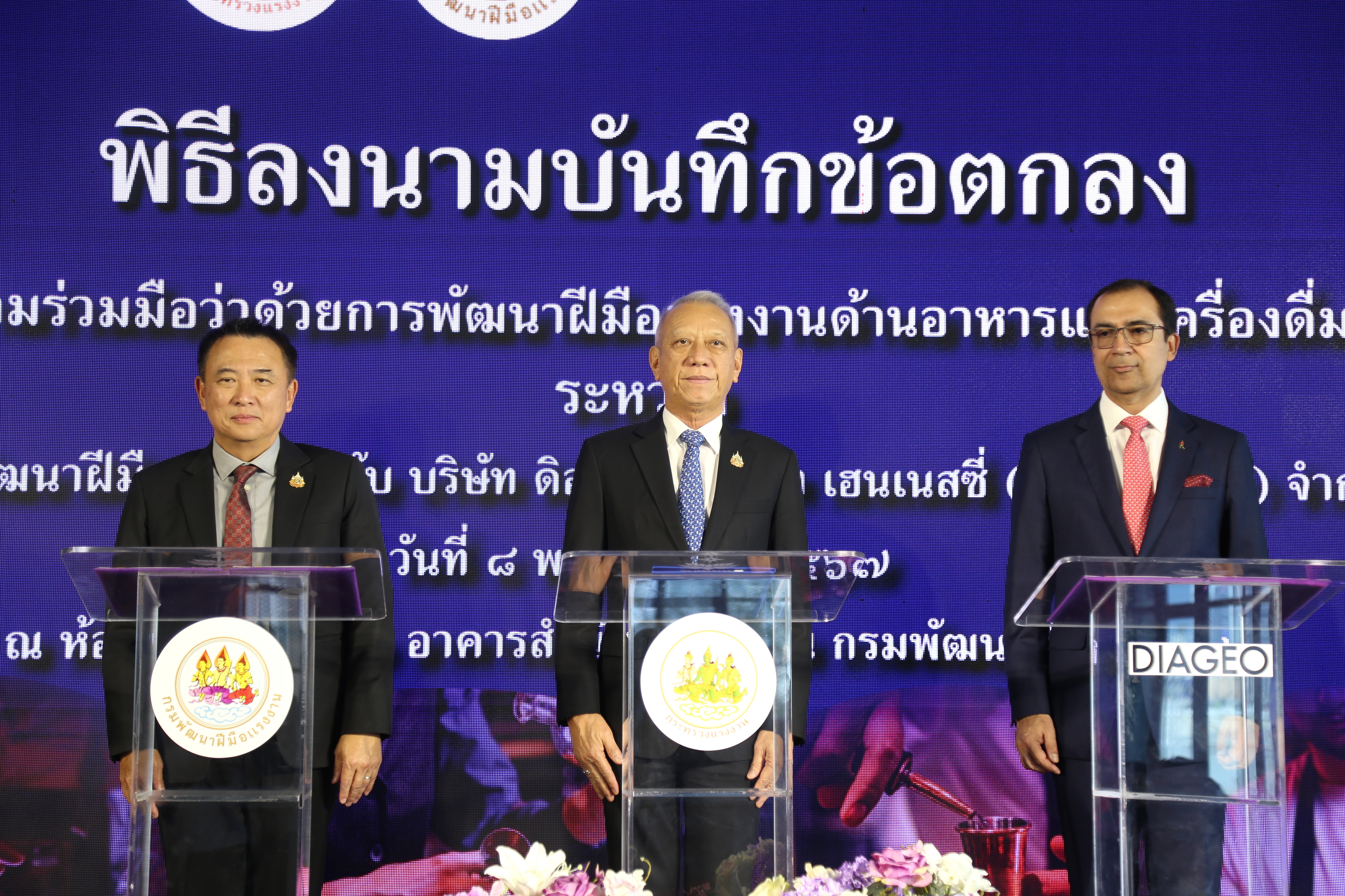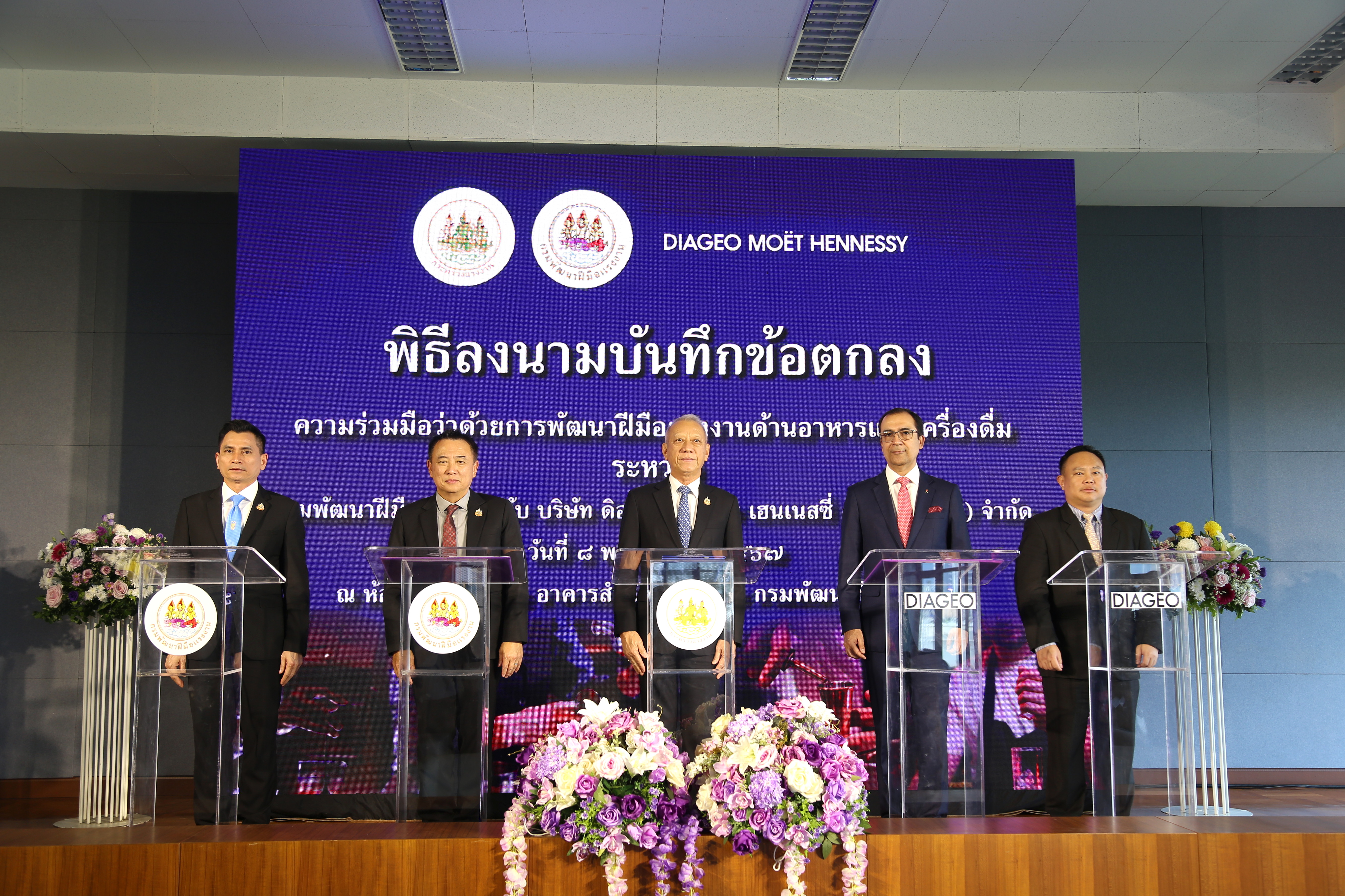 วันที่ 8 พฤศจิกายน 2567 นายพิพัฒน์ รัชกิจประการ รัฐมนตรีว่าการกระทรวงแรงงาน เป็นประธานในพิธีลงนามบันทึกข้อตกลงความร่วมมือว่าด้วยการพัฒนาฝีมือแรงงานด้านอาหารและเครื่องดื่ม ระหว่างกรมพัฒนาฝีมือแรงงาน กับ บริษัท ดิอาจิโอ โมเอ็ท เฮนเนสซี่ (ประเทศไทย) จำกัด โดยมีนายเดชา พฤกษ์พัฒนรักษ์ รองปลัดกระทรวงแรงงาน รักษาราชการแทนอธิบดีกรมพัฒนาฝีมือแรงงาน และ มร.ภูนีต นารัง กรรมการผู้จัดการ บริษัท ดิอาจิโอ โมเอ็ท เฮนเนสซี่ (ประเทศไทย) จำกัด ร่วมลงนาม นายสมาสภ์ ปัทมะสุคนธ์ ผู้ตรวจราชการกระทรวงแรงงาน รักษาราชการแทน รองปลัดกระทรวงแรงงาน เรือเอก สาโรจน์ คมคาย รองปลัดกระทรวงแรงงาน รักษาราชการแทน อธิบดีกรมสวัสดิการและคุ้มครองแรงงาน ร่วมเป็นเกียรติในพิธีลงนาม ณ ห้องประชุม ชั้น 6 อาคารสำนักงานสูง 6 ชั้น กรมพัฒนาฝีมือแรงงาน