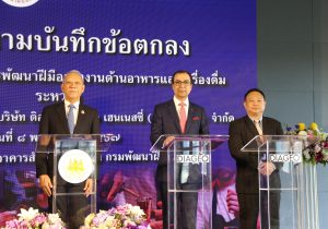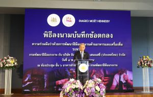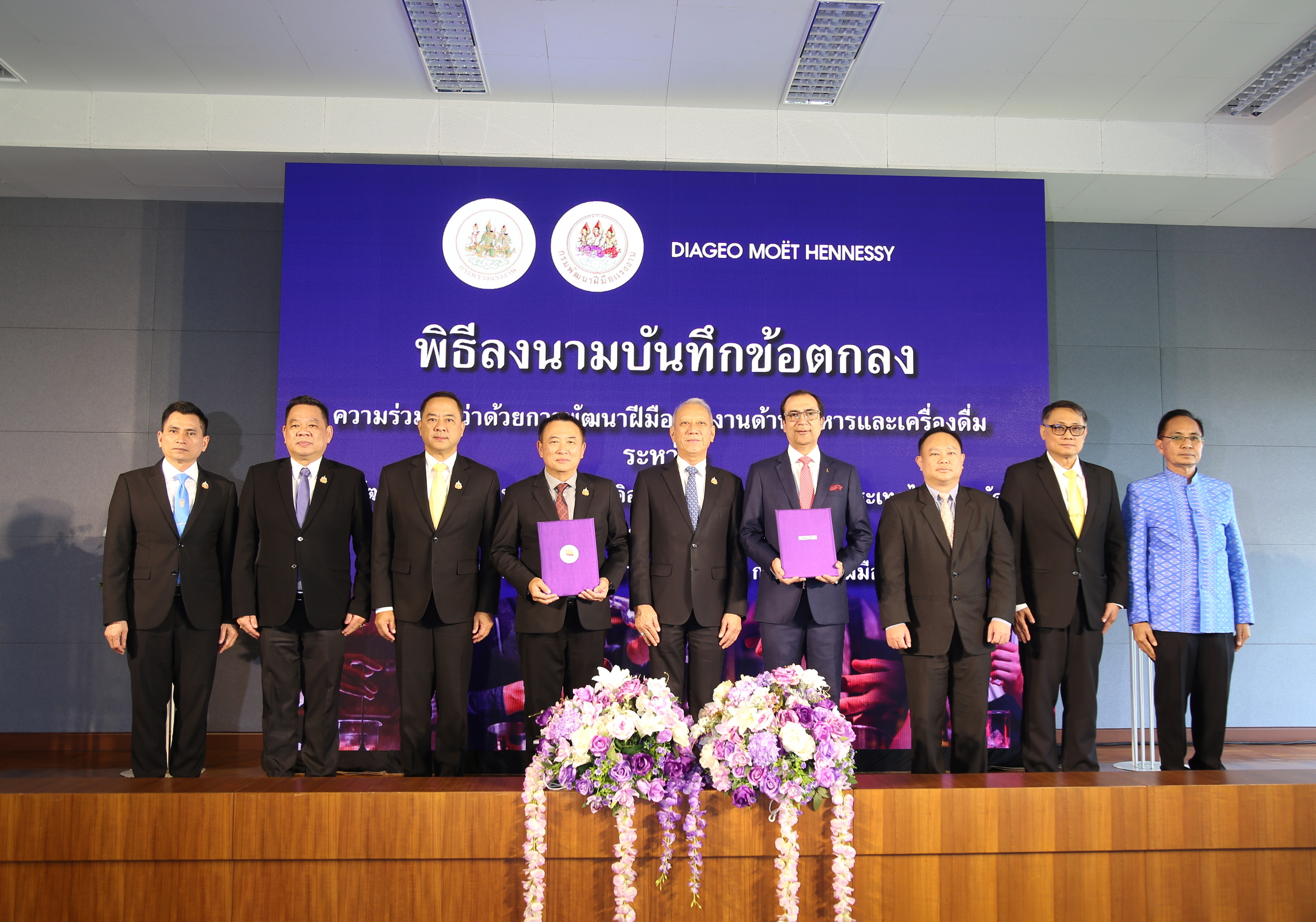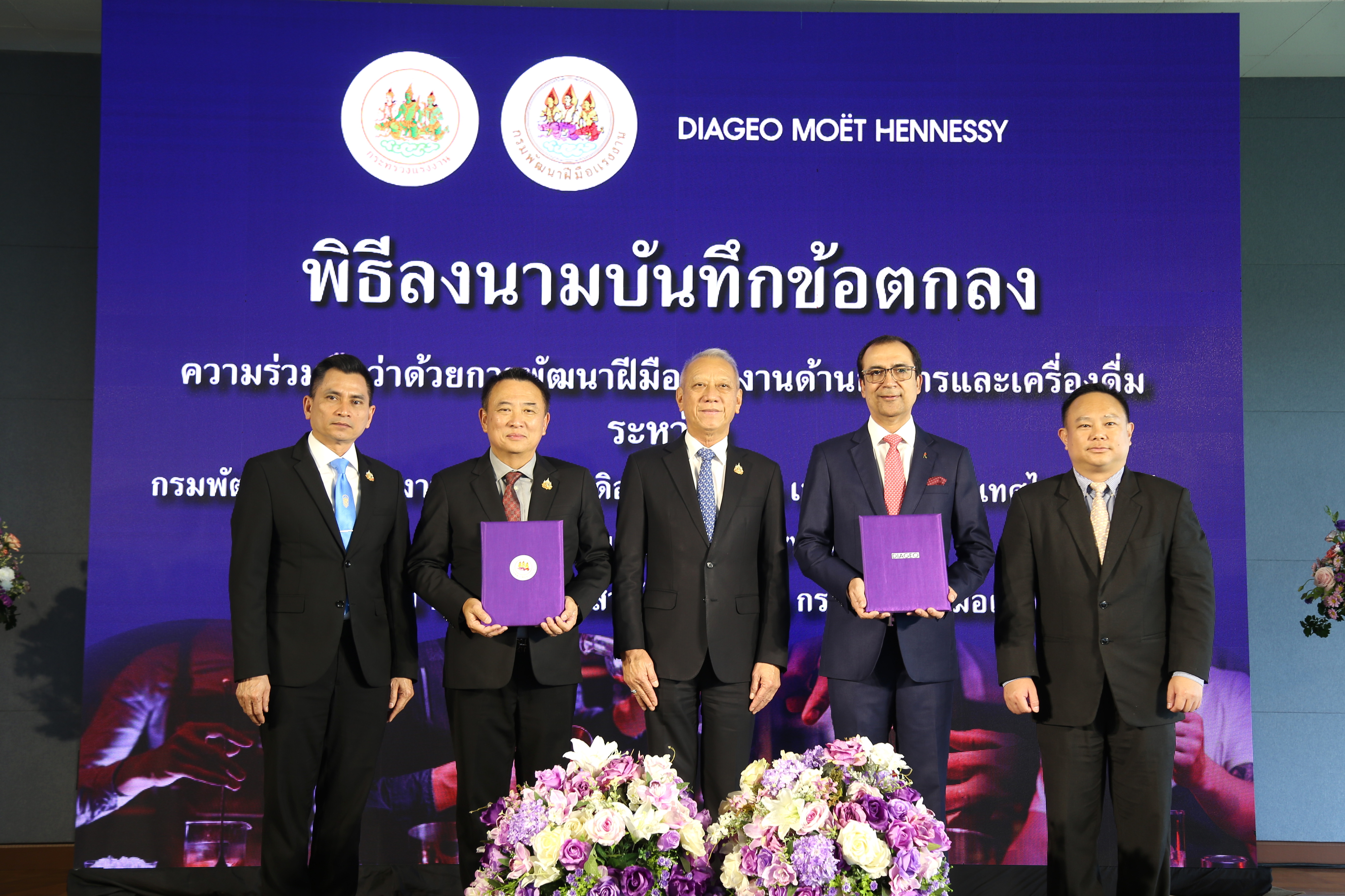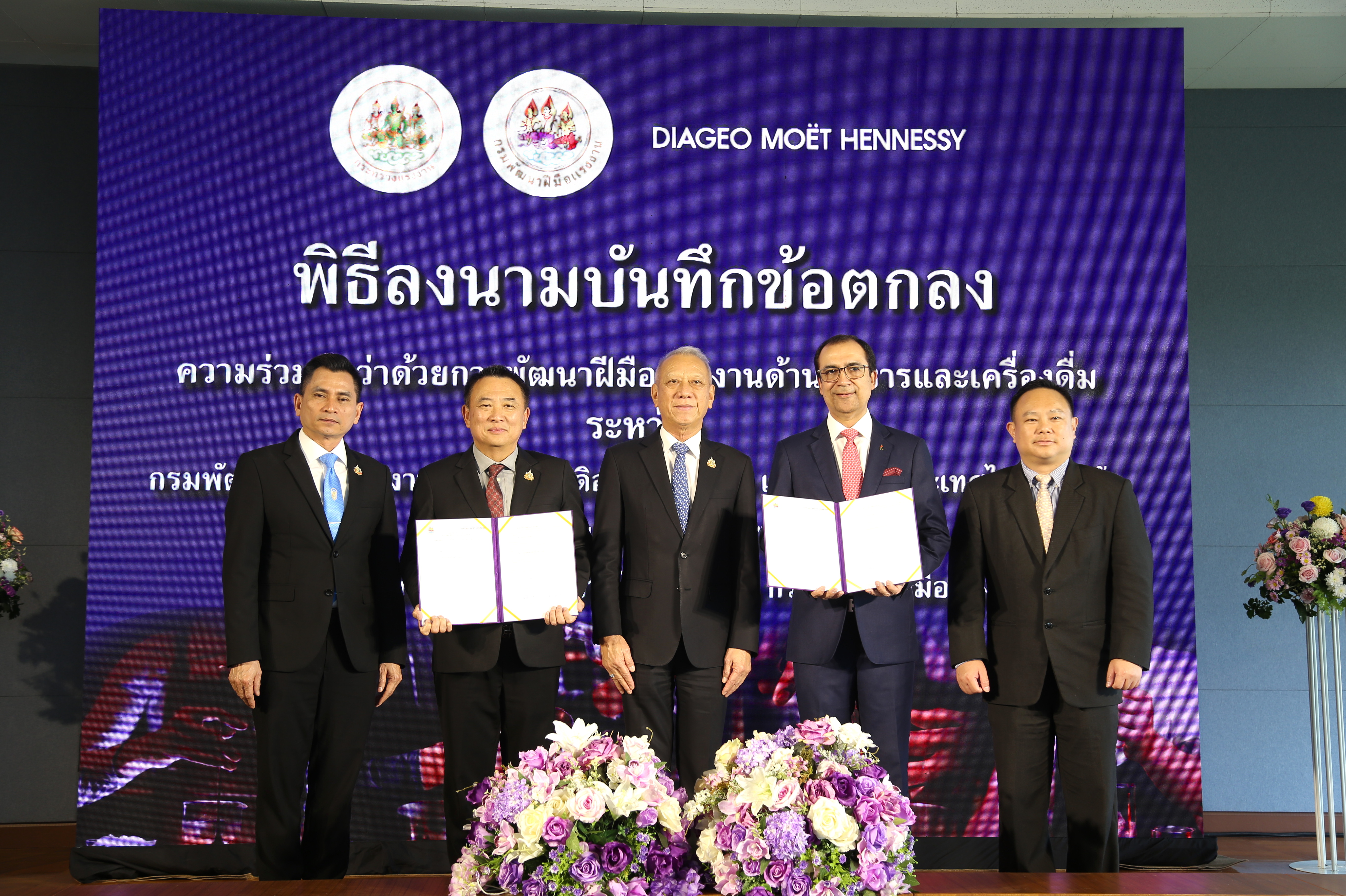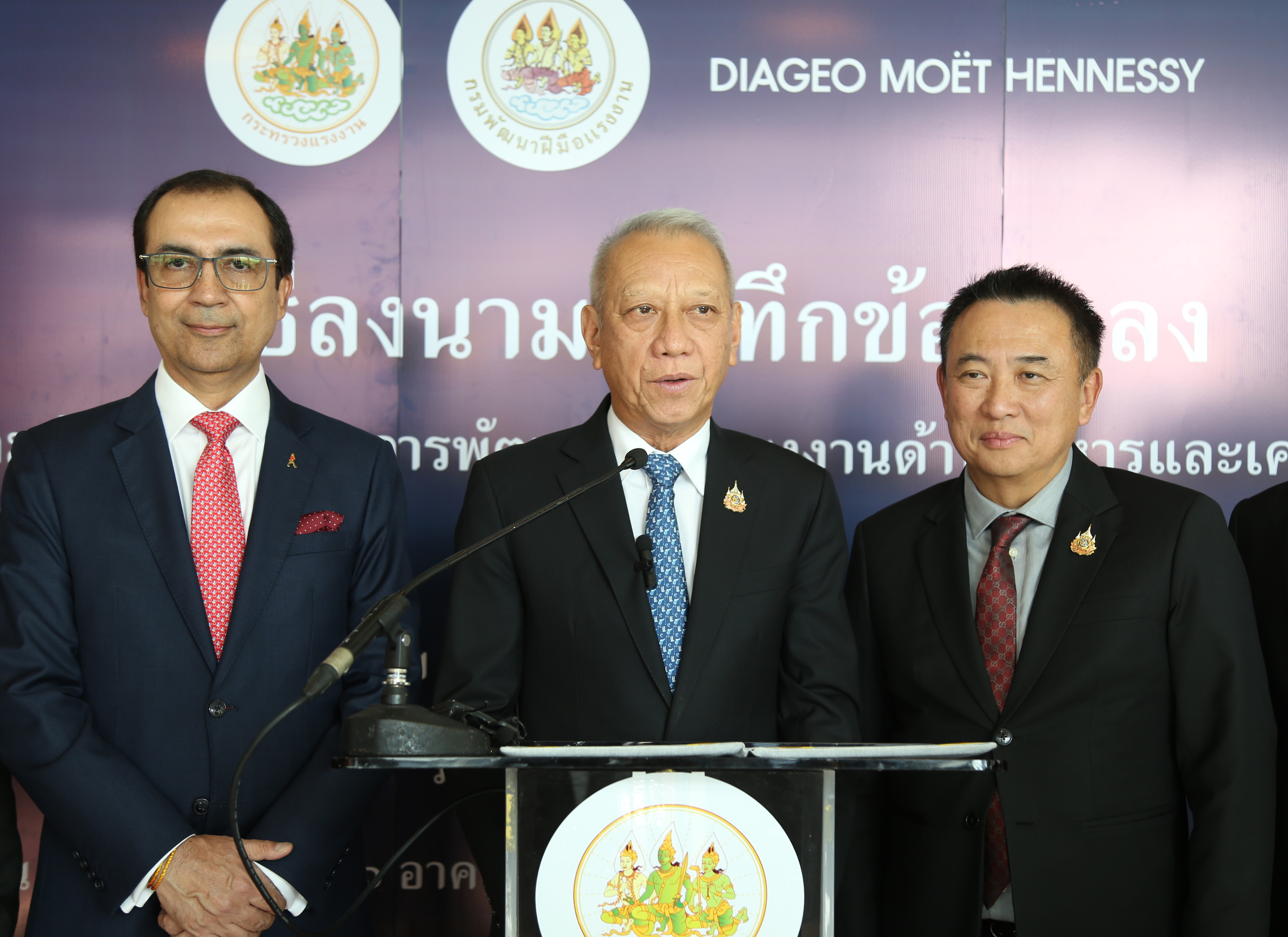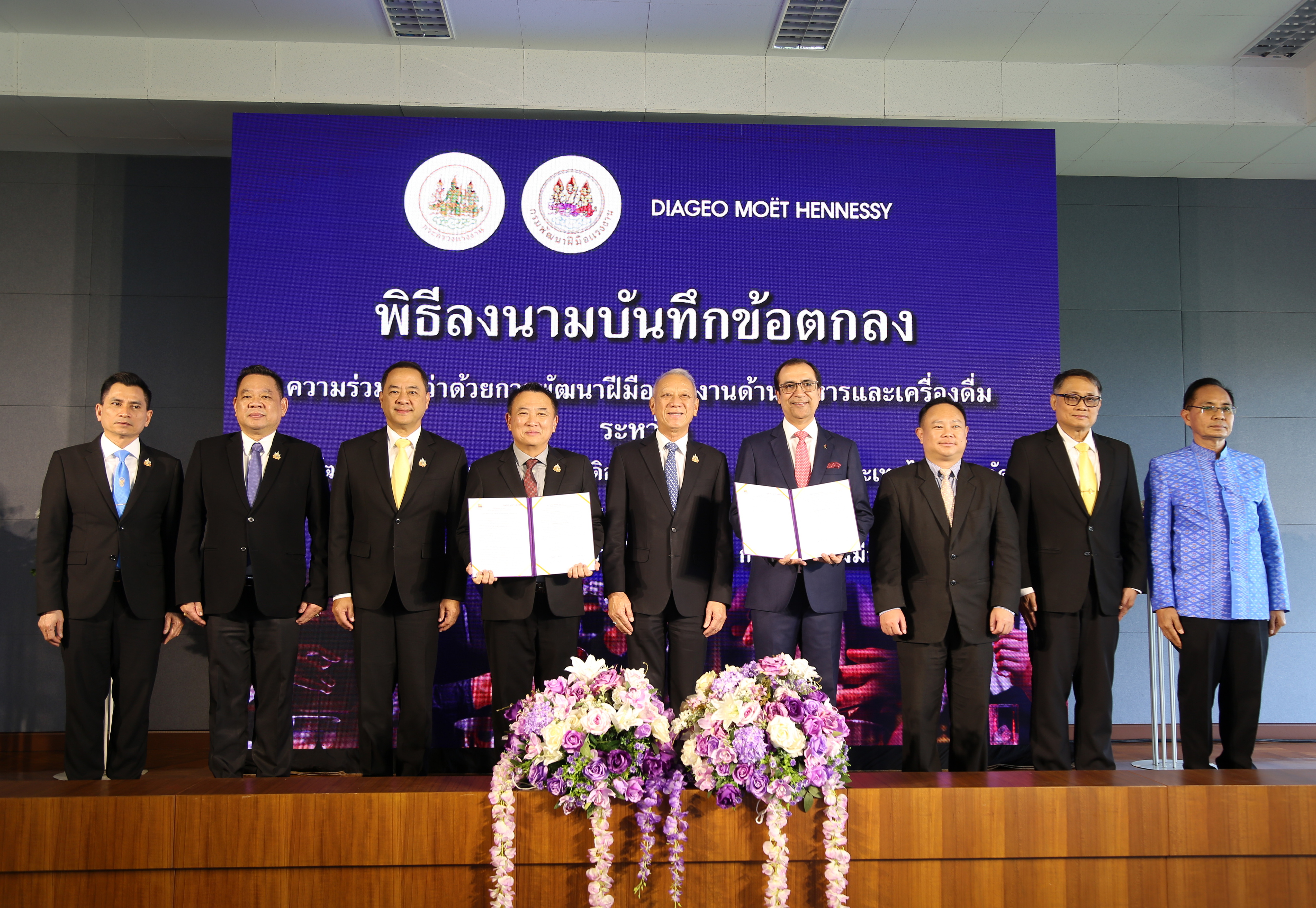 ด้าน มร. ภูนีต นารัง กรรมการผู้จัดการ บริษัท ดิอาจิโอ โมเอ็ท เฮนเนสซี่ (ประเทศไทย) จำกัด หรือ DMHT กล่าวเสริมว่า บริษัท ดิอาจิโอ โมเอ็ท เฮนเนสซี่ (ประเทศไทย) จำกัด ดำเนินธุรกิจนำเข้าและจัดจำหน่ายเครื่องดื่มแอลกอฮอล์คุณภาพชั้นนำ ได้รับการยกย่องให้เป็นผู้นำในตลาดเครื่องดื่มแอลกอฮอล์ระดับพรีเมี่ยมและซุปเปอร์ดีลักซ์ ในประเทศไทย มีความยินดีเป็นอย่างยิ่งที่ได้ร่วมมือกับกรมพัฒนาฝีมือแรงงาน เพื่อร่วมกันพัฒนากำลังแรงงาน และร่วมกันแก้ปัญหาแรงงานไม่เพียงพอต่อความต้องการในอุตสาหกรรมท่องเที่ยวและบริการของไทย