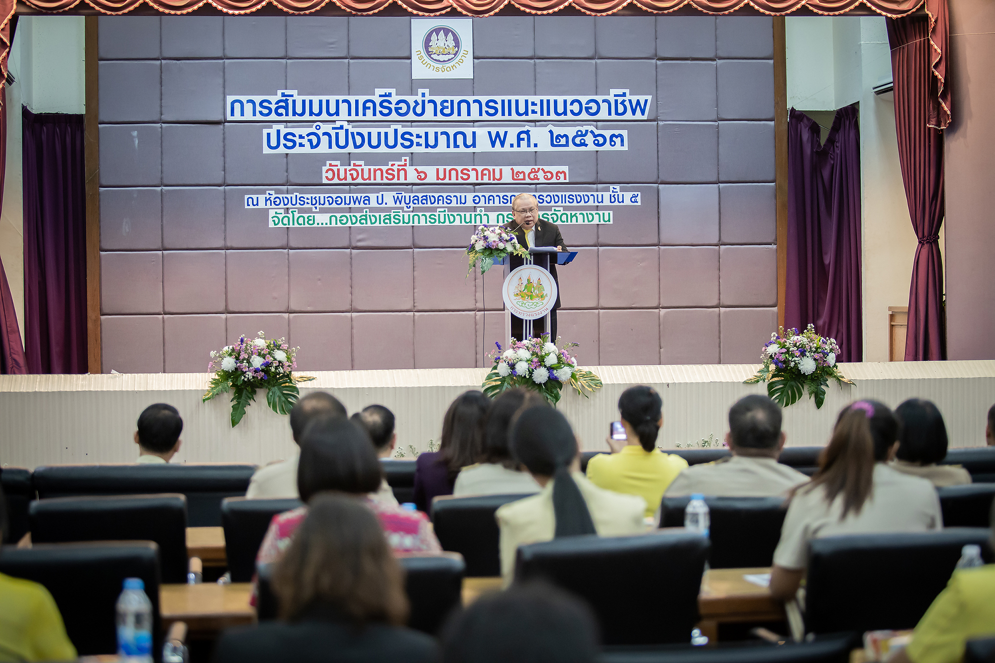 รัฐมนตรีว่าการกระทรวงแรงงาน มอบ เลขานุการรัฐมนตรีว่าการกระทรวงแรงงาน เปิดสัมมนาเครือข่ายการแนะแนวอาชีพ ปี 63 ระดมบุคลากรที่เกี่ยวข้องกับการแนะแนวอาชีพ แลกเปลี่ยน พัฒนาองค์ความรู้ หวังผลิตกำลังแรงงานให้ตรงกับความต้องการ