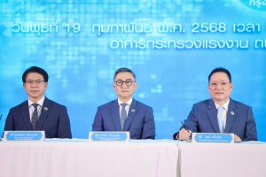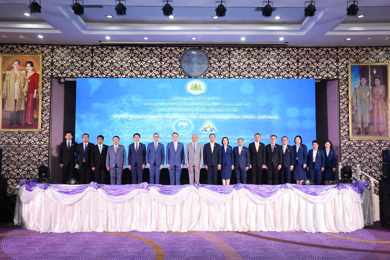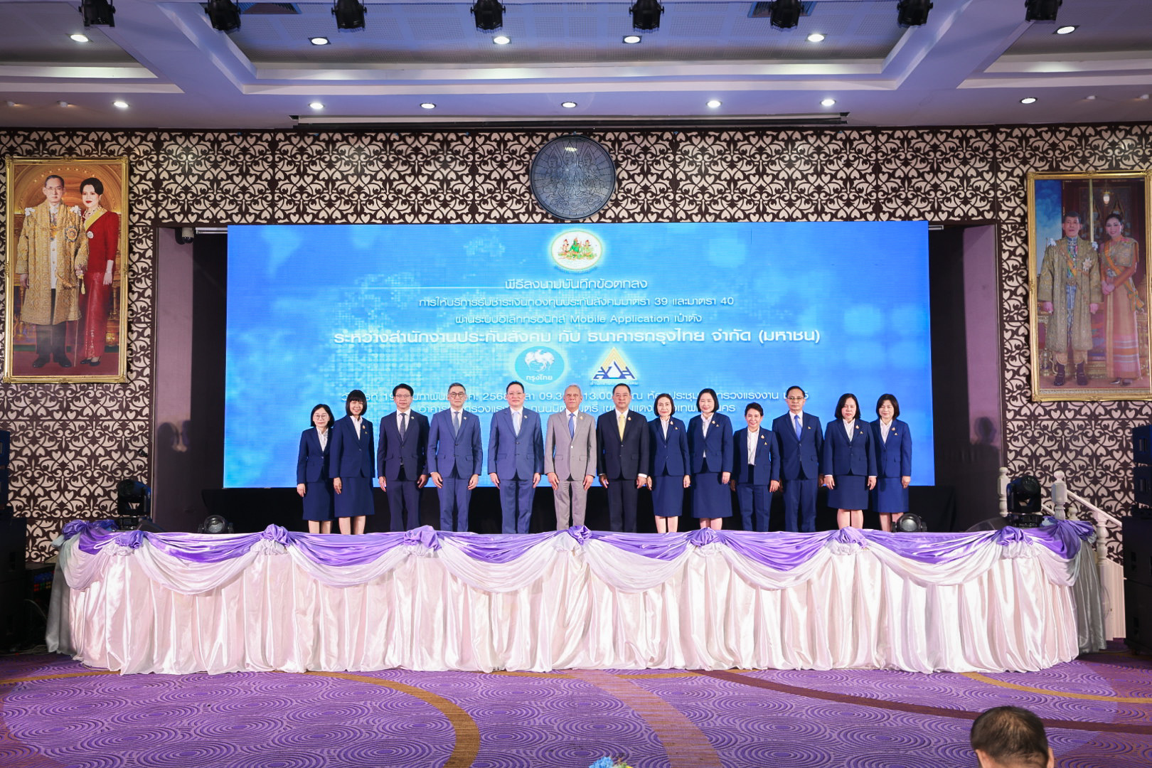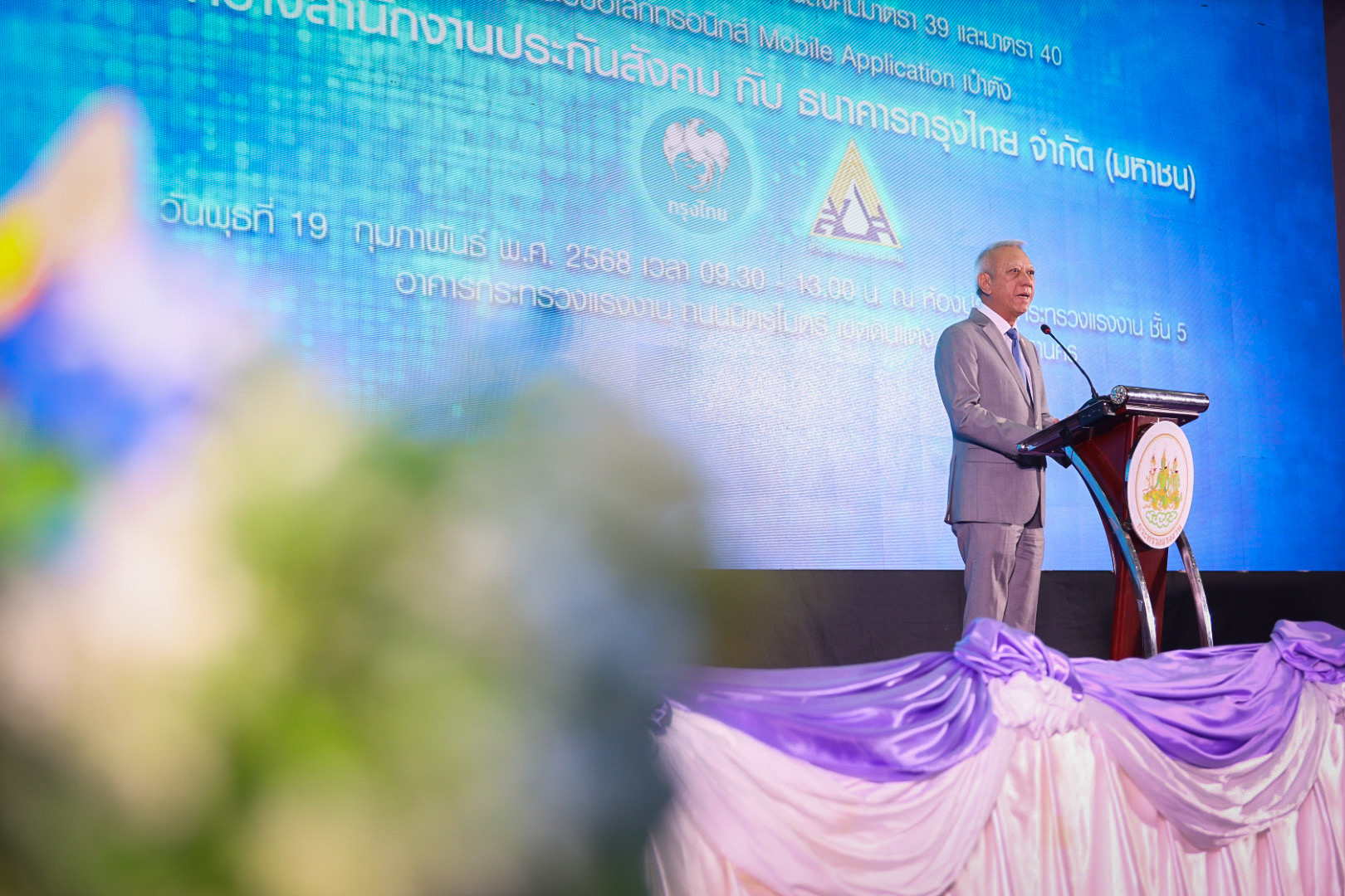 วันที่ 19 กุมภาพันธ์ 2568 นายพิพัฒน์ รัชกิจประการ รัฐมนตรีว่าการกระทรวงแรงงาน เป็นประธานในพิธีลงนามบันทึกข้อตกลงระหว่าง สำนักงานประกันสังคม (สปส.) ลงนามโดย นางมารศรี ใจรังษี เลขาธิการสำนักงานประกันสังคม และ ธนาคารกรุงไทย ลงนามโดย นายผยง ศรีวณิช กรรมการผู้จัดการใหญ่ ธนาคารกรุงไทย จำกัด (มหาชน) โดยมี นายสมาสภ์ ปัทมะสุคนธ์ รองปลัดกระทรวงแรงงาน นายกิตติพัฒน์ เพียรธรรม ผู้บริหารสายงาน สายงานธุรกิจภาครัฐ นายธวัชชัย ชีวานนท์ ประธานผู้บริหาร Product & Business Solutions นางวิไลพร วงษ์อัยรา ผู้อำนวยการกองบริหารการเงินและการบัญชี ร่วมเป็นสักขีพยาน เพื่อเปิดให้บริการ ชำระเงินสมทบกองทุนประกันสังคมมาตรา 39 และมาตรา 40 ผ่านแอปพลิเคชัน “เป๋าตัง” เพิ่มความสะดวกให้แก่ผู้ประกันตน ลดภาระค่าใช้จ่าย และตอบโจทย์ไลฟ์สไตล์ยุคดิจิทัล