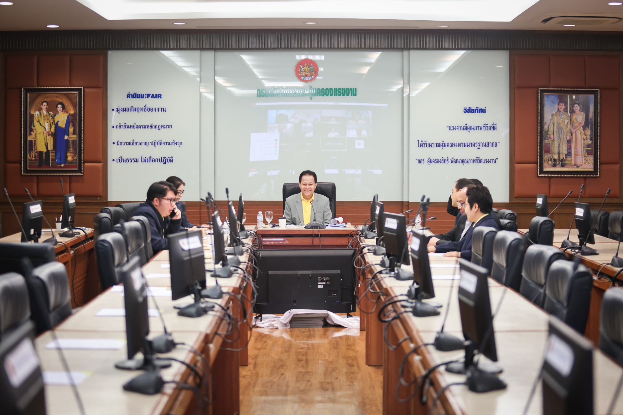 วันที่ 22 เมษายน 2567 เวลา 10.00 น. นายวรรณรัตน์ ศรีสุขใส รองปลัดกระทรวงแรงงานและโฆษกกระทรวงแรงงาน พร้อมด้วย นายสมาสภ์ ปัทมะสุคนธ์ ผู้ตรวจราชการกระทรวงแรงงาน ร่วมการประชุมใหญ่สามัญประจำปีคณะกรรมการสมาคมผู้นำการเปลี่ยนแปลงเพื่อพัฒนาแรงงาน ครั้งที่ 1/2567 โดยมี นายอาทิตย์ อิสโม นายกสมาคมผู้นำการเปลี่ยนแปลงเพื่อพัฒนาแรงงาน เป็นประธานการประชุม ณ ห้องประชุม ศ.นิคม จันทรวิทุร ชั้น 5 กรมสวัสดิการและคุ้มครองแรงงาน อาคารกระทรวงแรงงาน และประชุมผ่านสื่ออิเล็กทรอนิกส์ (Zoom meetings) โดยที่ประชุมได้พิจารณาการเลือกตั้งผู้สอบบัญชีประจำปี และ การจัดตั้งมูลนิธิเพื่อกระทรวงแรงงาน