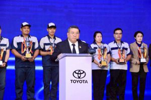 พันตำรวจโท วรรณพงษ์ คชรักษ์ ปลัดกระทรวงแรงงาน เปิดเผยว่า รู้สึกยินดีและเป็นเกียรติอย่างยิ่งที่ได้มาเป็นประธานในพิธีมอบรางวัลการแข่งขันทักษะการบริการลูกค้าโตโยต้า รอบชิงชนะเลิศ ประจำปี 2568 ในวันนี้ ขอชื่นชมบริษัท โตโยต้า มอเตอร์ประเทศไทย จำกัด ในฐานะสถานประกอบกิจการผลิตรถยนต์ชั้นนำของประเทศไทย ที่ให้ความสำคัญอย่างยิ่งต่อการพัฒนาทักษะฝีมือของบุคลากรโตโยต้ามาอย่างต่อเนื่อง อันเป็นส่วนสำคัญในการยกระดับศักยภาพฝีมือของแรงงานไทยให้ได้มาตรฐานเดียวกัน สามารถแข่งขันได้ในระดับสากล ซึ่งที่ผ่านมาโตโยต้าได้ให้ความร่วมมือกับกระทรวงแรงงานมาอย่างต่อเนื่อง ทั้งในด้านการพัฒนาความสามารถของกำลังแรงงานในภาคบริการโดยใช้กระบวนการพัฒนาฝีมือแรงงานที่เหมาะสมกับความต้องการของแรงงาน รวมถึงการยกระดับความสามารถของแรงงานเดิมให้สอดคล้องกับความเปลี่ยนแปลงทางเทคโนโลยี ผ่านการถ่ายทอดความรู้ให้แก่บุคลากรฝึกของกรมพัฒนาฝีมือแรงงาน เพื่อส่งเสริมการผลิตแรงงานภาคบริการเข้าสู่สถานประกอบกิจการ อีกทั้งยังสนับสนุนการฝึกซ้อมทักษะความรู้สำหรับตัวแทนประเทศไทย ในการแข่งขันทักษะฝีมือระดับอาเซียน ระดับเอเชีย และระดับนานาชาติ ซึ่งนับเป็นความร่วมมือที่มีคุณูปการอย่างยิ่ง