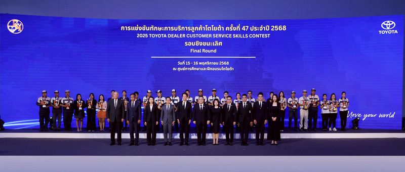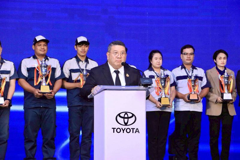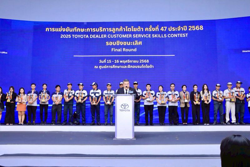 วันที่ 16 พฤศจิกายน 2568 เวลา 10.00 น. นางสาวตรีนุช เทียนทอง รัฐมนตรีว่าการกระทรวงแรงงาน มอบหมายให้ พันตำรวจโท วรรณพงษ์ คชรักษ์ ปลัดกระทรวงแรงงาน เป็นประธานในพิธีประกาศผลและมอบรางวัลการแข่งขันทักษะการบริการลูกค้าโตโยต้า รอบชิงชนะเลิศ ครั้งที่ 47 ประจำปี 2568 โดยมี นายโนริอากิ ยามาชิตะ กรรมการผู้จัดการใหญ่ บริษัท โตโยต้า มอเตอร์ ประเทศไทย จำกัด กล่าวนโยบายการพัฒนาบุคลากร นางสาวฉัตรประอร นิยม รองผู้ว่าราชการจังหวัดฉะเชิงเทรา กล่าวต้อนรับแขกผู้มีเกียรติ นายสมชาติ สุภารี รองอธิบดีกรมพัฒนาฝีมือแรงงาน ว่าที่พันตรี ดร. วัชรพล ลักษณลม้าย ผู้อำนวยการวิทยาลัยเทคนิคฉะเชิงเทรา และผู้อำนวยการสำนักงานอาชีวศึกษา จังหวัดฉะเชิงเทรา นายคาร์ล ออพเพนบอร์น ประธานชมรมผู้แทนจำหน่ายโตโยต้า ผู้บริหารระดับสูงของบริษัท โตโยต้า มอเตอร์ เอเชีย จำกัด ประเทศไทย และ สิงคโปร์ หัวหน้าส่วนราชการในสังกัดกระทรวงแรงงานจังหวัดฉะเชิงเทรา กระทรวงศึกษาธิการ ร่วมเป็นเกียรติ ณ ศูนย์การศึกษาและฝึกอบรมโตโยต้า ถนนสุวินทวงศ์ อำเภอเมือง จังหวัดฉะเชิงเทรา