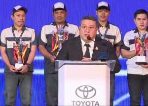 ด้าน นายสมชาติ สุภารี รองอธิบดีกรมพัฒนาฝีมือแรงงาน กล่าวเสริมว่า การแข่งขันมีทั้งหมด 9 สาขา ประกอบด้วย 1. ช่างเทคนิคระดับสูง 2.ช่างเทคนิคระดับพื้นฐาน 3.ผู้บริหารงานบริการ 4.พนักงานอะไหล่ 5.พนักงานลูกค้าสัมพันธ์ 6.พนักงานคอลเซ็นเตอร์ 7.ผู้บริหารงานตัวถังและสี 8.ช่างซ่อมตัวถัง และ 9.ช่างซ่อมสี ในส่วนความร่วมมือระหว่างกระทรวงแรงงาน โดยกรมพัฒนาฝีมือแรงงานมีความร่วมมือระยะยาว ซึ่งนอกจากการแข่งขันแล้วยังมีความร่วมมือในโครงการอื่น ๆ เช่น การจัดหลักสูตรฝึกอบรมช่างเทคนิค โดยเฉพาะช่างตัวถังและสี ผลิตช่างฝีมือในภาคแรงงานผ่านหน่วยงานในสังกัดของกรมพัฒนาฝีมือแรงงาน โดยสถาบันพัฒนาฝีมือแรงงานทั้งสิ้น 12 แห่ง ร่วมเปิดศูนย์พัฒนาและรับรองทักษะกำลังแรงงานสาขาช่างซ่อมตัวถังและสีรถยนต์ได้แก่ อุบลราชธานี ขอนแก่น นครราชสีมา และลำปาง อีกทั้งยังมีการทดสอบมาตรฐานฝีมือแรงงาน เพื่อป้อนบุคลากรที่มีคุณภาพเข้าสู่ศูนย์บริการโตโยต้า ซึ่งทางศูนย์ฯ ได้เป็นหนึ่งในคณะกรรมการมาตรฐานฝีมือแรงงานแห่งชาติดังกล่าวอีกด้วย ทั้งนี้ การแข่งขันนี้ไม่ใช่แค่การแข่งขันภายในของโตโยต้าแต่เป็นเวทีที่สะท้อนความร่วมมือระหว่างภาครัฐ และภาคเอกชนในการพัฒนาศักยภาพบุคลากรด้านยานยนต์ของประเทศอย่างเป็นรูปธรรมที่ยั่งยืน รองฯสมชาติ กล่าวทิ้งท้าย
