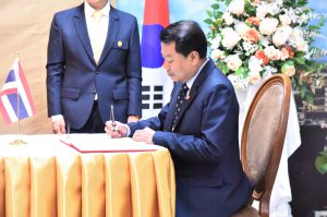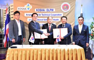 Mr. Prateep said that the signing of the academic cooperation on occupational health and safety operating under an agreement can be regarded as having a very important role in enhancing workplace safety, which is directly related to the life and security of the workforce. The workforce is a very important human resource in the country’s development to achieve tangible and sustainable results, which will benefit and enhance the quality of work life for the people of both countries. In addition, South Korea is considered one of the leading countries in safety operations. It ratified the ILO Convention No. 187 on the Promotional Framework for Occupational Health and Safety Operations and Convention No. 155 on Occupational Health and Safety in 2008. It is experienced in developing operations to support the Convention and can advise Thailand, which is considering ratifying Convention No. 155.