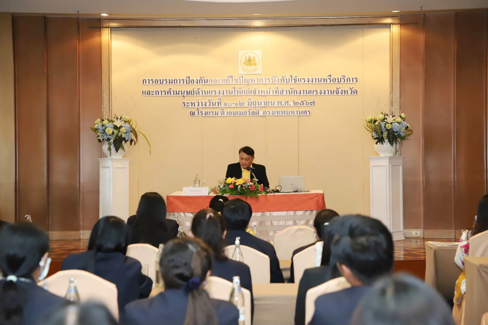 วันที่ 10 มิถุนายน 2567 เวลา 13.00 น นายไพโรจน์ โชติกเสถียร ปลัดกระทรวงแรงงาน มอบหมายให้ เรือเอก สาโรจน์ คมคาย รองปลัดกระทรวงแรงงาน เป็นประธานเปิดการอบรมการป้องกันและแก้ไขปัญหาการบังคับใช้แรงงานหรือบริการและการค้ามนุษย์ด้านแรงงานให้แก่เจ้าหน้าที่สำนักงานแรงงานจังหวัด ภายใต้โครงการพัฒนาศักยภาพด้านการป้องกันและแก้ไขปัญหาการบังคับใช้แรงงานหรือบริการ และการค้ามนุษย์ด้านแรงงานให้แก่บัณฑิตแรงงานและอาสาสมัครแรงงาน เพื่อขยายการทำงานของเครือข่ายในพื้นที่ ณ ห้องประชุมแกรนด์ พาโนราม่า โรงแรมดิเอมเมอรัลด์ กรุงเทพมหานคร