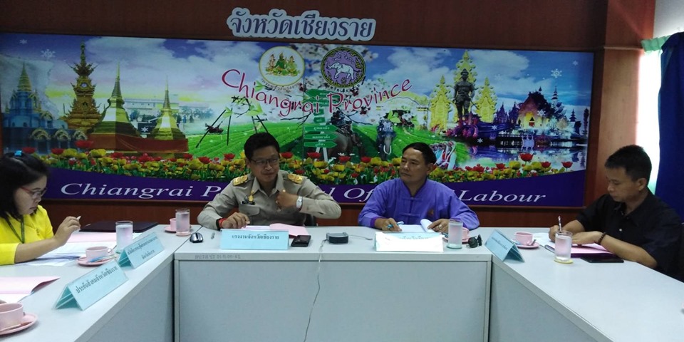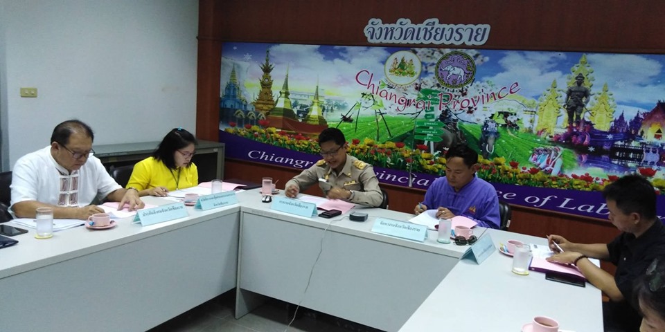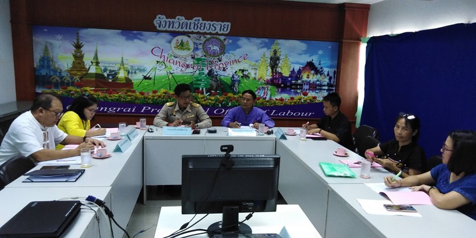 บ่ายวันที่ 25 ตุลาคม 2562 นายเฉลิมพล เนียมสกุล แรงงานจังหวัดเชียงราย พร้อมด้วยตัวแทนหน่วยงานสังกัดกระทรวงแรงงานจังหวัดเชียงรายและกระทรวงพัฒนาสังคมและความมั่นคงของมนุษย์ จัดประชุมการจัดทำแผนบรูณาโครงการขับเคลื่อนกลไกเชิงนโยบายในการป้องกันและแก้ไขปัญหาการค้ามนุษย์ด้านแรงงานไปสู่การปฏิบัติ เพื่อสร้างกลไกในการขับเคลื่อนการป้องกันปัญหาการบังคับใช้แรงงานหรือบริการ และการค้ามนุษย์ ด้านแรงงาน และ เพื่อติดตามผลการดำเนินงานป้องกันปัญหาการบังคับใช้แรงงานหรือบริการ และการค้ามนุษย์ ด้านแรงงานอย่างเป็นรูปธรรม ณ ห้องประชุม Conferecnce ศูนย์ปฎิบัติการป้องกันและแก้ไขปัญหาการค้ามนุษย์ด้านแรงงาน (ศปกค.รง.ชร.) ชัน 7 ศูนย์ราชการกระทรวงแรงงาน ต.ริมกก อ.เมืองเชียงราย จ.เชียงราย