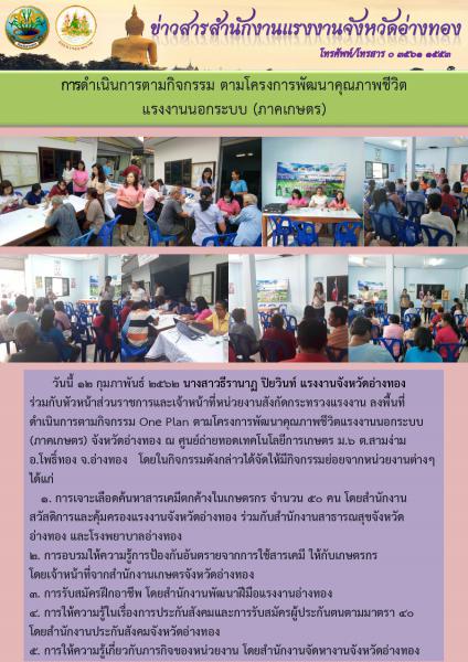 การดำเนินการตามกิจกรรม ตามโครงการพัฒนาคุณภาพชีวิตแรงงานนอกระบบ (ภาคเกษตร) ต. สามง่าม อ.โพธิ์ทอง จ.อ่างทอง