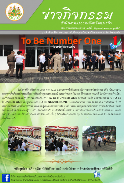 การดำเนินงานโครงการ TO BE NUMBER ONE จังหวัดสระแก้ว