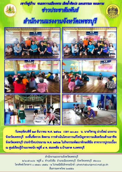 การดำเนินโครงการแก้ไขปัญหาความเดือดร้อนด้านอาชีพจังหวัดเพชรบุรี ประจำปีงบประมาณ พ.ศ. 2562